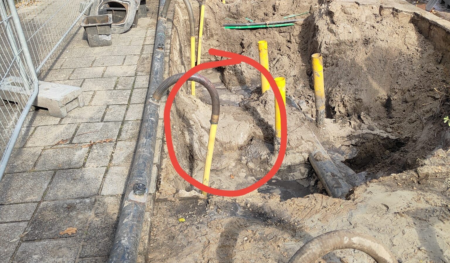 Vorig jaar liet Voorschotenaar André Tegelaar al weten waar de ingang van de bunker ligt. Hij was er bij toen de bunker werd aangelegd. En precies op die plek heeft Dofferhoff nu het bewijs gezien. “De gemeente dacht dat het om een oud riool ging maar dat klopt niet”, zegt Dofferhoff die gauw een foto maakte. “Je ziet duidelijk een schacht, een soort sluis, wellicht een luchtgat, die al dichtgestort is. Ik denk dat de bunker zo’n drie meter onder de grond ligt. Tijdens het graven door Liander kwamen ook een paar stukken beton mee naar boven.”