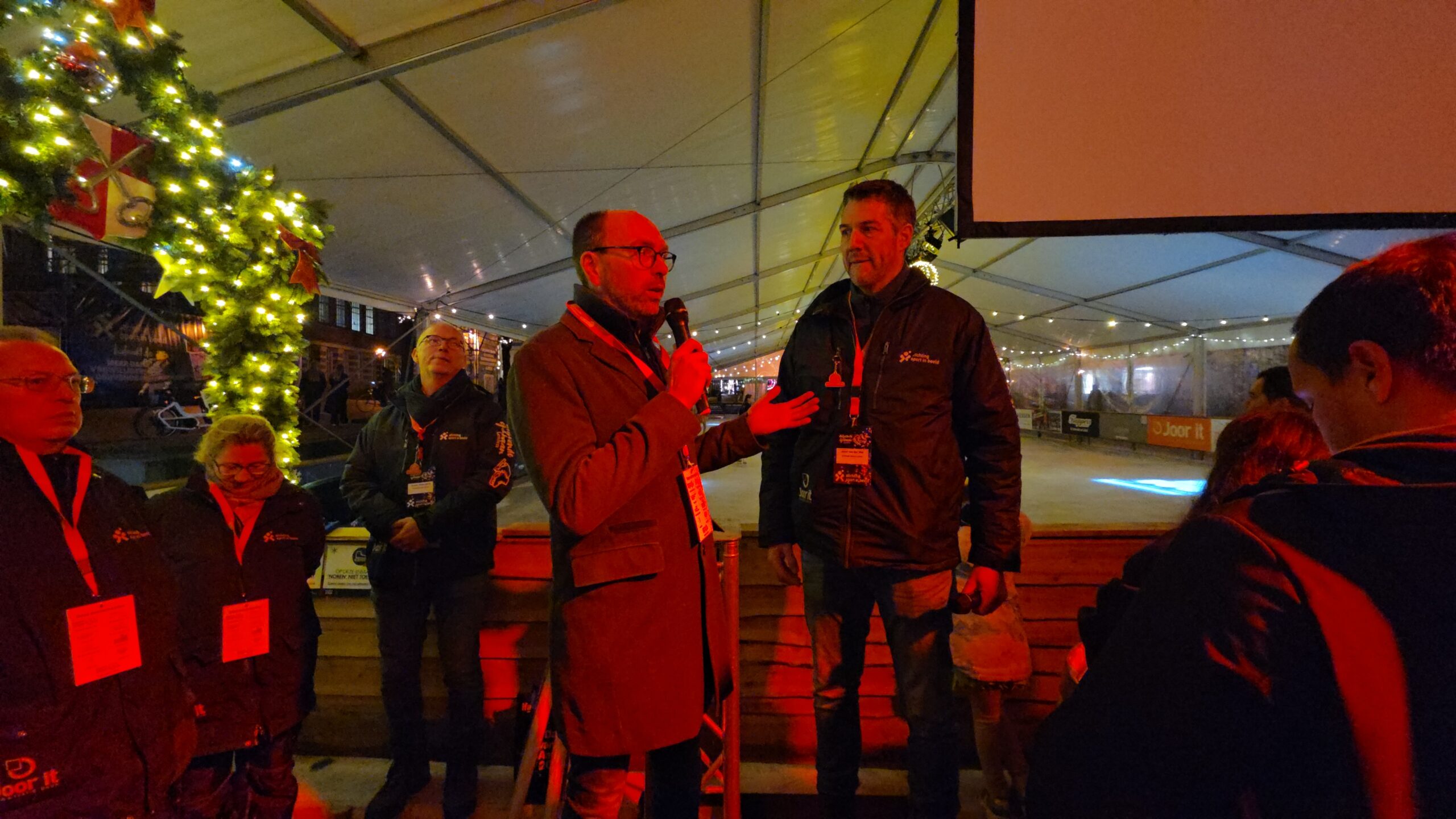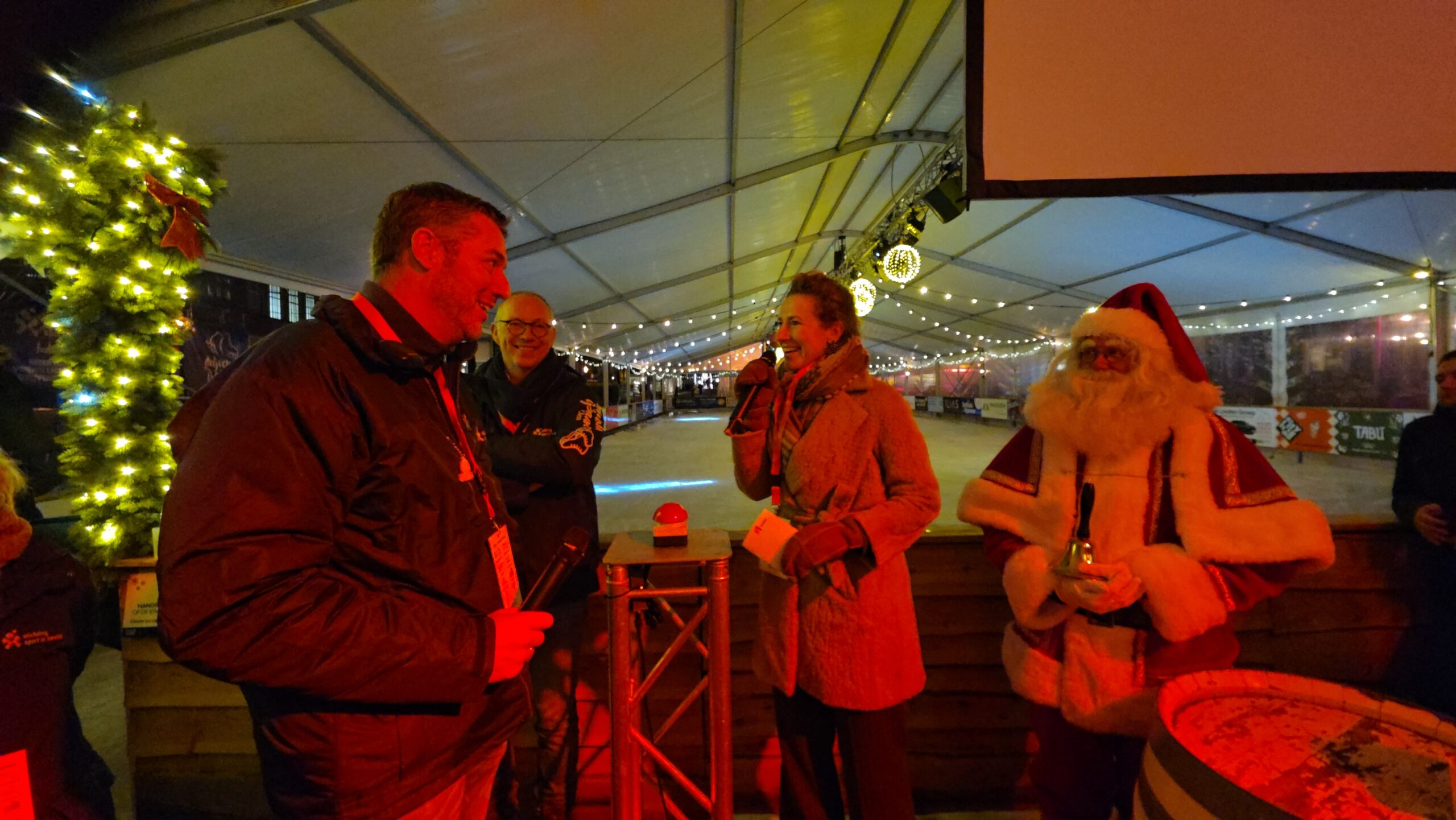 Chris de Waard ging naar de opening en sprak daar met de Kerstman, wethouder Veltman, centrummanager Gijs Holla en mede-organisator Jeroen Weijermars van de organiserende stichting Sport in Beeld.