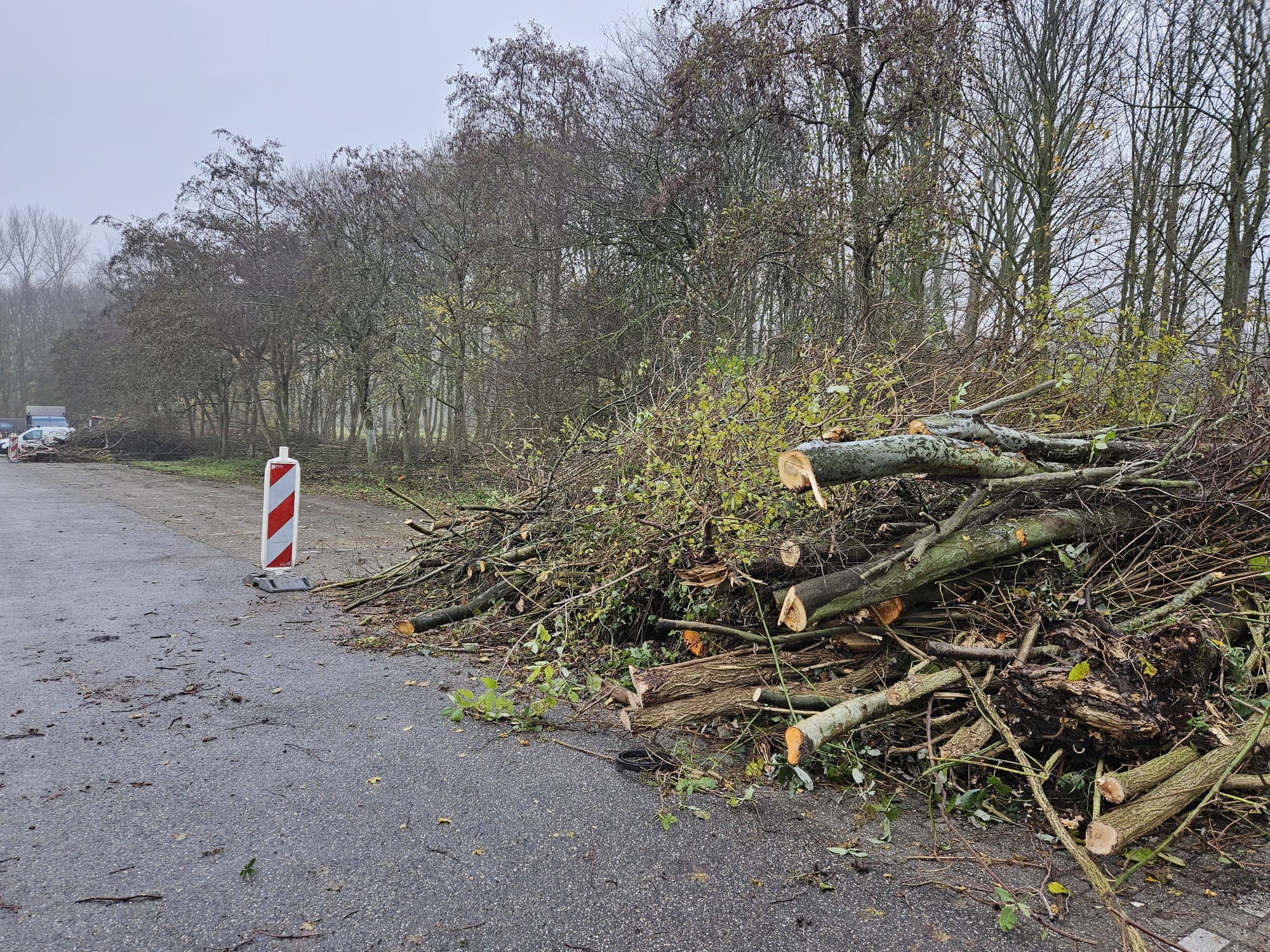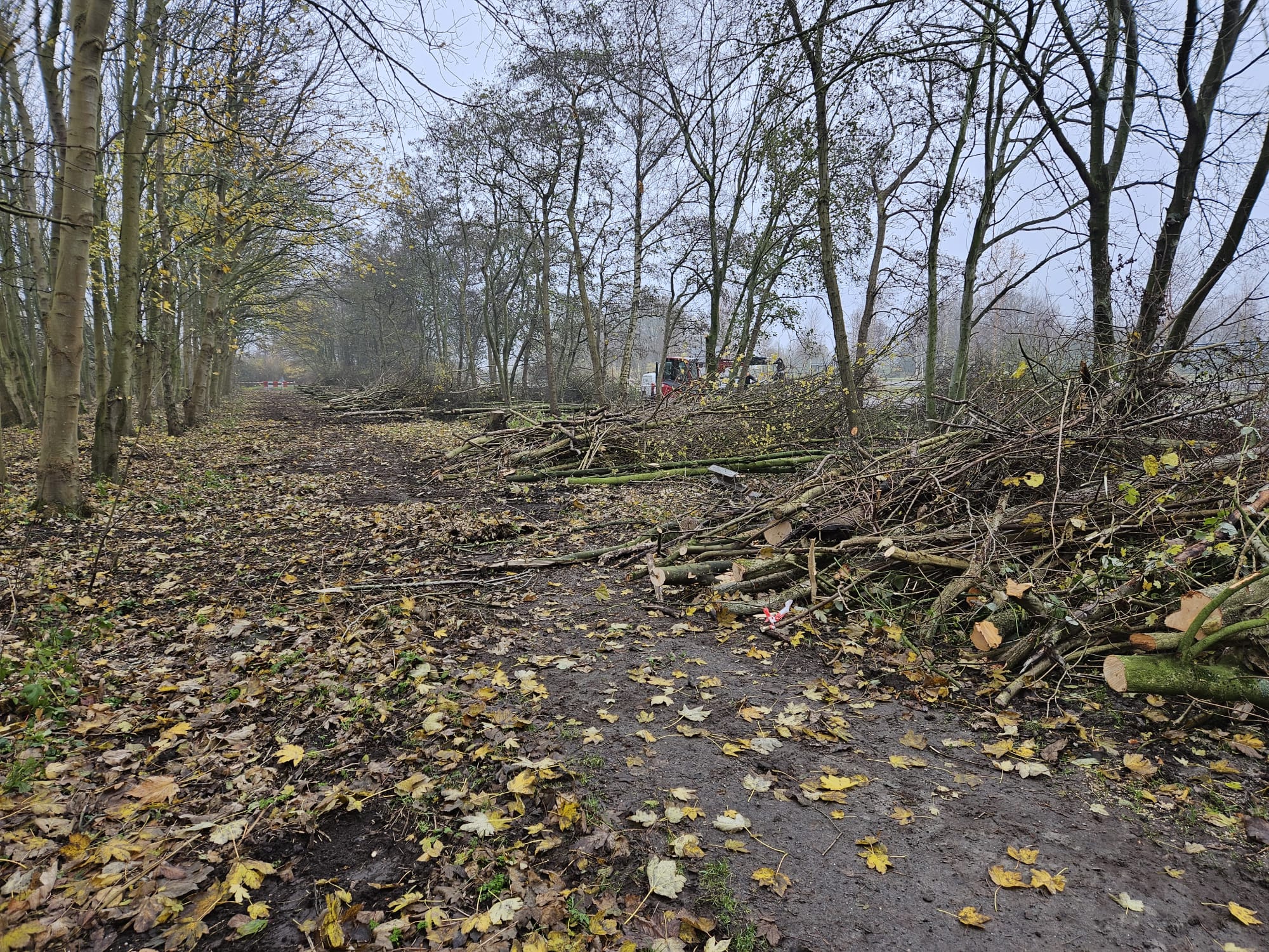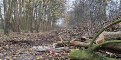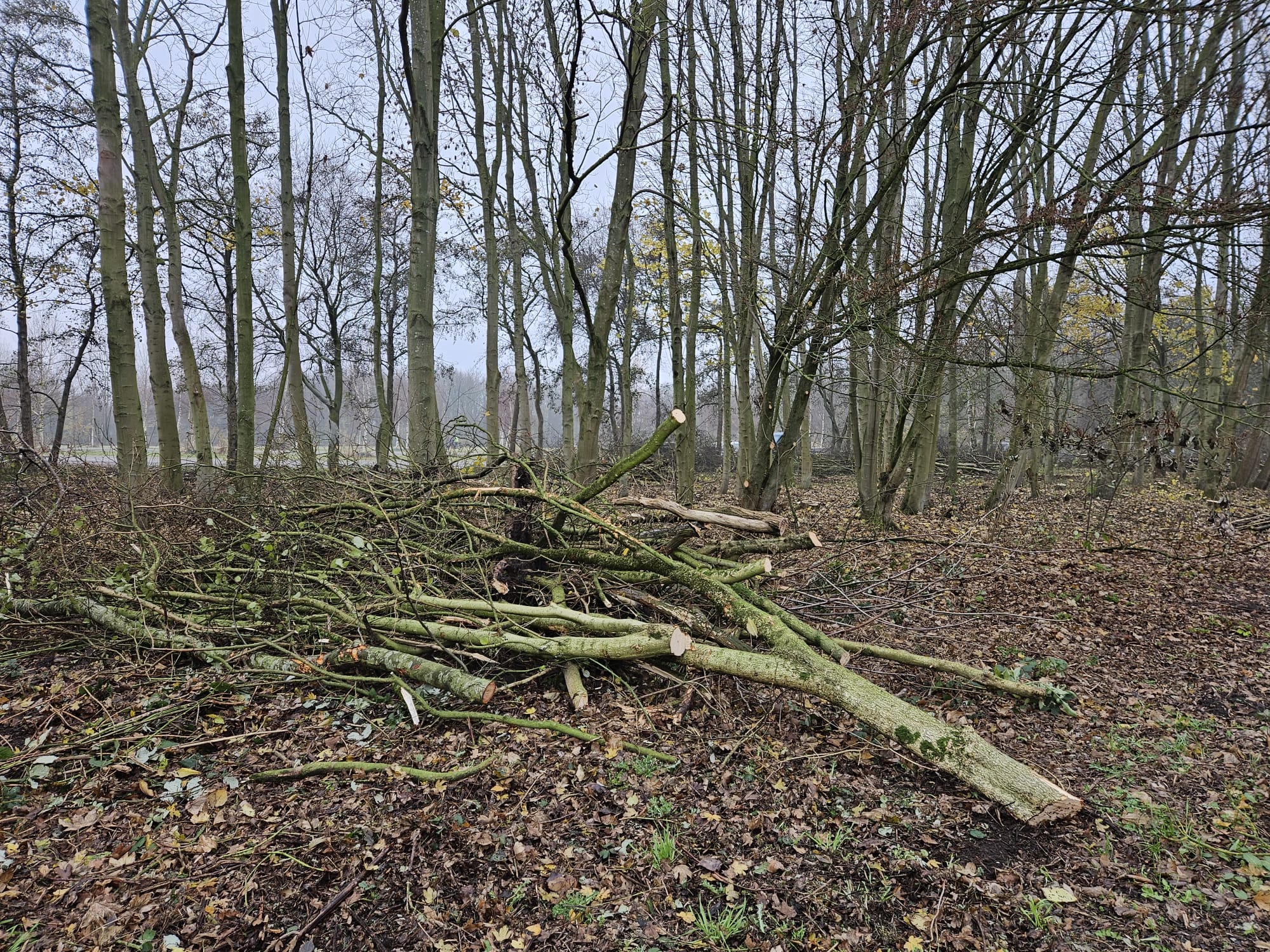Vrijdag waren werknemers van groenbedrijf Moree de hele dag bezig met het kappen van bomen in het gebied. Daarbij werden honderden bomen verwijderd. Hoewel er op het eerste gezicht vooral sprake is van het omzagen van jonge boompjes, is op foto’s van Burgerinitiatief Vlietland, dat strijdt voor een groen en open natuurgebied, te zien dat er ook dikkere bomen zijn omgezaagd. Het gaat daarbij om bomen met een stamdiameter tot zo’n 52 centimeter.