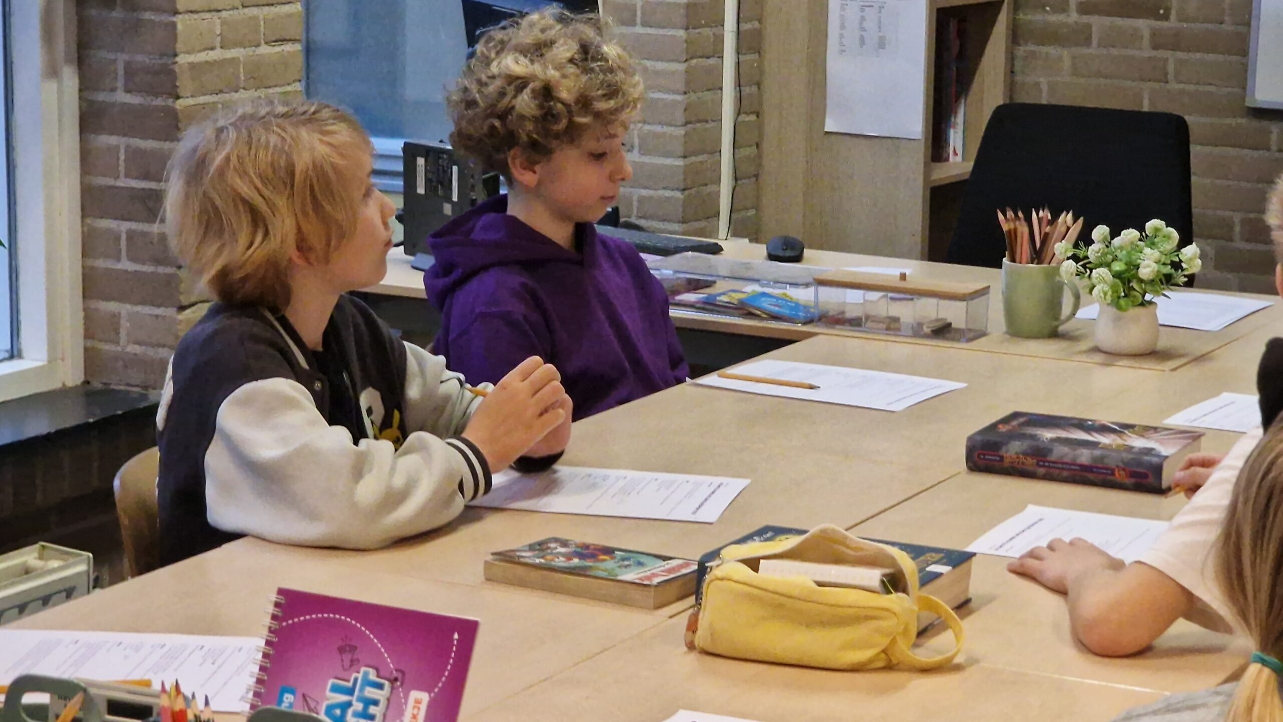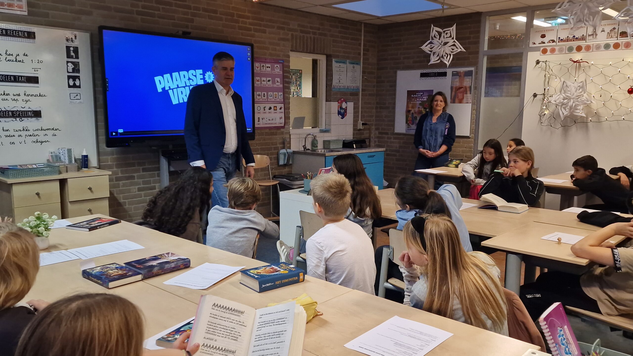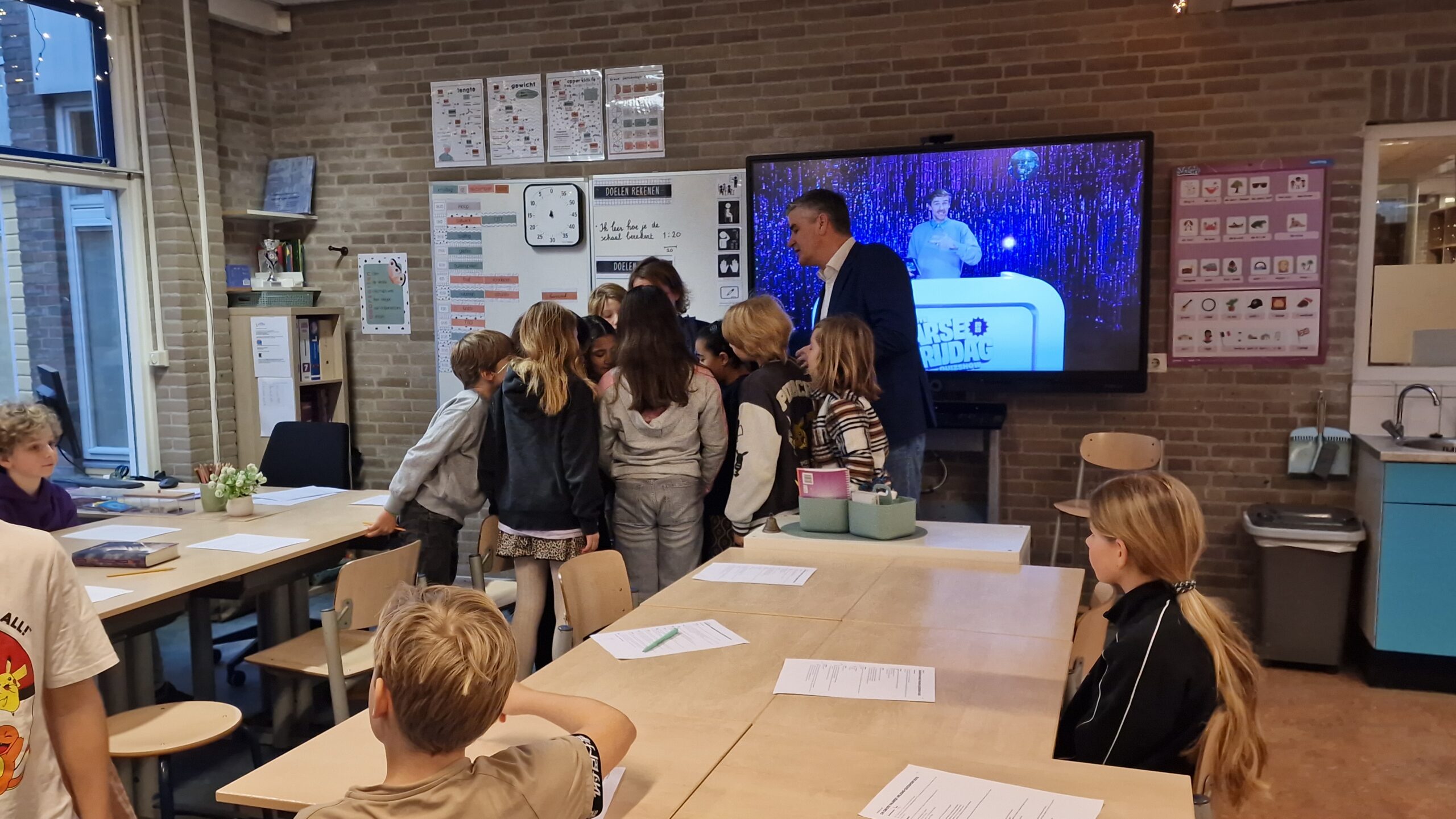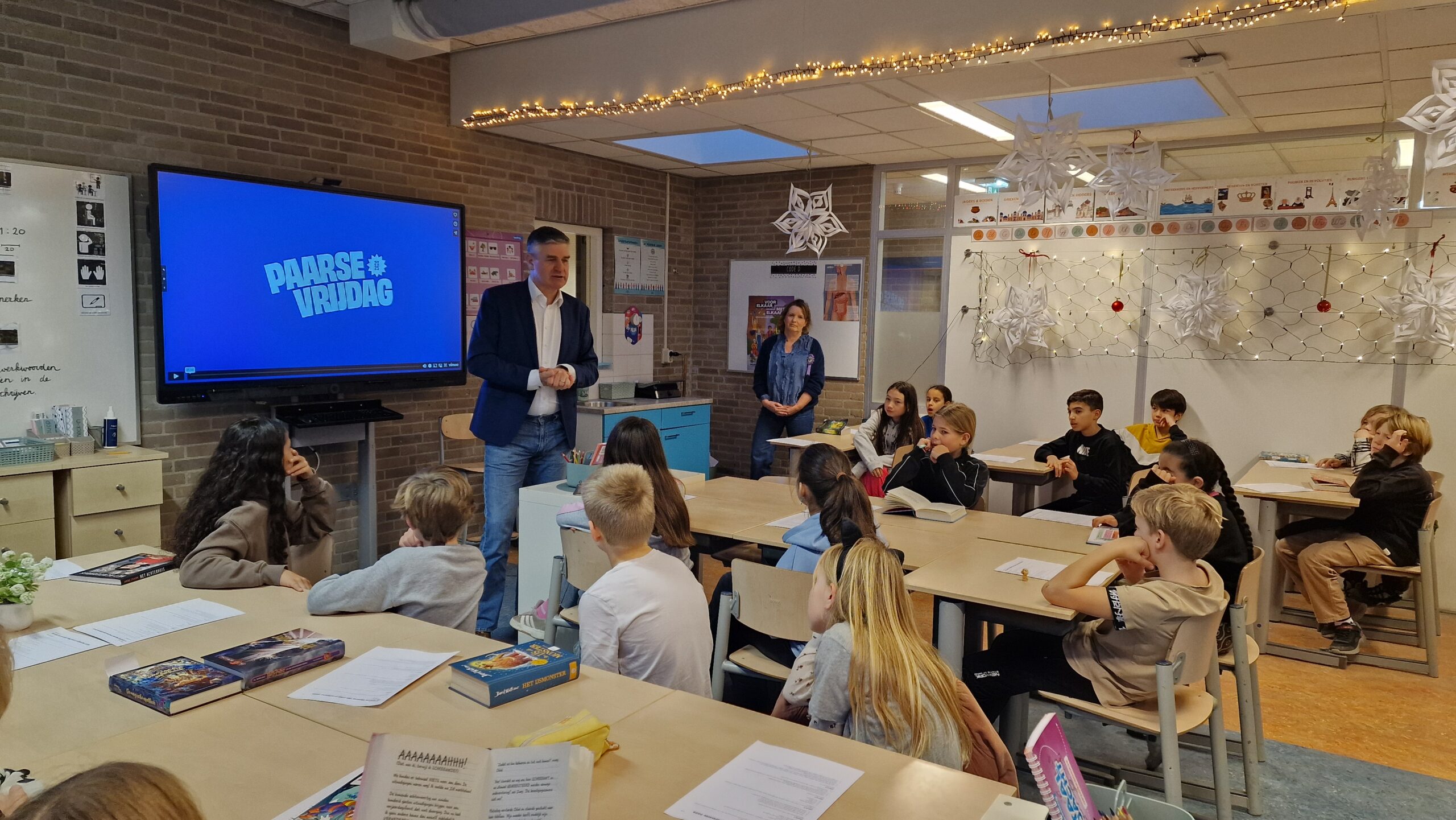 Hoog bezoek aan de Lucas van Leydenschool locatie Steeg aan de St. Ursulasteeg in Leiden vrijdagochtend. Daar kwam staatssecretaris van primair onderwijs en emancipatie Koen Becking langs om een les over Paarse Vrijdag bij te wonen.