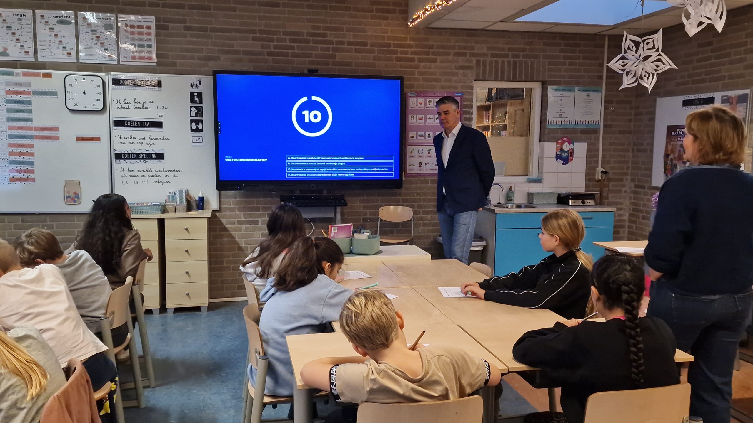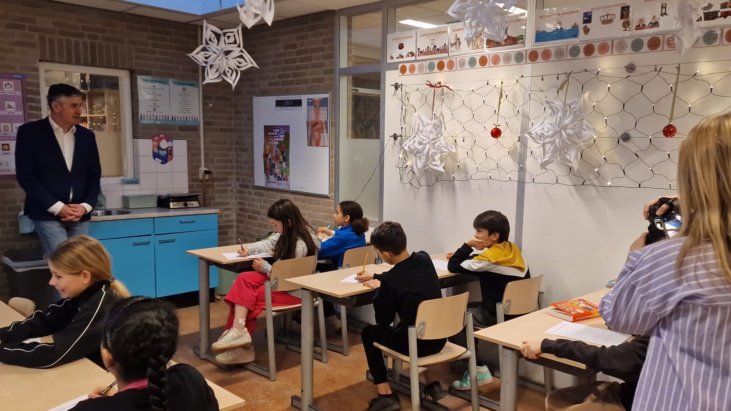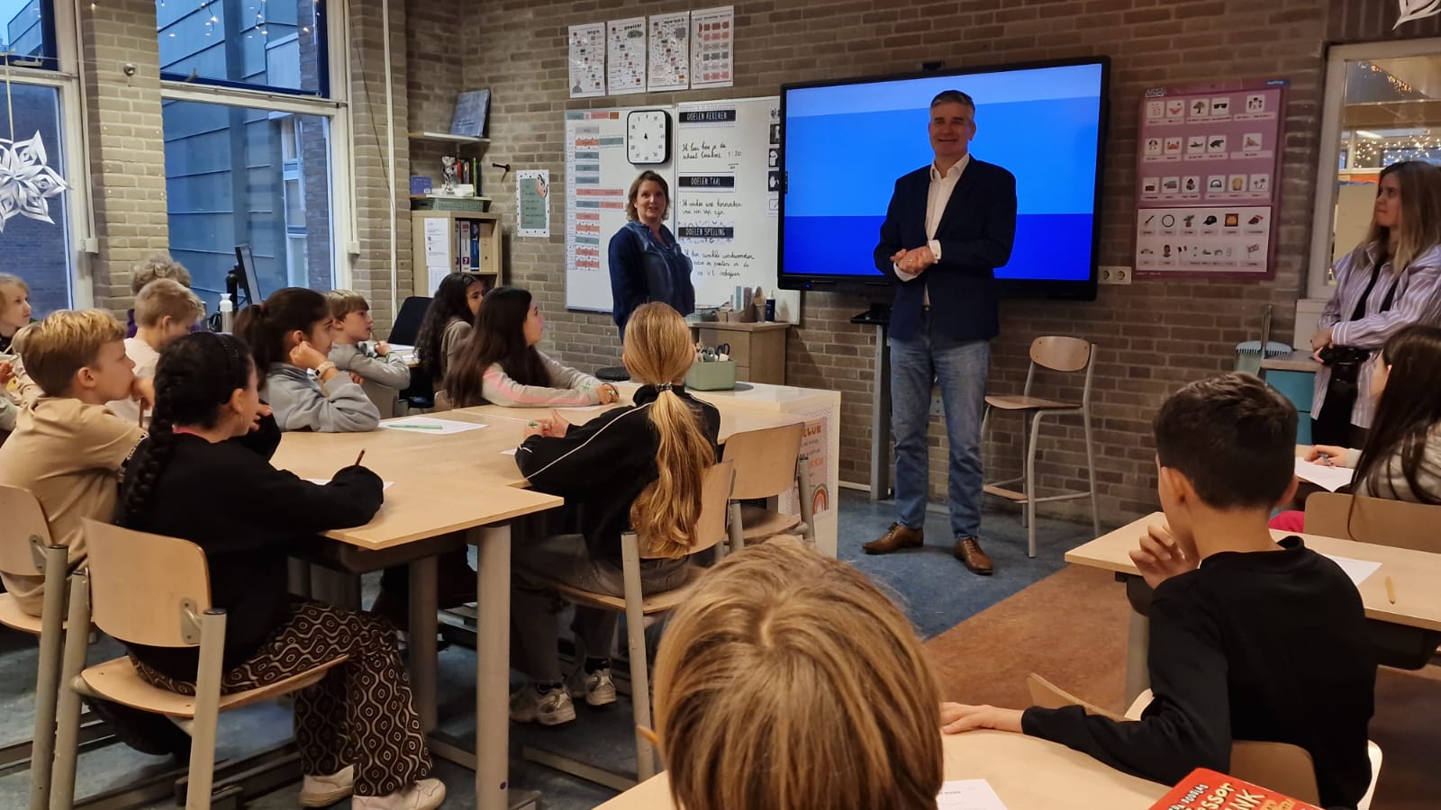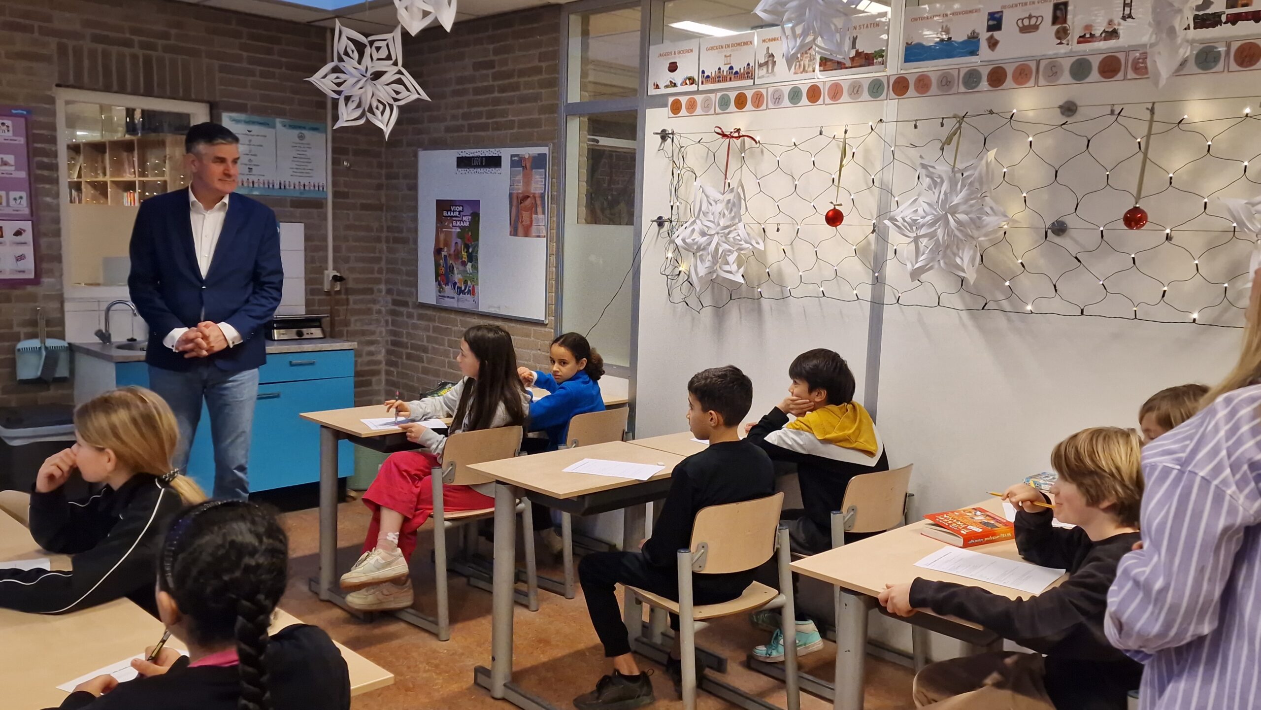 Becking was te gast bij groep 7 op de school. Daar maakte hij eerst kennis met de klas. Daarbij vertelde hij onder meer wat een staatssecretaris is, en wat die doet. Ook wilde hij van de kinderen weten wat ze later willen worden. Tot teleurstelling van Becker zaten er geen toekomstige bestuurders tussen, maar wel restaurantdirecteurs, kunstenaars en archeologen.