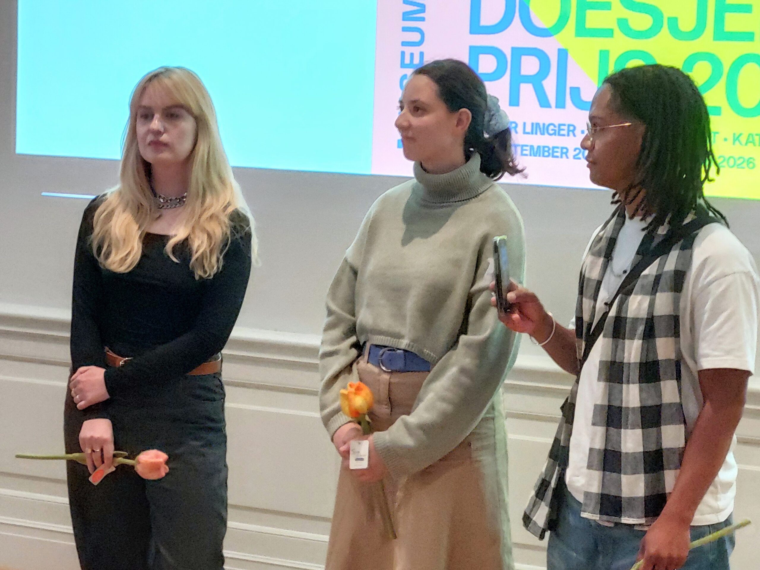 De genomineerden van de Doesjenel Prijs 2025 met van links naar rechts Katerina Sidorova, Larissa Esvelt en Jaasir Linger. (Foto: Cor Klein)