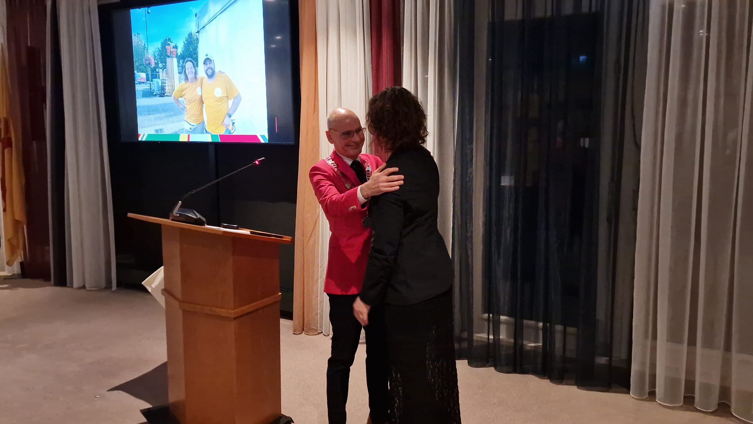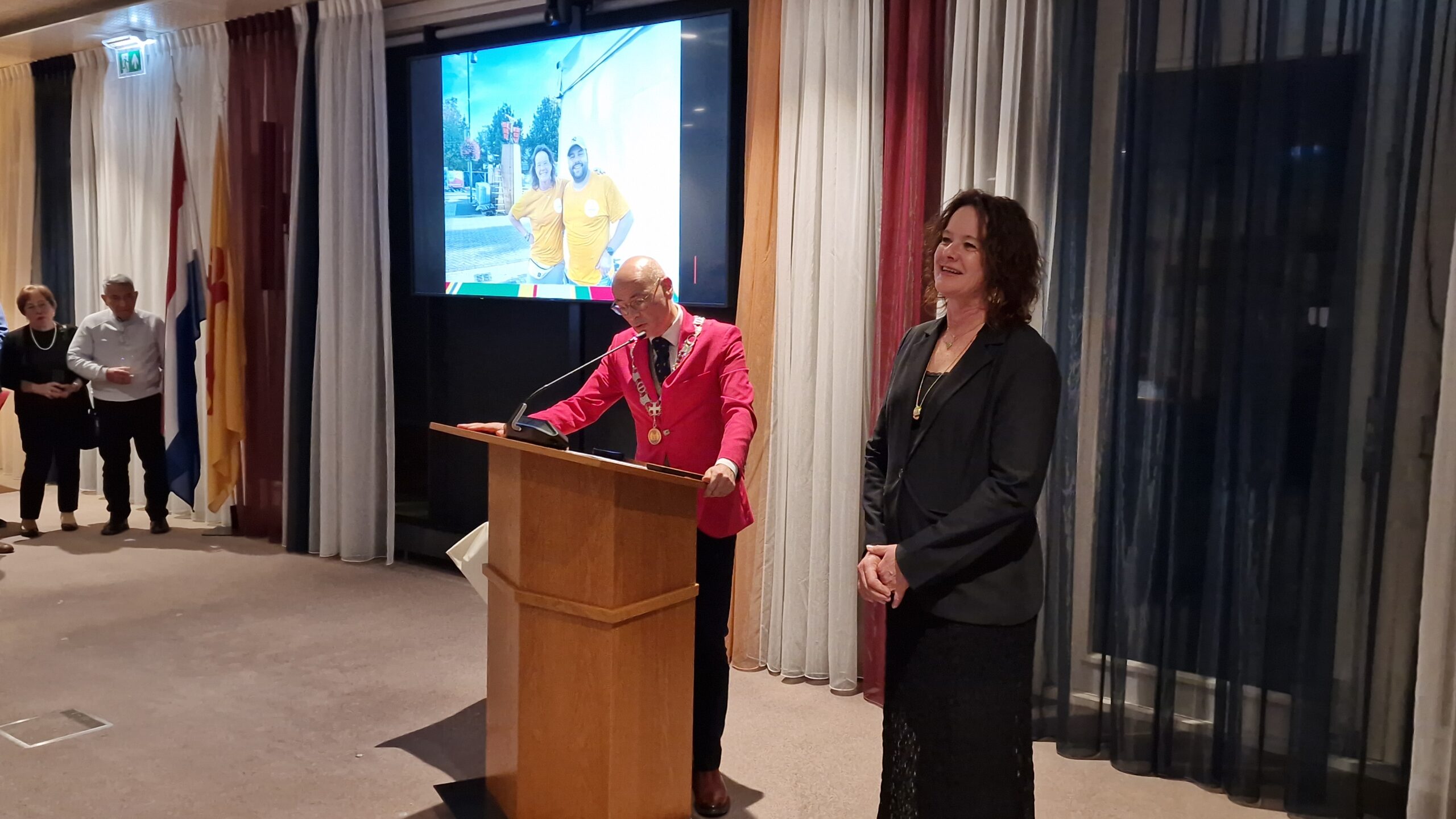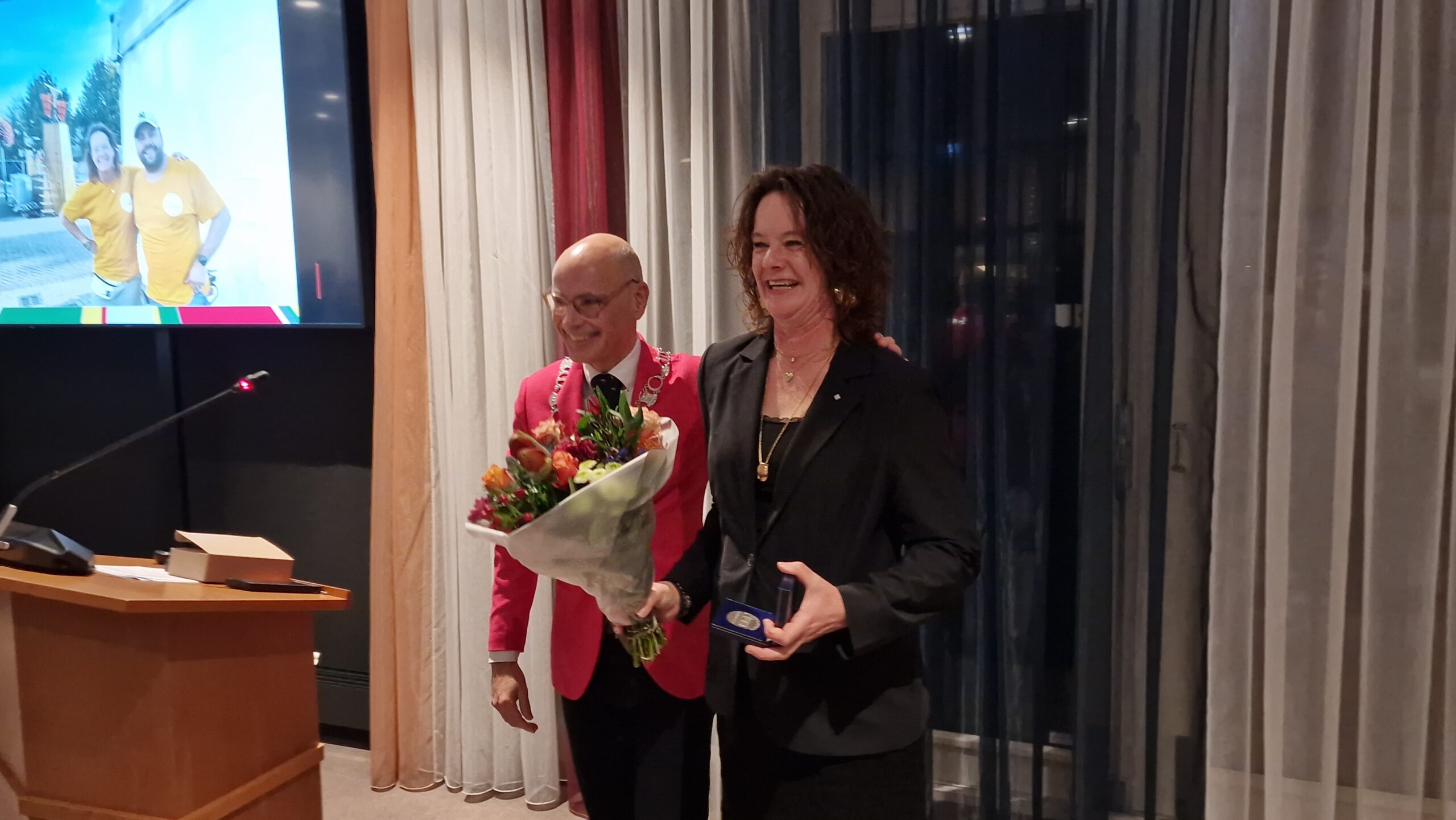 “Samenvattend: met Dorpskracht heb je het hele dorp verbonden. Hut 16 is voor de jeugd tot 13 jaar, het kerstdiner voor de eenzame en de ouderen en het Dorpsfeest voor iedereen”, aldus burgemeester Jaensch, die de Erepenning overhandigde en haar het bijbehorende spelde opspeldde.