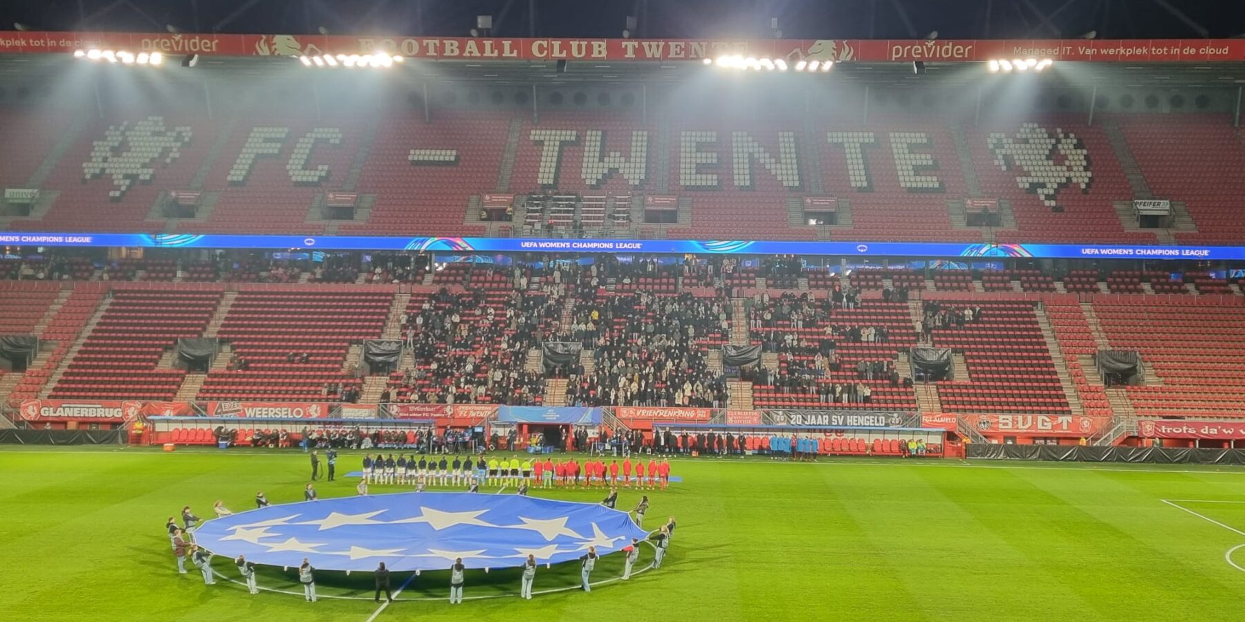 FC Twente was al uitgeschakeld in de Women’s Champions League, maar de Tukkers waren erop gebrand een goed resultaat neer te zetten. In de eerste helft had de Spaanse ploeg de overhand, maar Twente hield stand en was zeker niet kansloos. Ravensbergen is een vaste waarde in de spits bij FC Twente en loerde op haar kans. In de eerste helft was die er nog niet, maar vrijwel direct na rust vond Ravensbergen het net. Een voorzet van links werd bij de eerste paal binnengekopt.