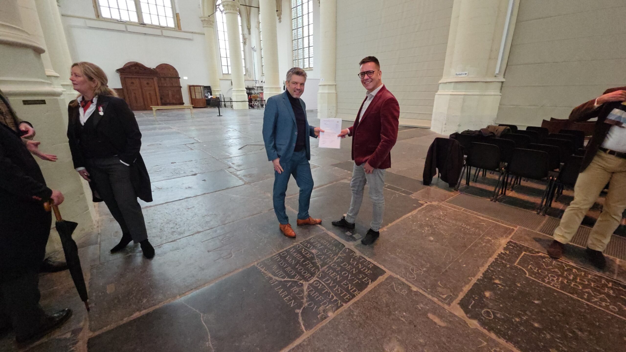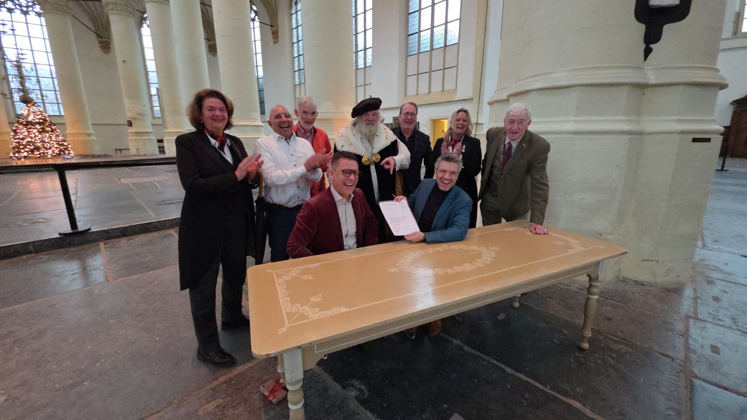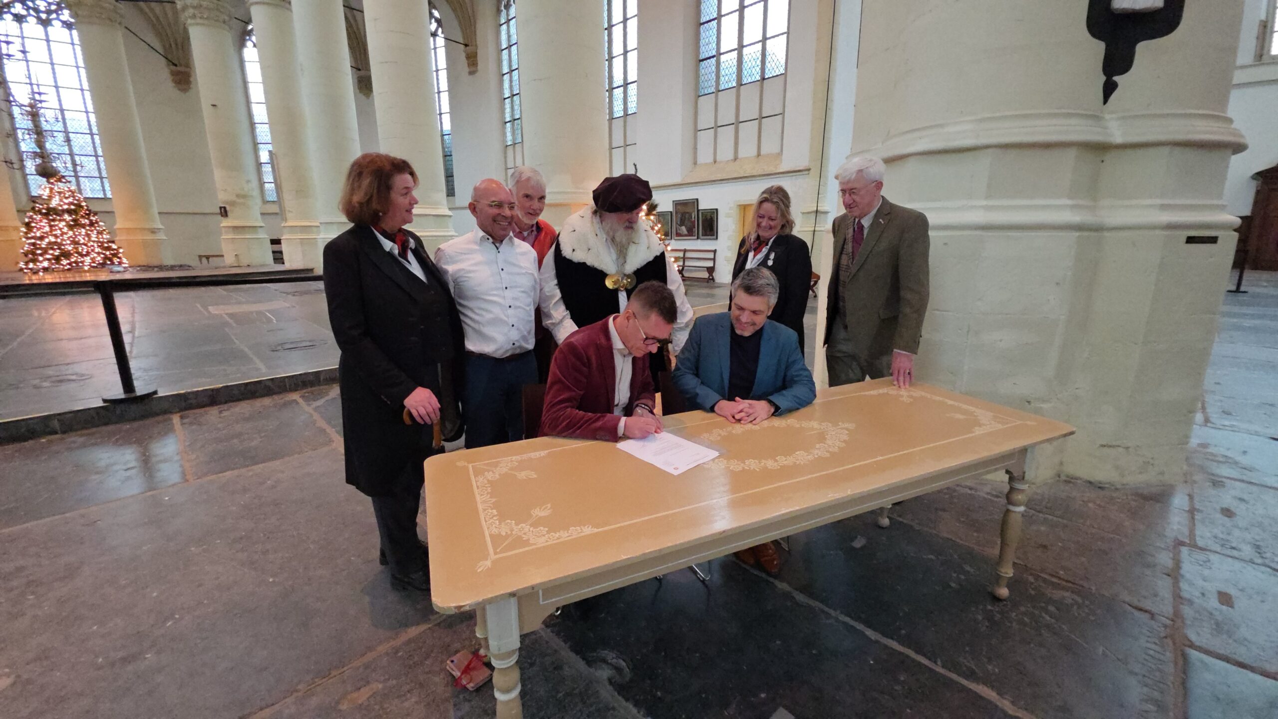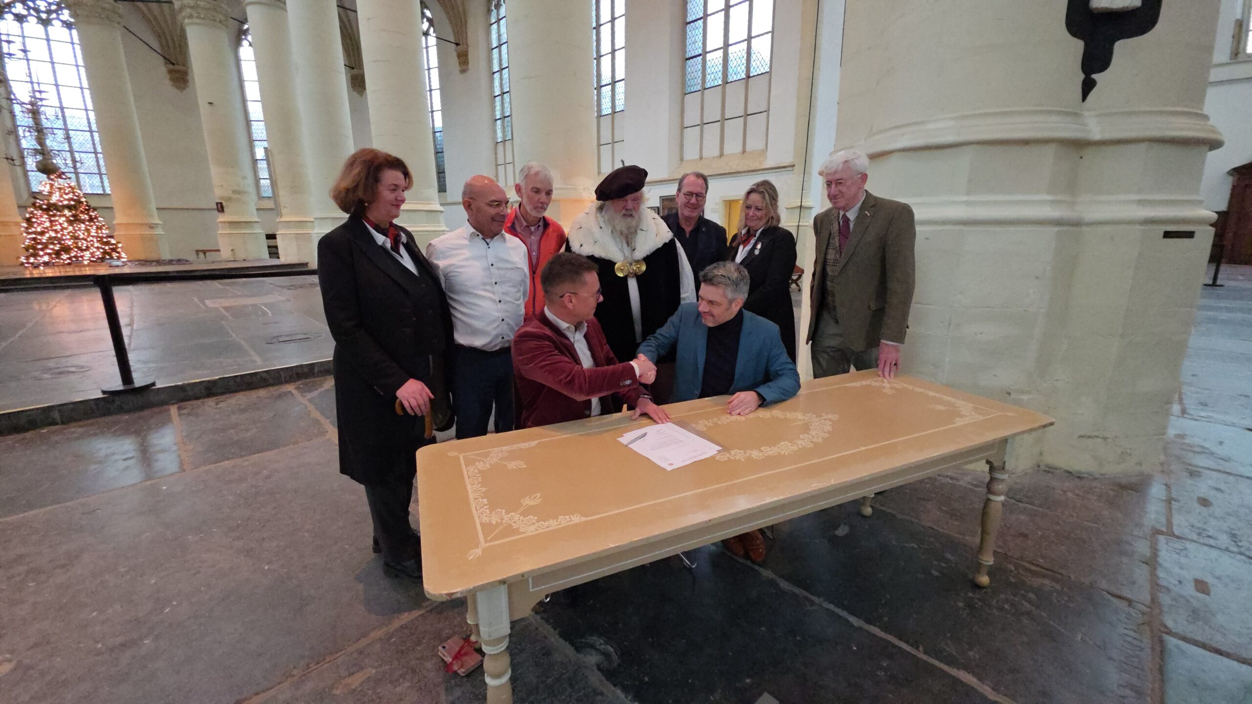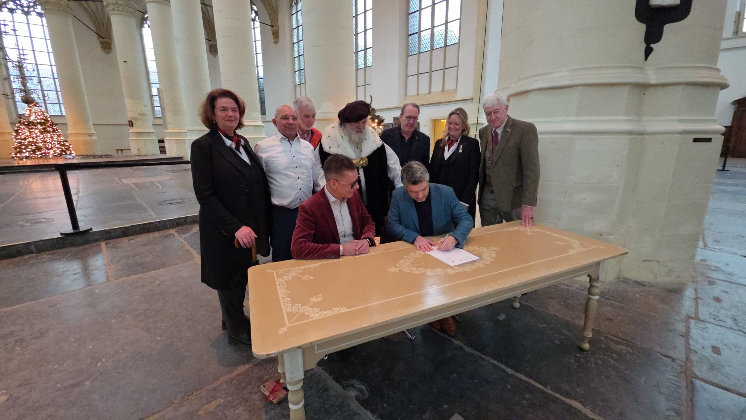 De Stichting Stadsparkeerplan Leiden (SSL) ondertekende donderdag de overeenkomst voor de restauratie van de grafzerk van burgemeester Pieter van der Werf. Dat plechtige moment vond plaats in de Hooglandse Kerk waar de grafzerk van de Leidse burgemeester naast het grafmonument ligt.