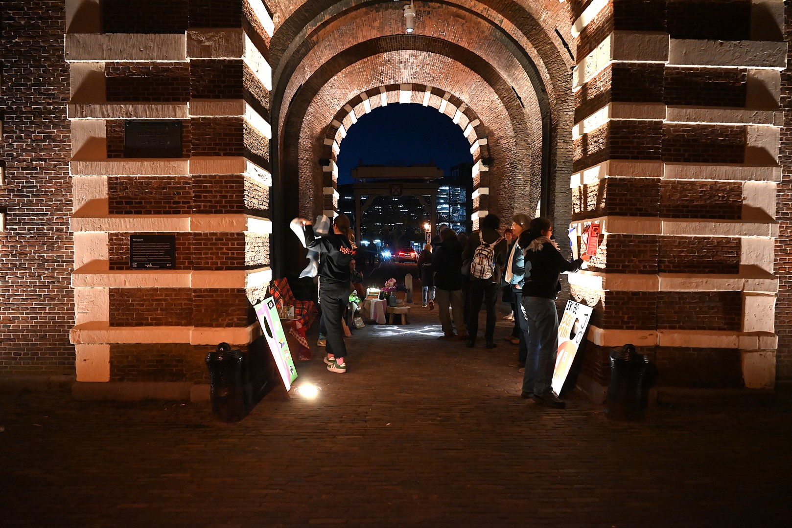 De van alle kanten verlichte Morspoort oogt niet als het engste plekje van Leiden, geeft Schubert toe. “Toen we een week of zes geleden aan het scouten waren, was de verlichting stuk en zag het er hier niet uit als een plek waar je graag wilt zijn.” Inmiddels is de verlichting gemaakt. De aankleding met kaarsen, lampjes, stoelen en tafeltjes en zelfs een bos bloemen en een plant maakt de pop-up huiskamer helemaal aangenaam.