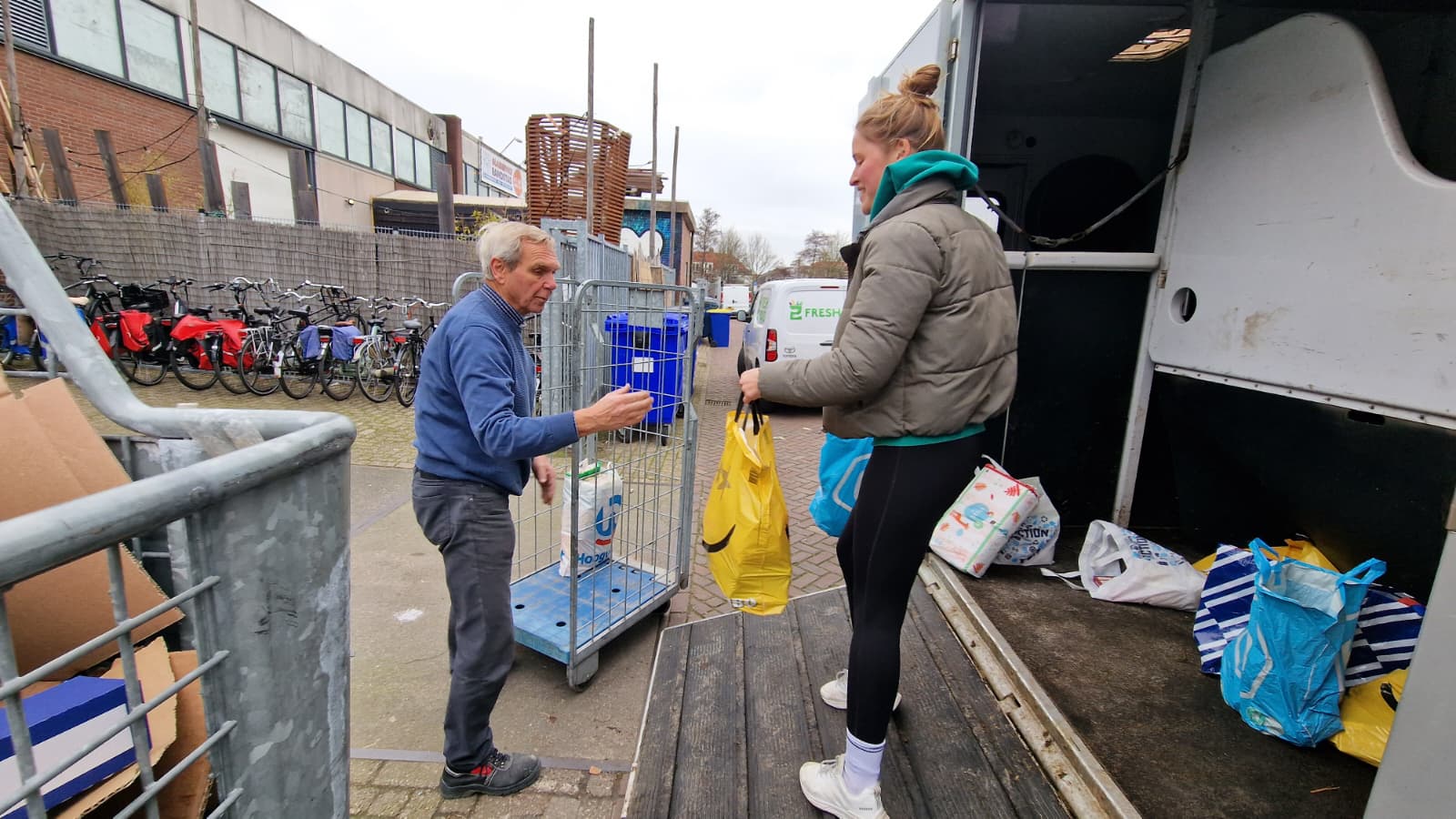 Van Bodegom was oorspronkelijk van plan de opbrengst met de auto te gaan brengen, maar doordat de opbrengst alle verwachtingen te boven ging werden de tassen vol eten met een bus naar de Voedselbank aan de Willem Barentszstraat gebracht. Daar stonden de medewerkers haar al op te wachten. Uiteindelijk werden twee karren volgeladen met de door de sporters ingezamelde spullen.