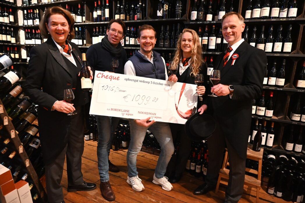 Door Wijnhandels Noordman en Bordelaise werd van iedere verkochte fles van die wijn een bedrag opzijgezet voor de 3 October Vereeniging. Alle verkopen bij elkaar leverden 1099,99 euro op. De Vereeniging ontving onlangs een cheque van dat bedrag van Yvo Eradus van de beide wijnhandels.