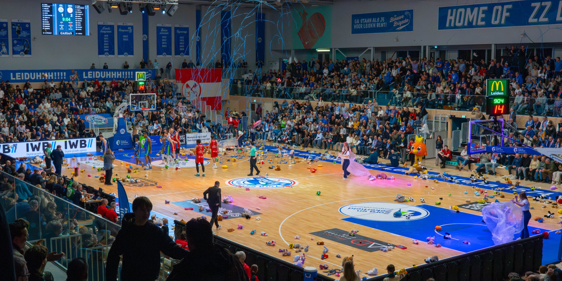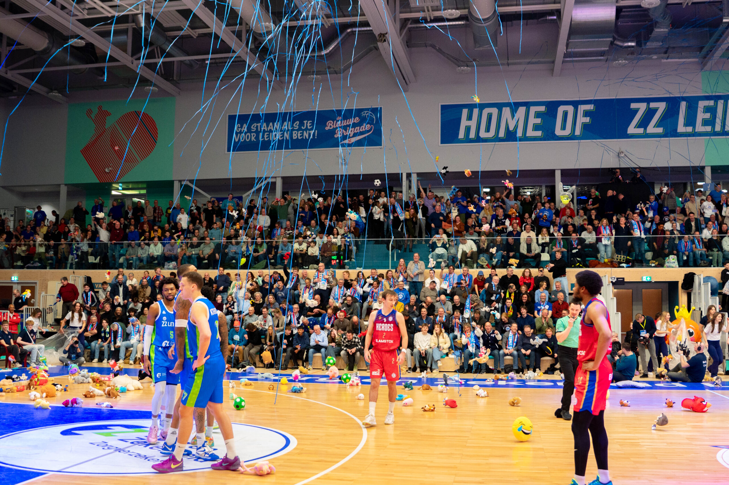 Arunas Mikalauskas, een van de drie spelers in Bossche dienst met een Leids verleden, opende de score in een kolkende hal. Na de eerst rake vrije worp van Tyreek Scott-Grayson vond de Teddy Bear Toss plaats. Vele knuffels werden vanaf de tribunes het veld naar het veld gegooid. De knuffels zullen in het nieuwe jaar uitgedeeld worden aan zieke kinderen in het Willem-Alexander Kinderziekenhuis.