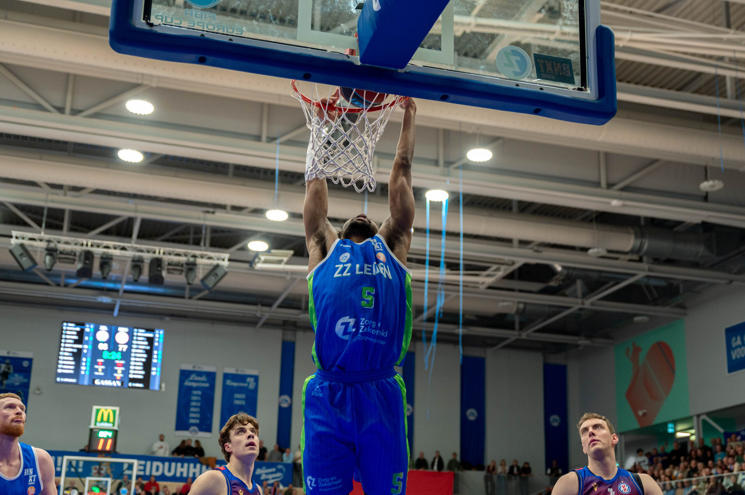 In het laatste kwart bleef ZZ Leiden op achterstand staan. Jae’lyn Withers en Kerwin Walton zorgden voor de nodige Bossche scores. Vier minuten voor tijd was het 73-87 en leek de eerste thuisnederlaag van dit seizoen aanstaande. In de slotfase kwam ZZ Leiden via weer een dunk van Roberts en scores van McCollum en Scott-Grayson nog terug tot 89-93, maar in die laatste acht seconden benutte Heroes Den Bosch via Walton twee vrije worpen en was het over en uit: 89-95.
