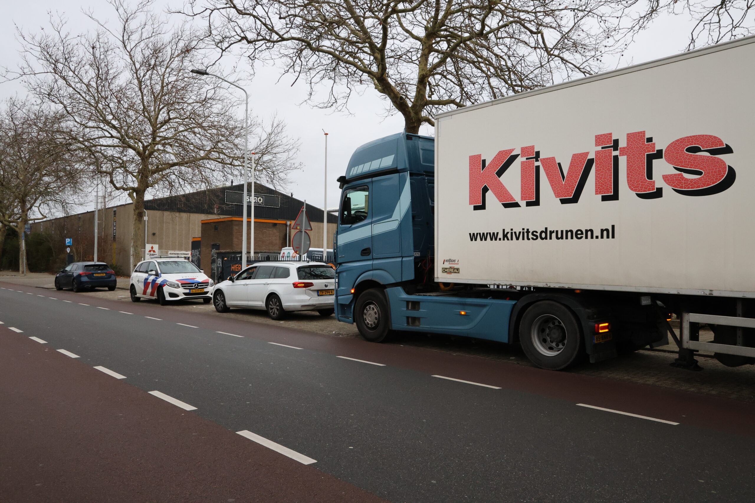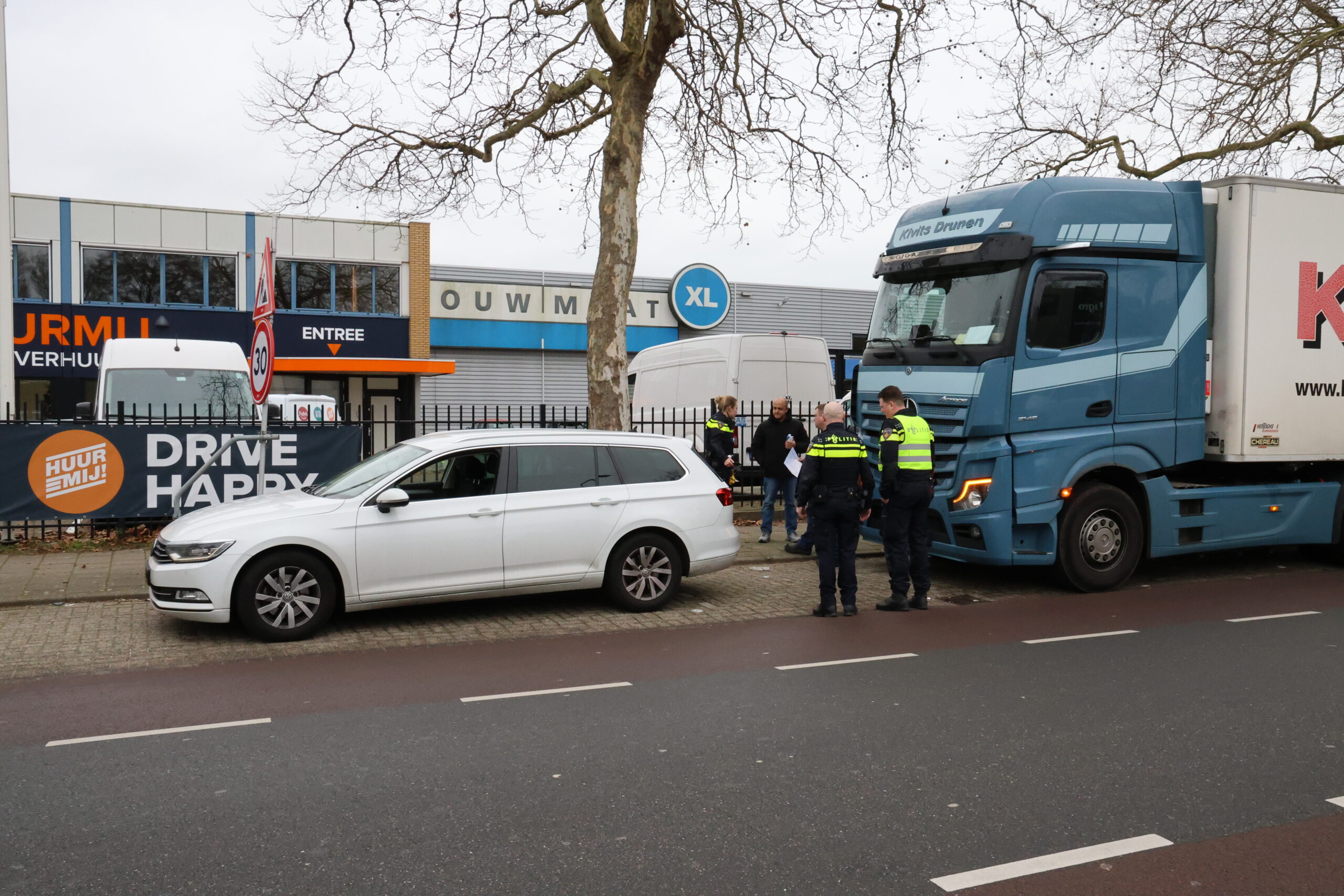 Bij een kop-staartbotsing tussen een vrachtwagen en een personenauto in de Rooseveltstraat in Leiden is maandagmiddag alleen materiële schade ontstaan.