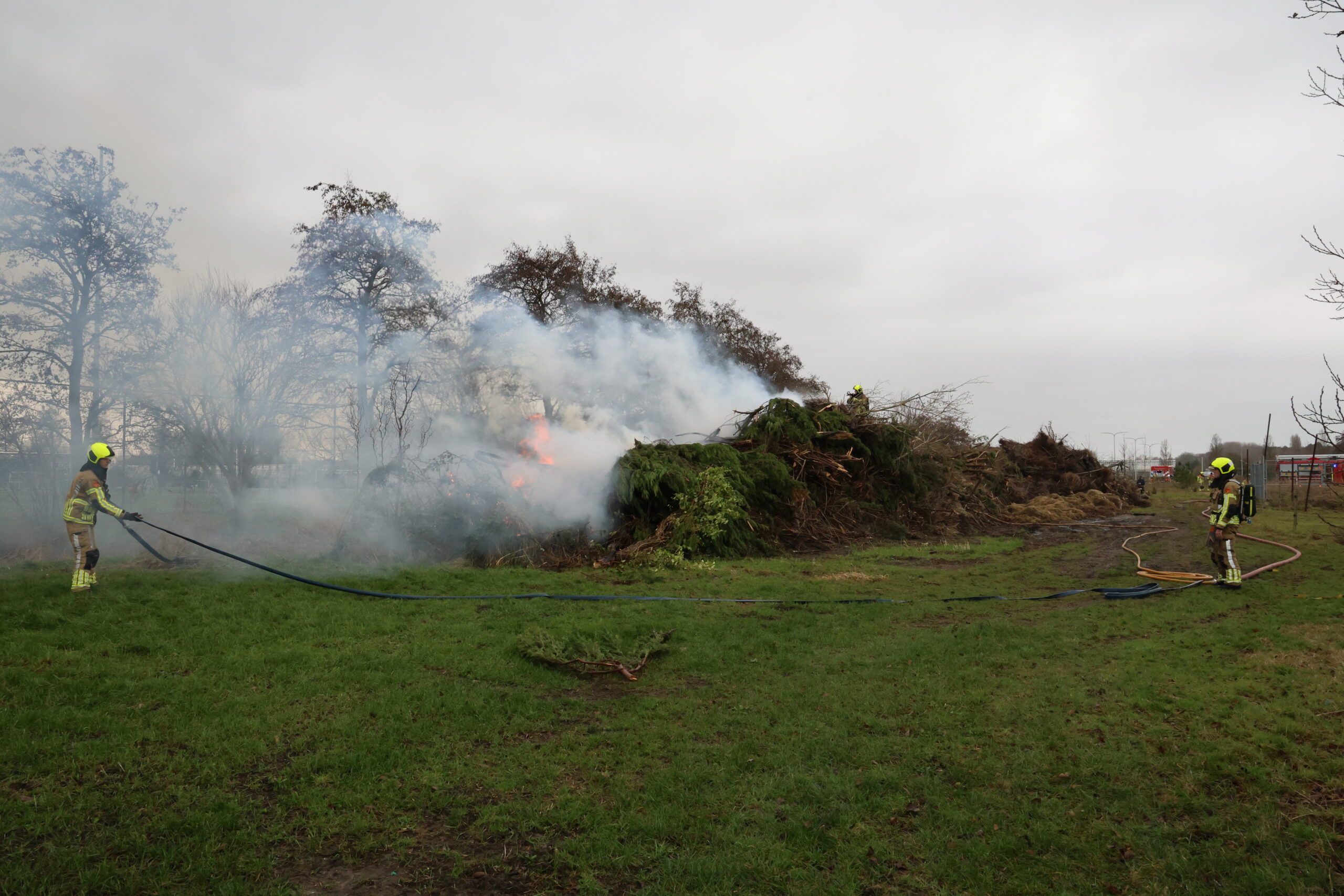 De brandweer uit Voorschoten heeft woensdagmiddag rond 13.00 uur geassisteerd bij het blussen van een grote hoop kerstbomen en snoeiafval achter de voetbalvelden aan de 1e Mientlaan in Katwijk. Bij de brand komt veel rook vrij. De oorzaak is niet bekend, al word brandstichting niet uitgesloten. (Foto; Regio15)