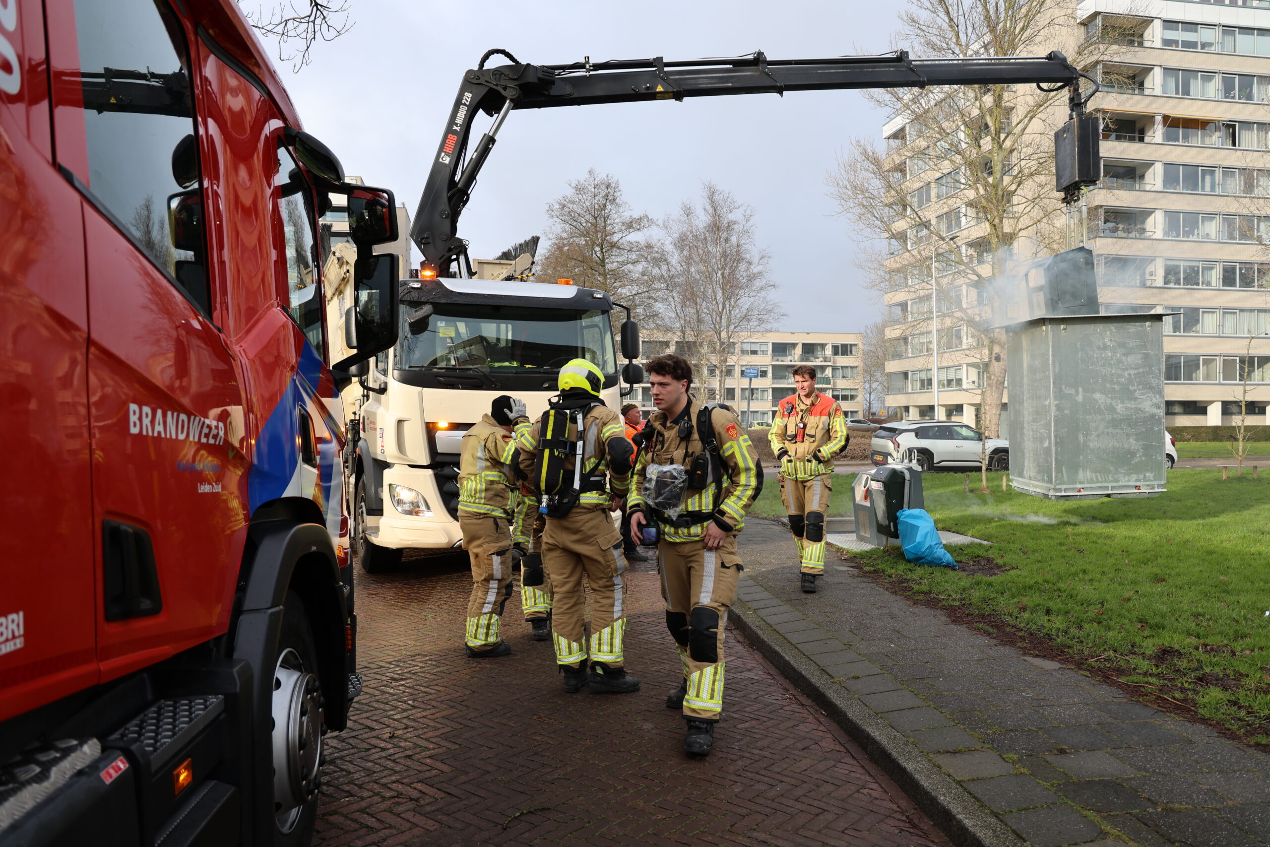 De gemeente heeft de container uit de behuizing getakeld, waarop de brandweer de boel kon blussen.
