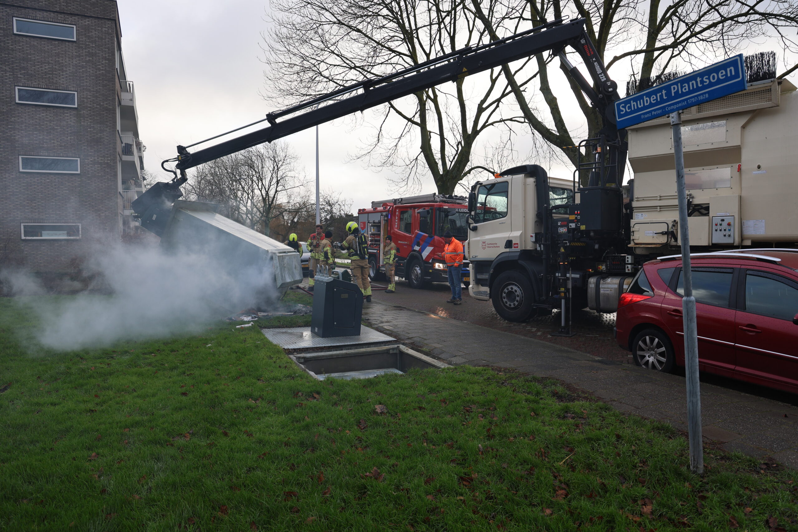 Onbekenden hebben vrijdag brand gesticht in een ondergrondse afvalcontainer aan het Schubertplantsoen in Voorschoten. De brand werd kort voor 13.00 uur ontdekt.