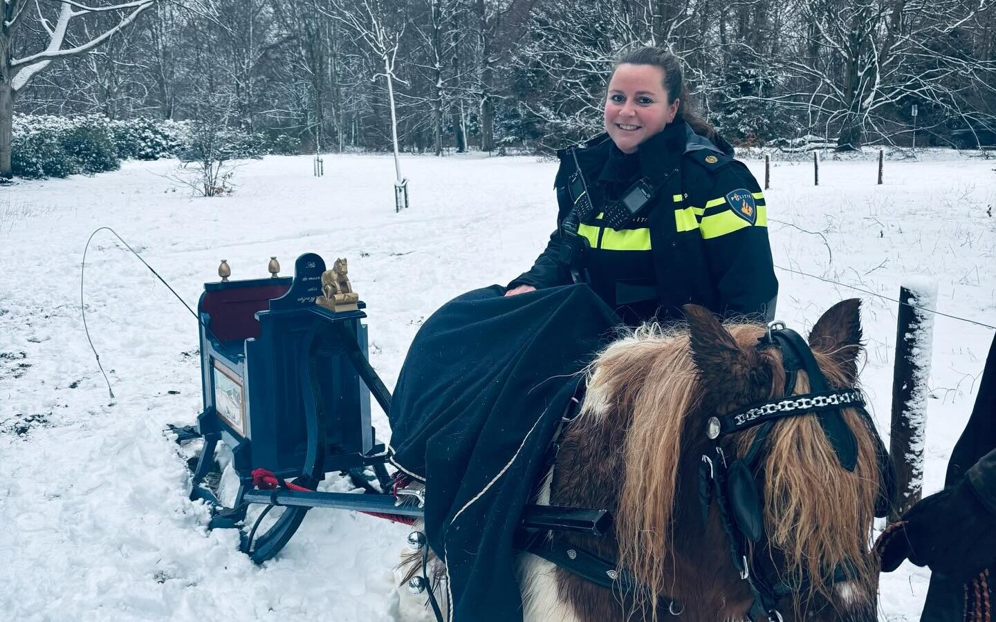 “Geniet van de sneeuw, maar blijf voorzichtig, ook bij pony power”, meldt de politie Wassenaar met een knipoog.