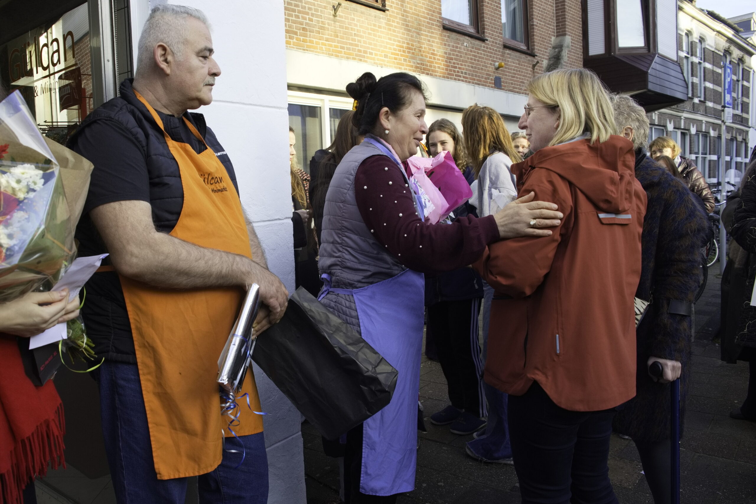 Zaterdagochtend namen bewoners van de Leidse wijk Transvaal massaal afscheid van ‘hun’ bakkerij Gülcan op de Morsweg. De spontane actie was bedacht door Nicoline van Straten die zelf ook aan de Morsweg woont en trouwe klant is van bakkersechtpaar Gülcan en haar man Fati.