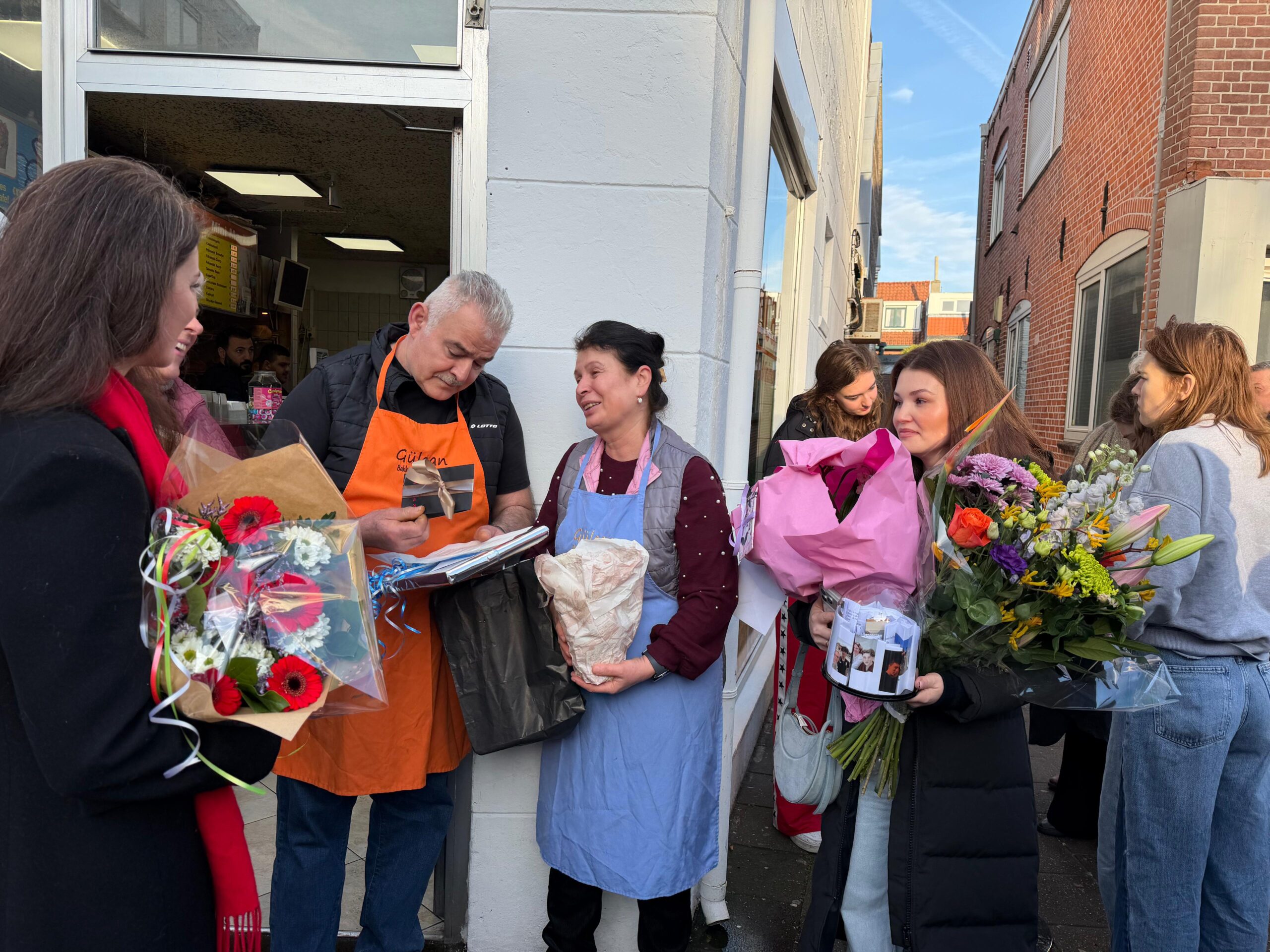 Blij en verrast waren ze. Na achttien jaar namen Gülcan en Fati Naim afscheid als eigenaren van bakkerij Gülcan. Dit weekend werden ze door de buurt verrast met zang, bloemen en cadeautjes. En een grote pot vol wensen en bedankbriefjes.