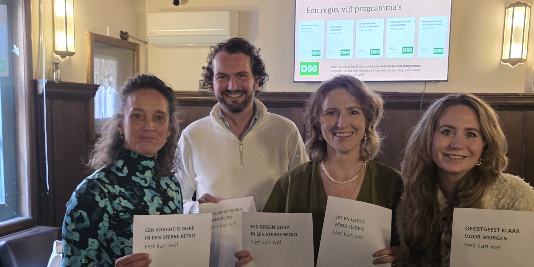 In het najaar presenteerde de partij hun verkiezingsprogramma voor de Leidse regio, waar ook Leiderdorp, Oegstgeest, Voorschoten en Katwijk toe behoren. “Een huis zoeken of ondernemen stopt niet aan de gemeentegrenzen. Met dit team gaan we in nauwe samenwerking met de regio werken aan meer woningen, een groene stad, onderwijs op maat, de economie van de toekomst en de gezondste generatie ooit”, Aldus Veltman.