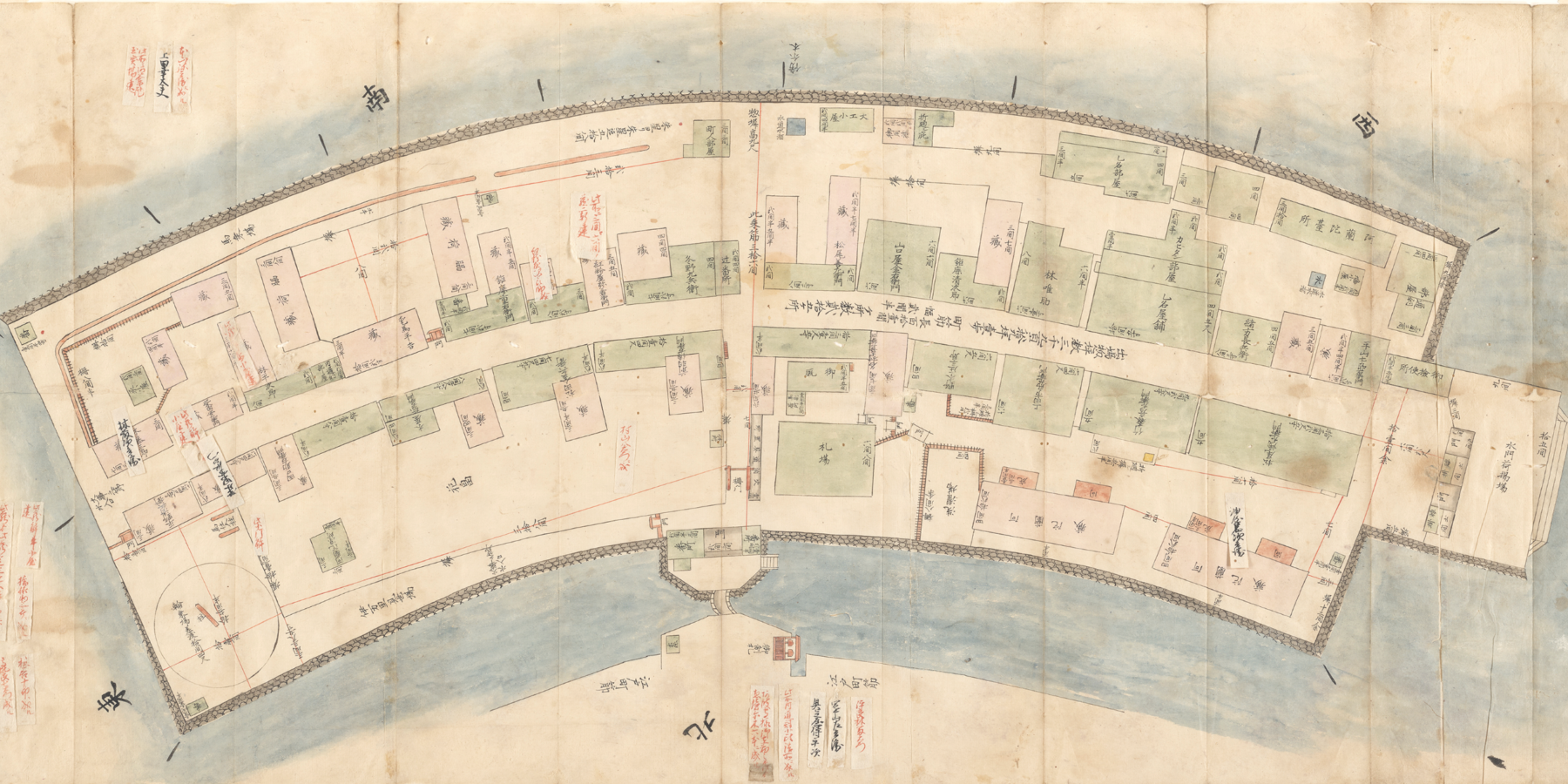 De kaart is gemaakt door Japanse ambtenaren en meet 87 bij 38 centimeter. Op de plattegrond staan woonhuizen, pakhuizen, waterputten en namen van bewoners. Ook is te zien hoeveel belasting per adres moest worden betaald. Fouten en andere wijzigingen werden op de kaart gecorrigeerd met kleine opgeplakte strookjes papier.