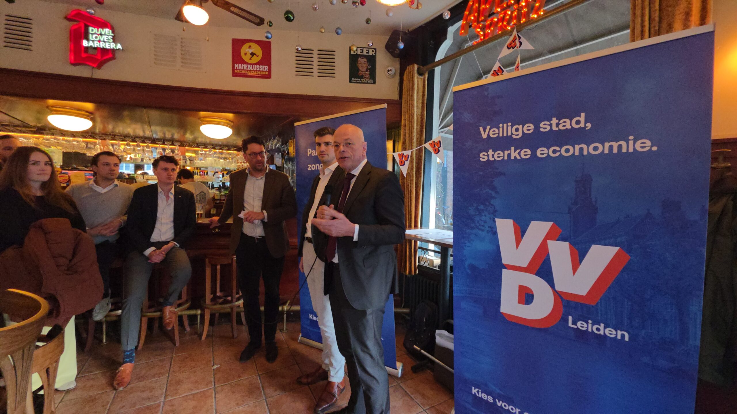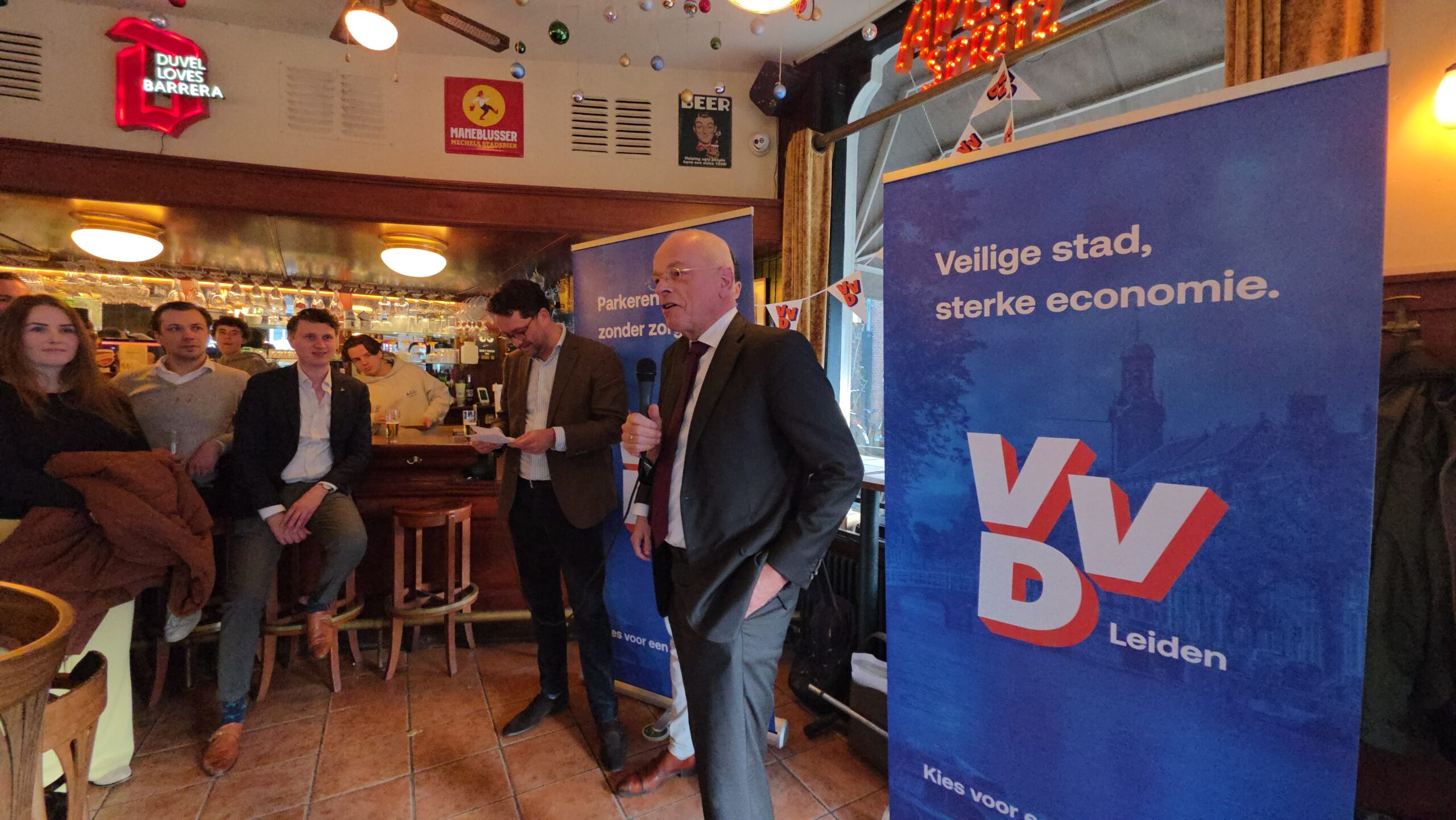 Samen met lijsttrekker Maarten de Crom sprak hij de aanwezigen toe waarbij het onder meer ging over typische ‘VVD-onderwerpen’ als parkeren en economie. Iets minder voor de hand liggend is de aandacht voor voldoende huisvesting voor huisartsen waar de partij dit keer ook een punt van maakt. “Tijdens de campagne zal de toon af en toe wel wat scherper zijn”, kondigde De Crom alvast aan. “Er valt echt wel wat te kiezen in Leiden. Als VVD hebben we een ander programma dan GroenLinks PvdA en dat gaan we natuurlijk wel duidelijk maken. Leiden is tenslotte te mooi om links te laten liggen.”