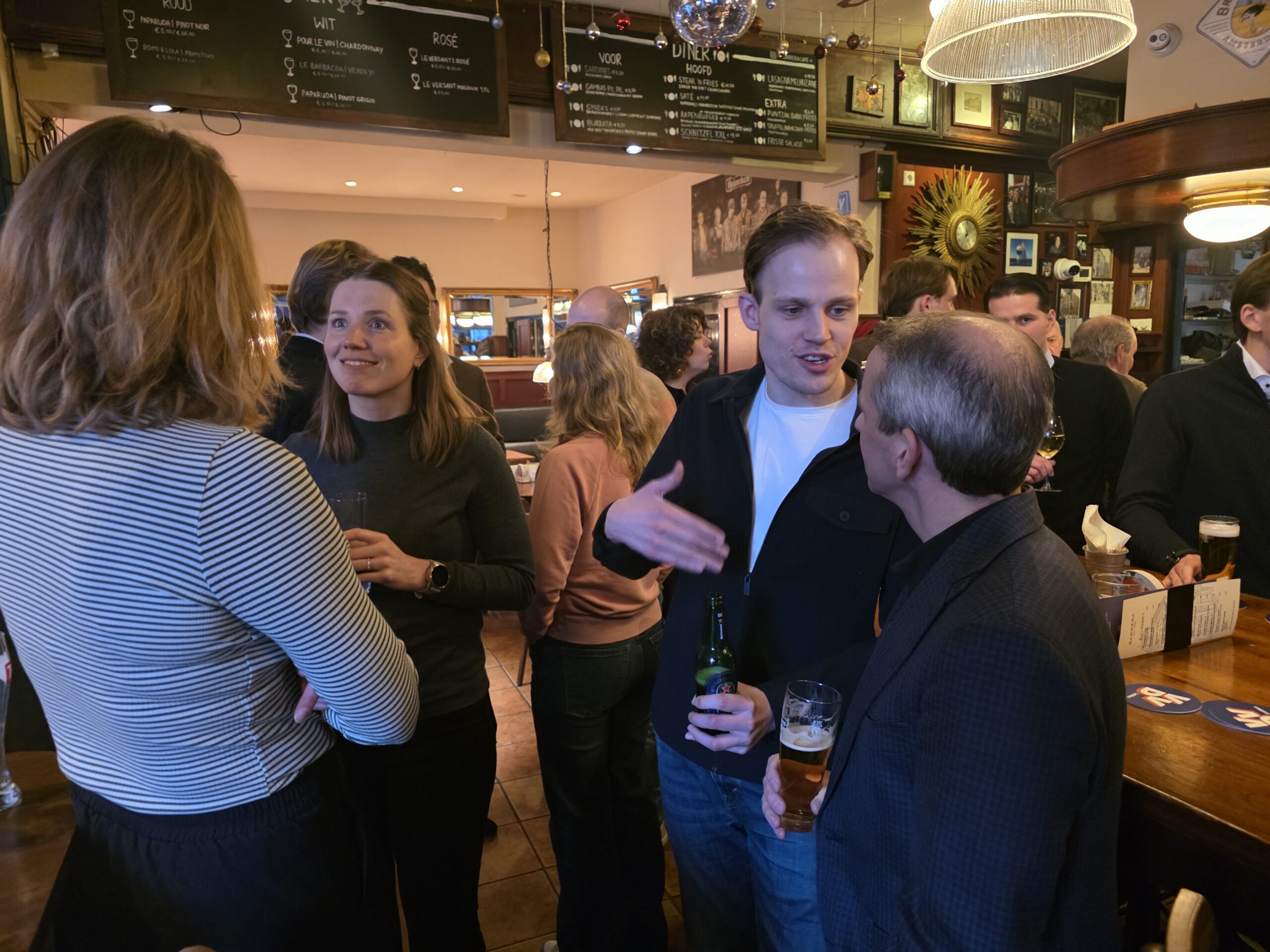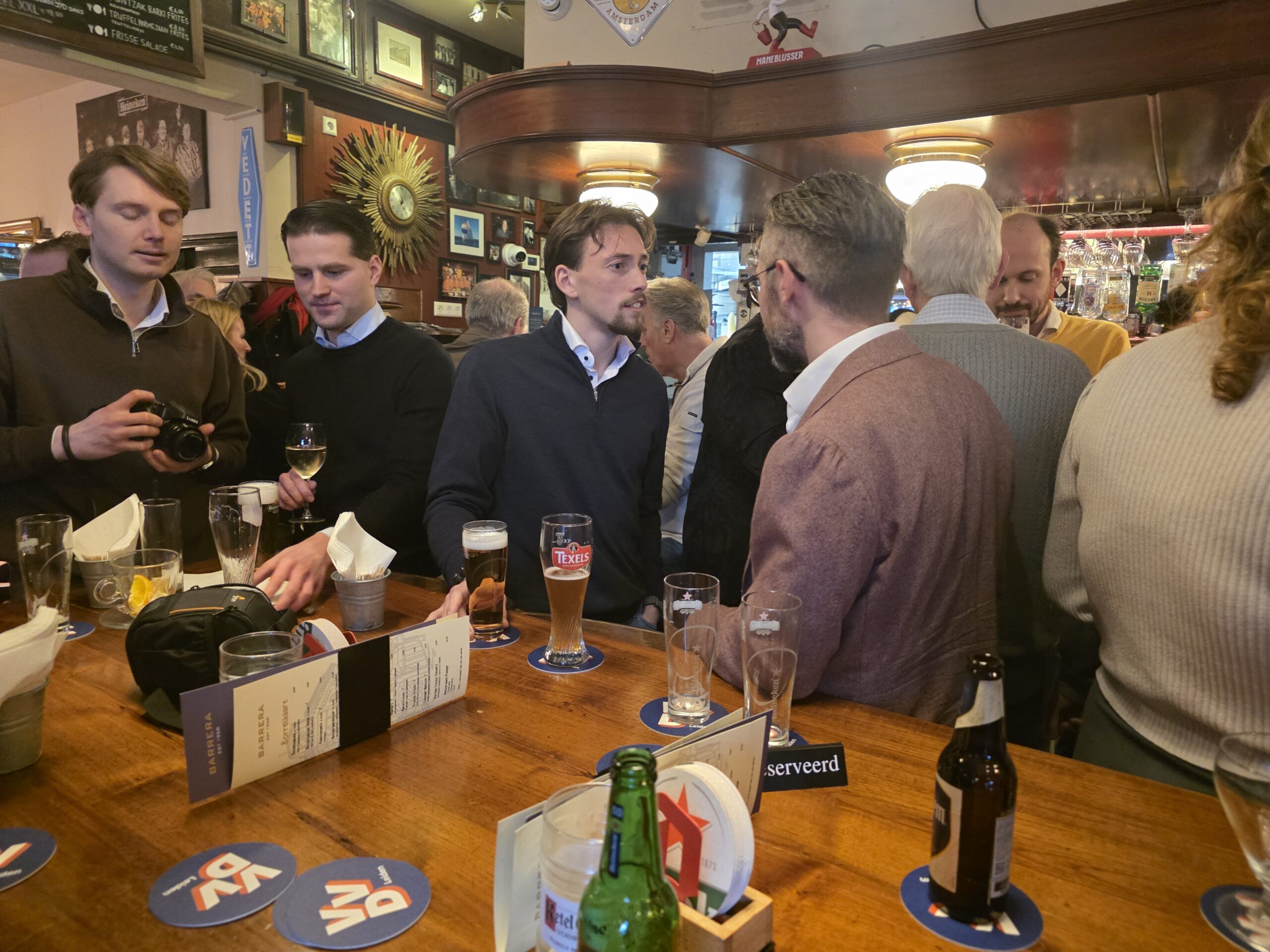 Meestal is de VVD Leiden de politieke partij die helemaal aan het einde van januari als laatste een nieuwjaarsbijeenkomst houdt, maar die was dit jaar wat eerder. “Anders moesten we met onze borrel concurreren met de Leidse blues & jazzweek”, verklaart afdelingsvoorzitter Wouter-Jan Broekman die aanpassing. Dat hielp vast, want het was behoorlijk druk in café Barrera waar zondagmiddag ook VVD-minister Jan Anthonie Bruijn zijn opwachting maakte.