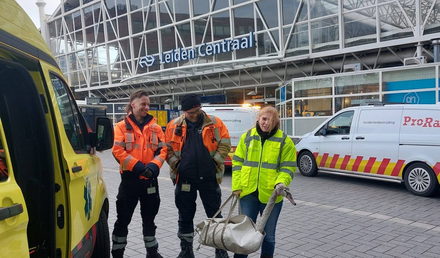 De dierenambulance werd vrijdagmiddag opgeroepen voor een patiënt die zich op een bijzondere plek in de nesten had gewerkt. Namelijk op het spoor van Leiden Centraal.