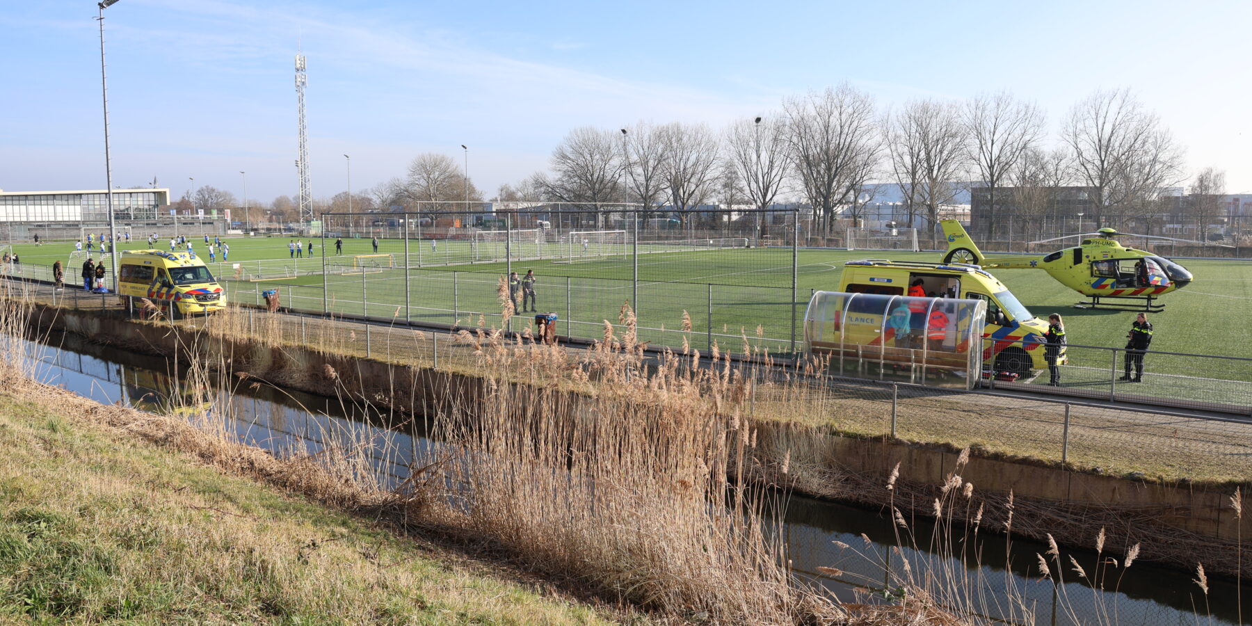 Een scheidrechter is tijdens het fluiten van een jeugdvoetbalwedstrijd bij VV Meerburg in Zoeterwoude-Rijndijk onwel geworden. Vanwege de ernst van de onwelwording zijn hulpdiensten massaal uitgerukt naar de voetbalvereniging.