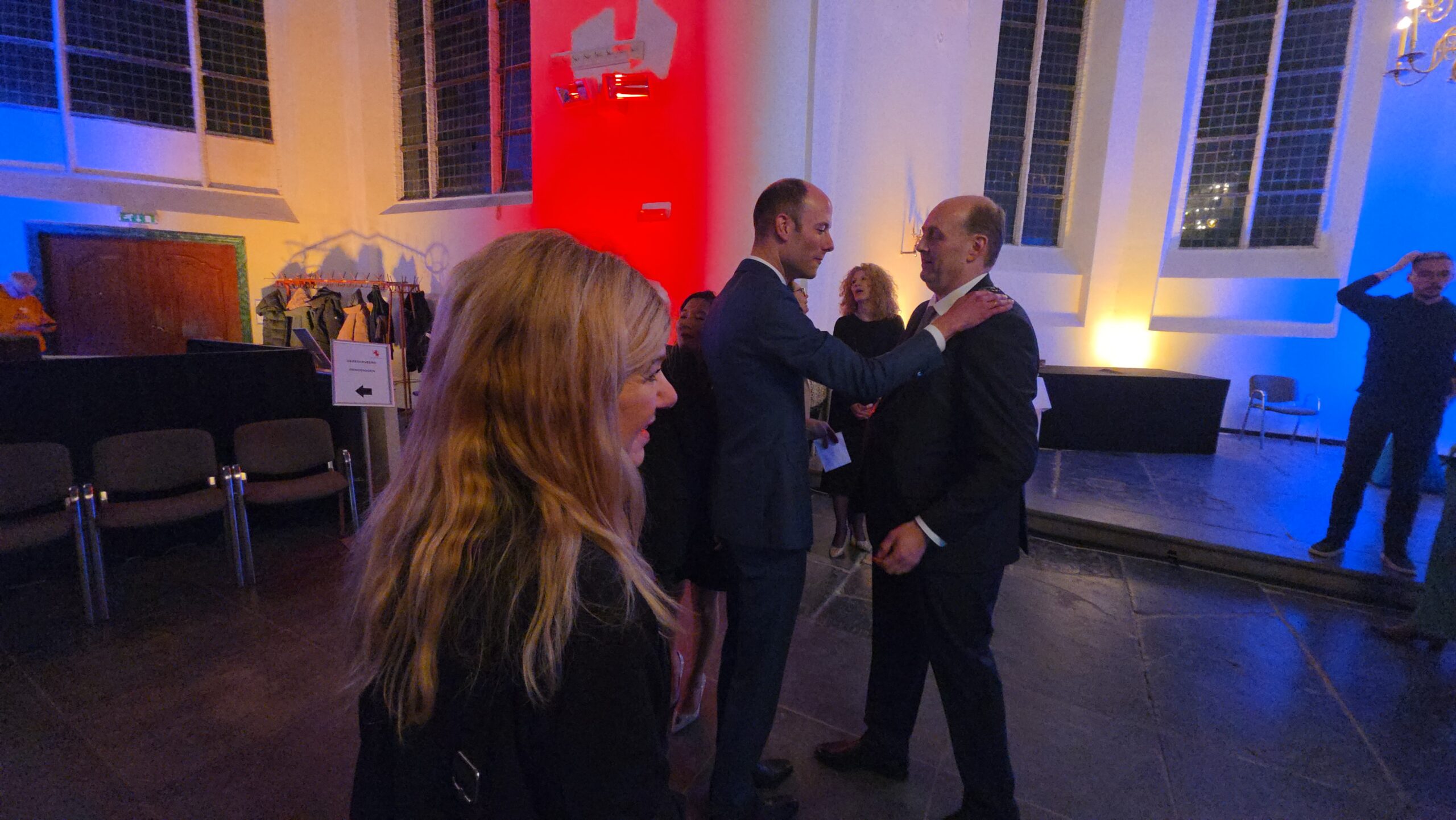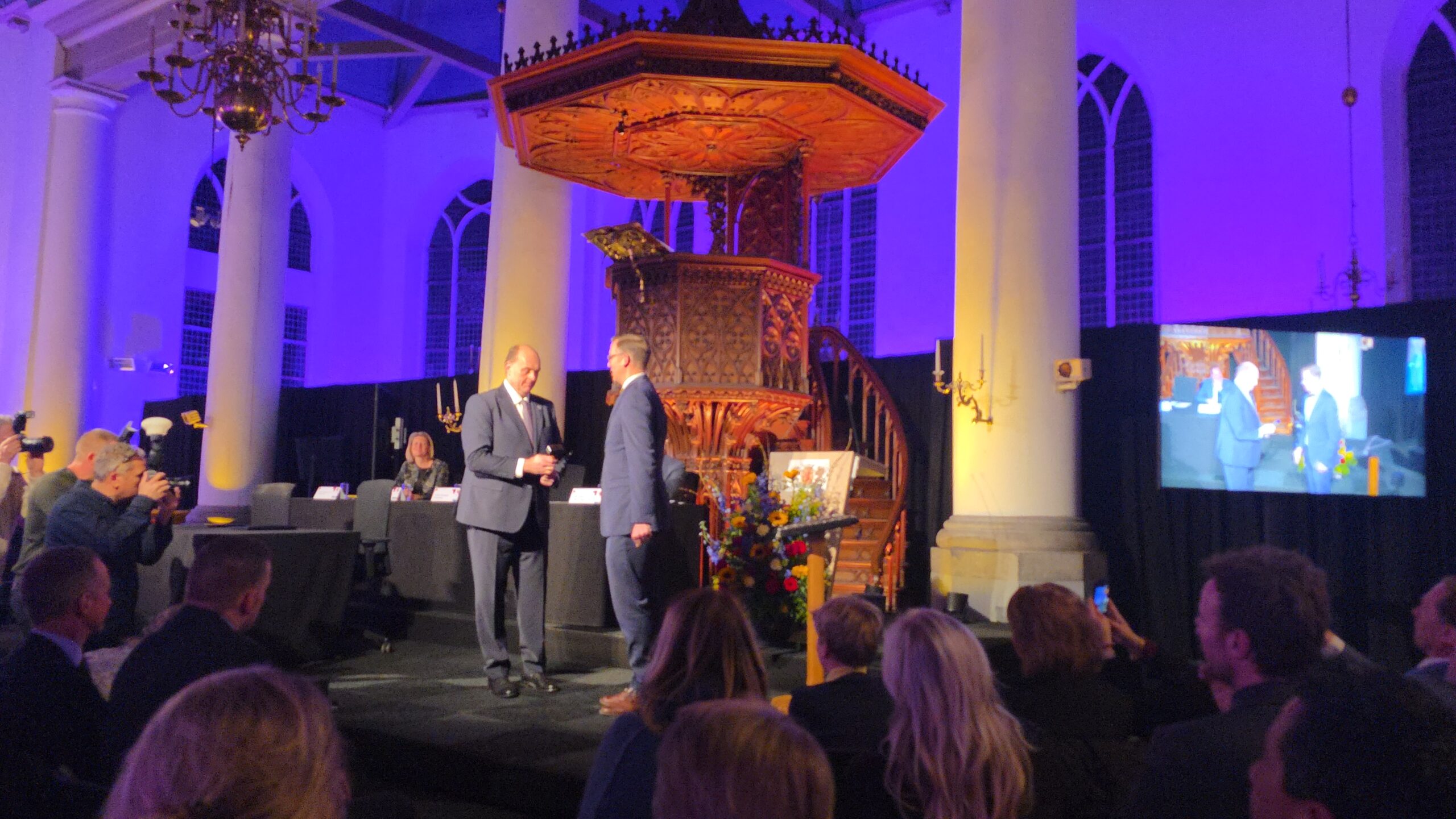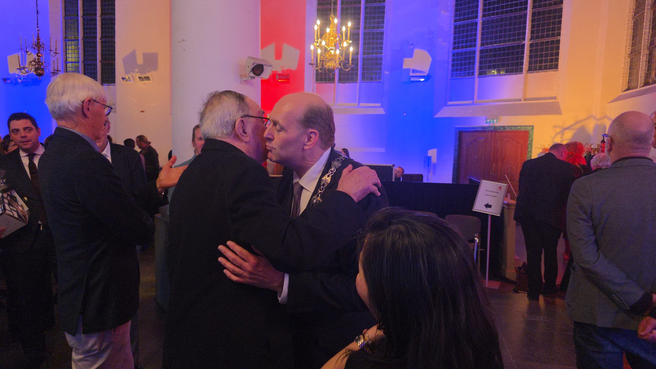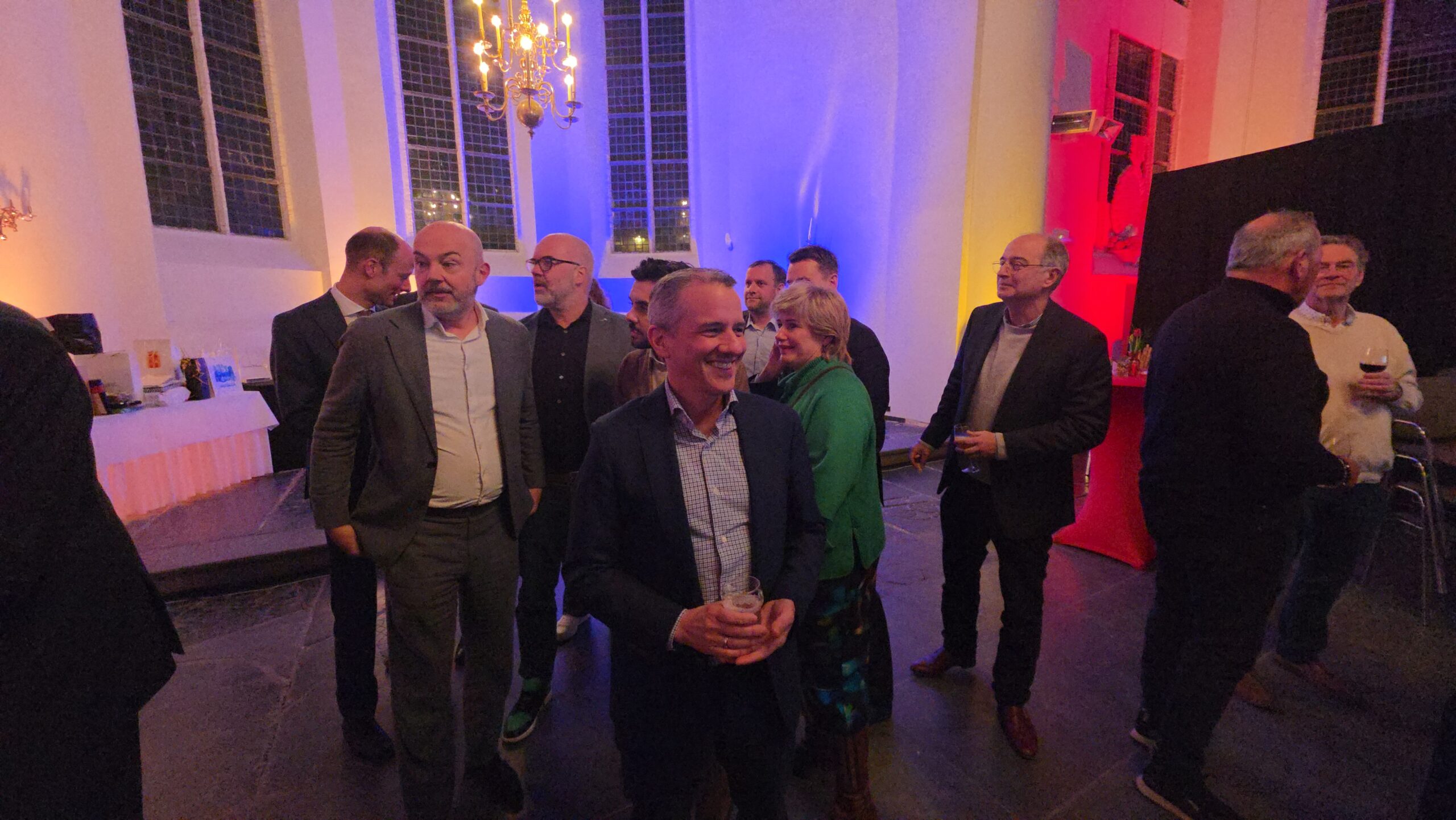 Om de bijzondere gebeurtenis bij te wonen was een hele delegatie uit Leiden afgereisd naar Vlaardingen. Daaronder en flink deel van de VVD-fractie, oud-wethouders Paul Laudy en Rogier van der Sande en ook oud-wethouder Yvonne van Delft die sinds begin deze maand directeur is van Stroomopwaarts. Dat is het reïntegratiebedrijf van onder andere Vlaardingen.