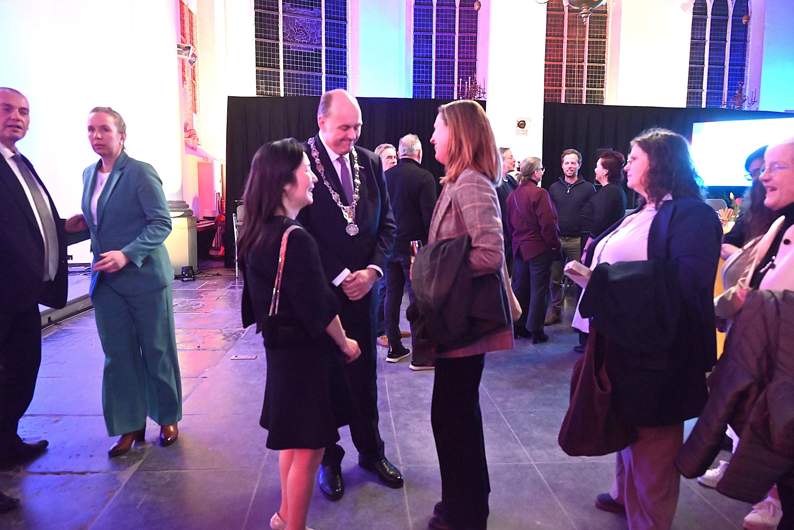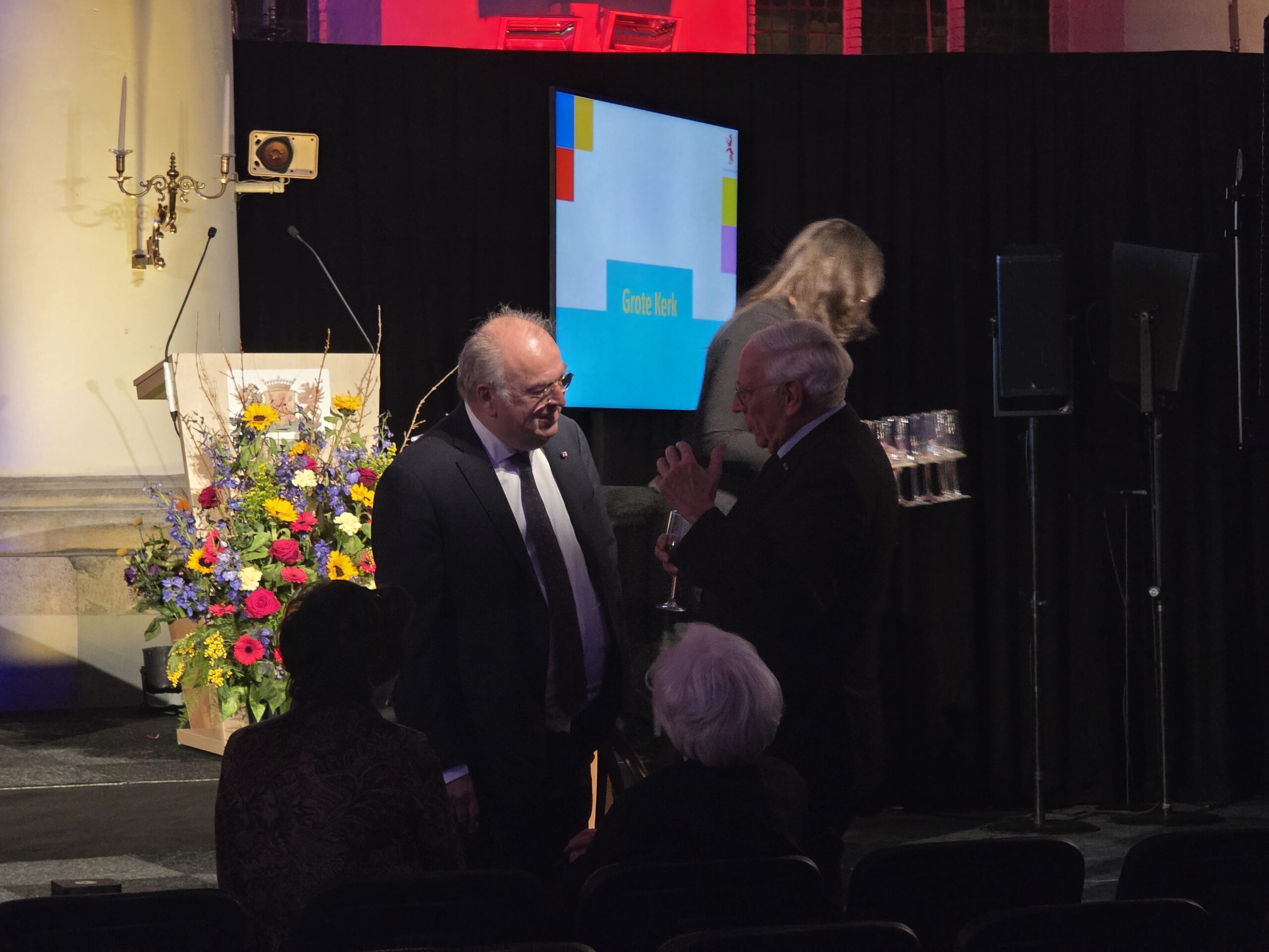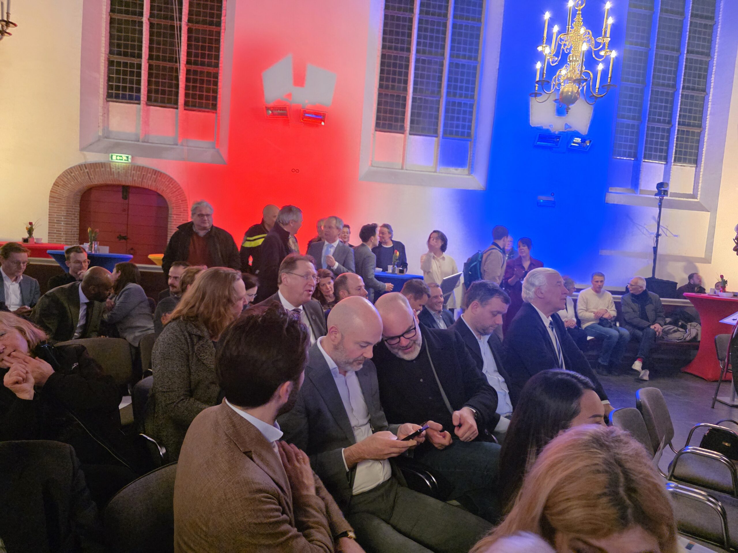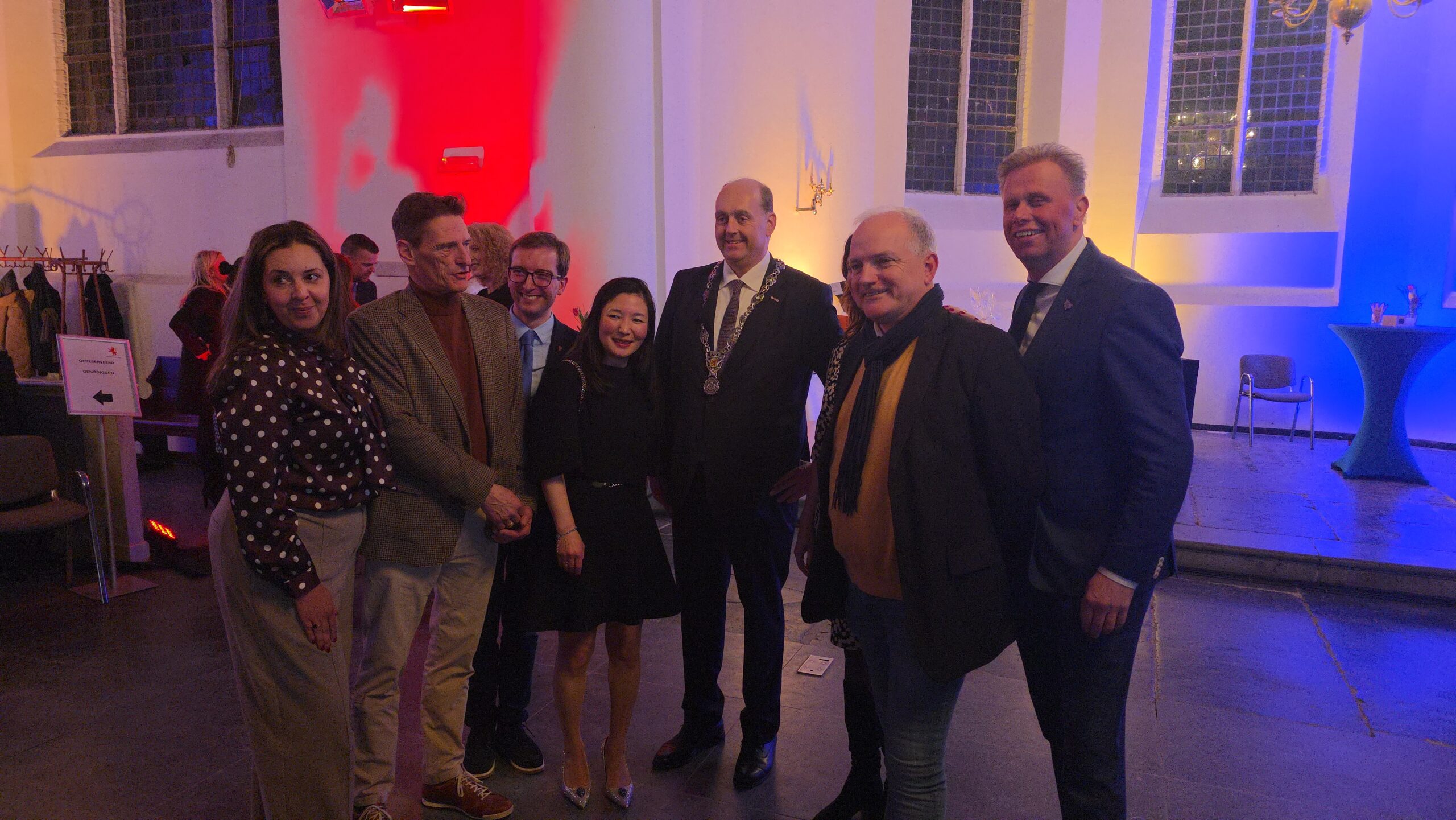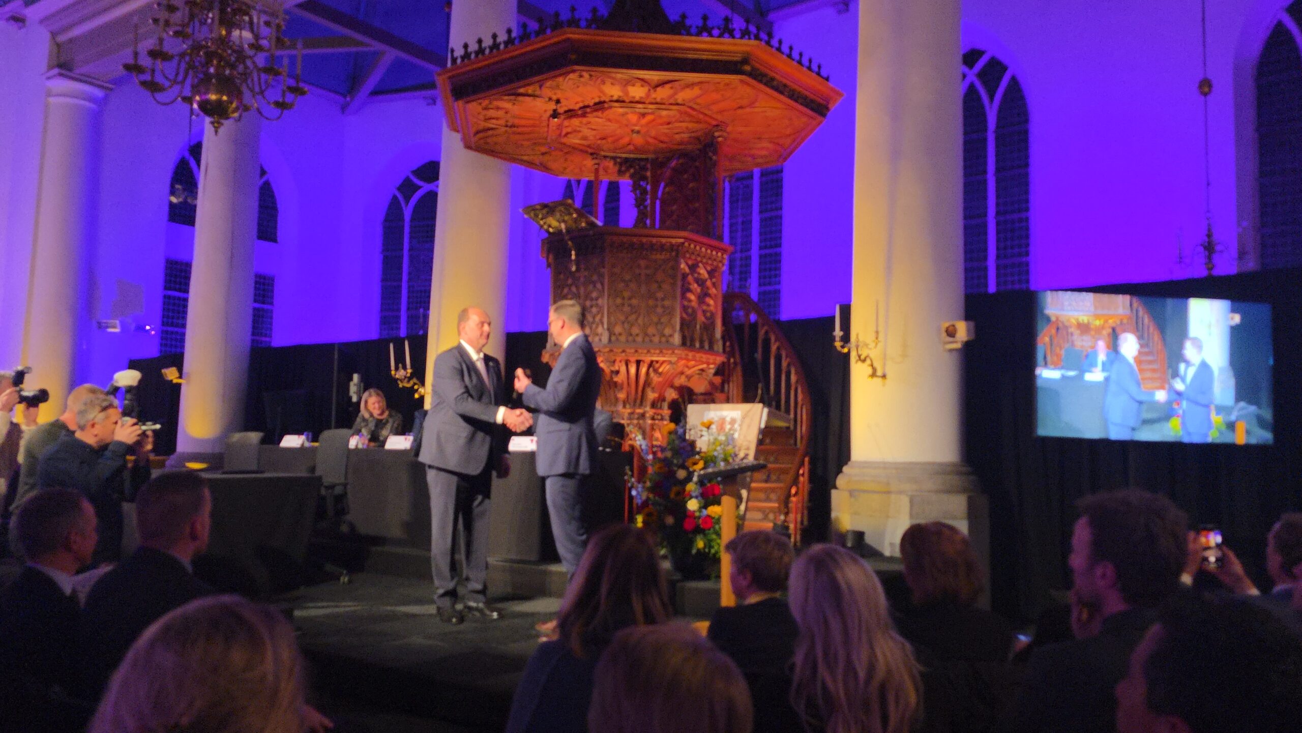Om de bijzondere gebeurtenis bij te wonen was een hele delegatie uit Leiden afgereisd naar Vlaardingen. Daaronder en flink deel van de VVD-fractie, oud-wethouders Paul Laudy en Rogier van der Sande en ook oud-wethouder Yvonne van Delft die sinds begin deze maand directeur is van Stroomopwaarts. Dat is het reïntegratiebedrijf van onder andere Vlaardingen.
