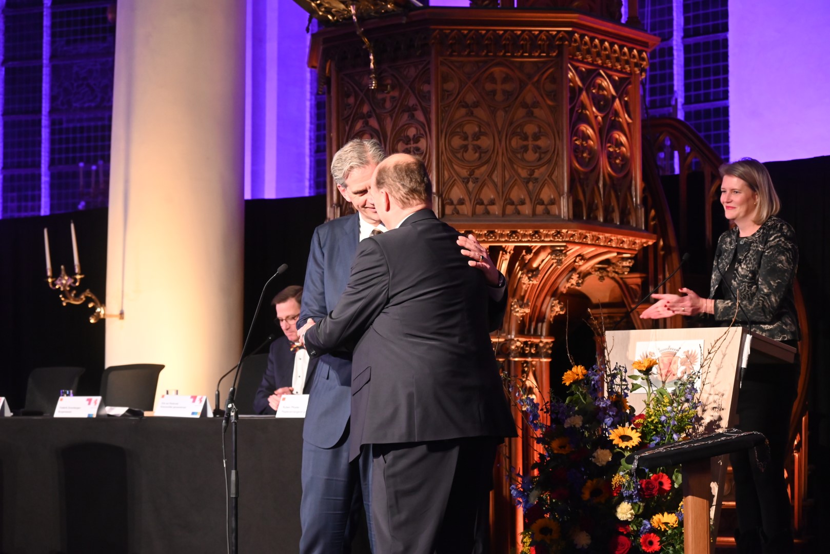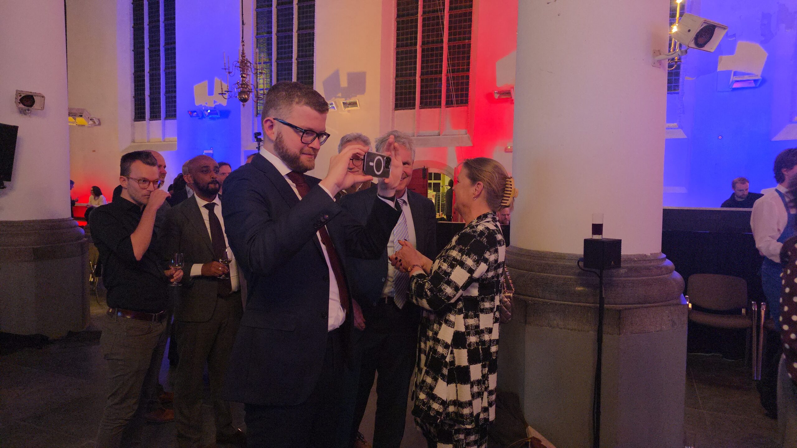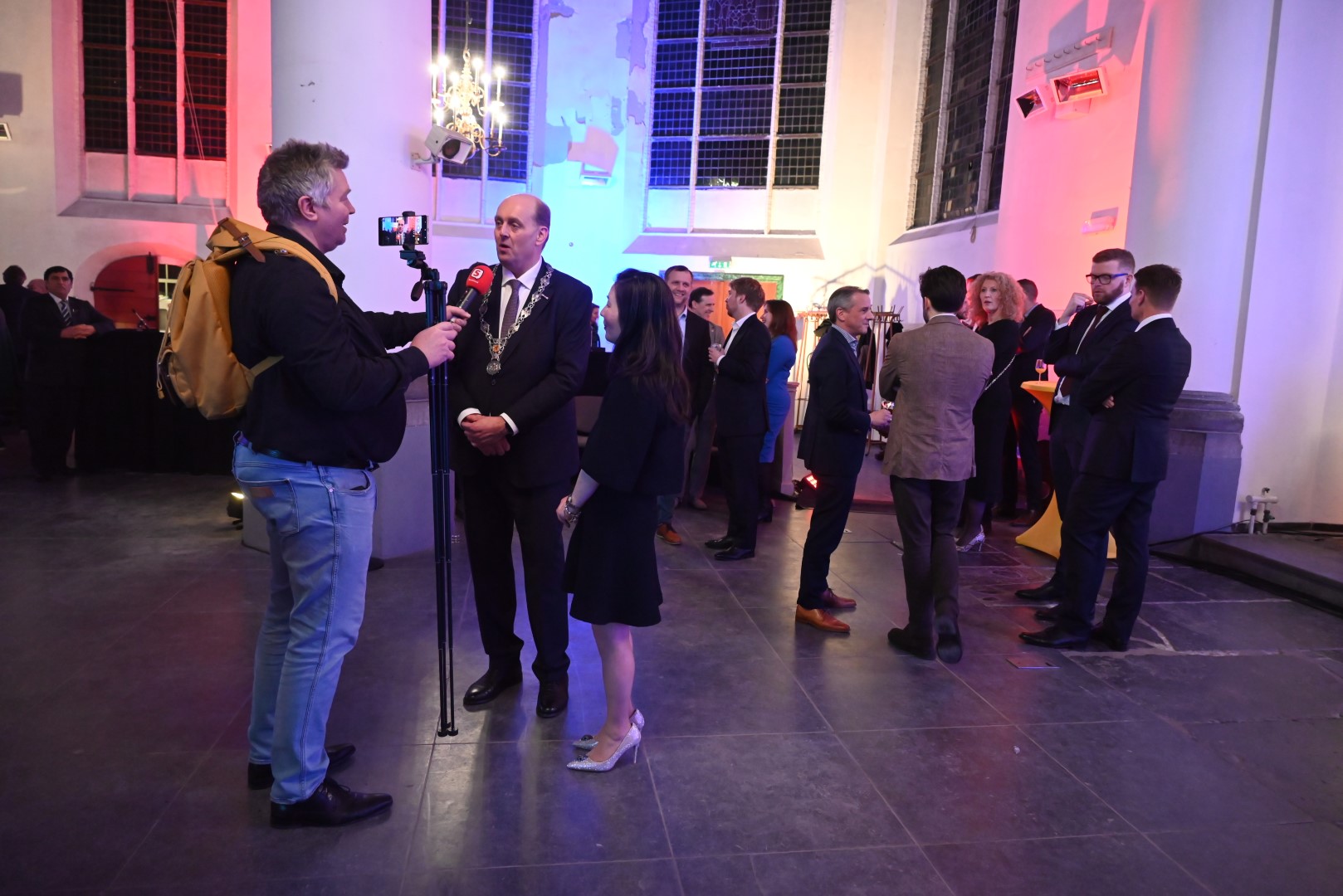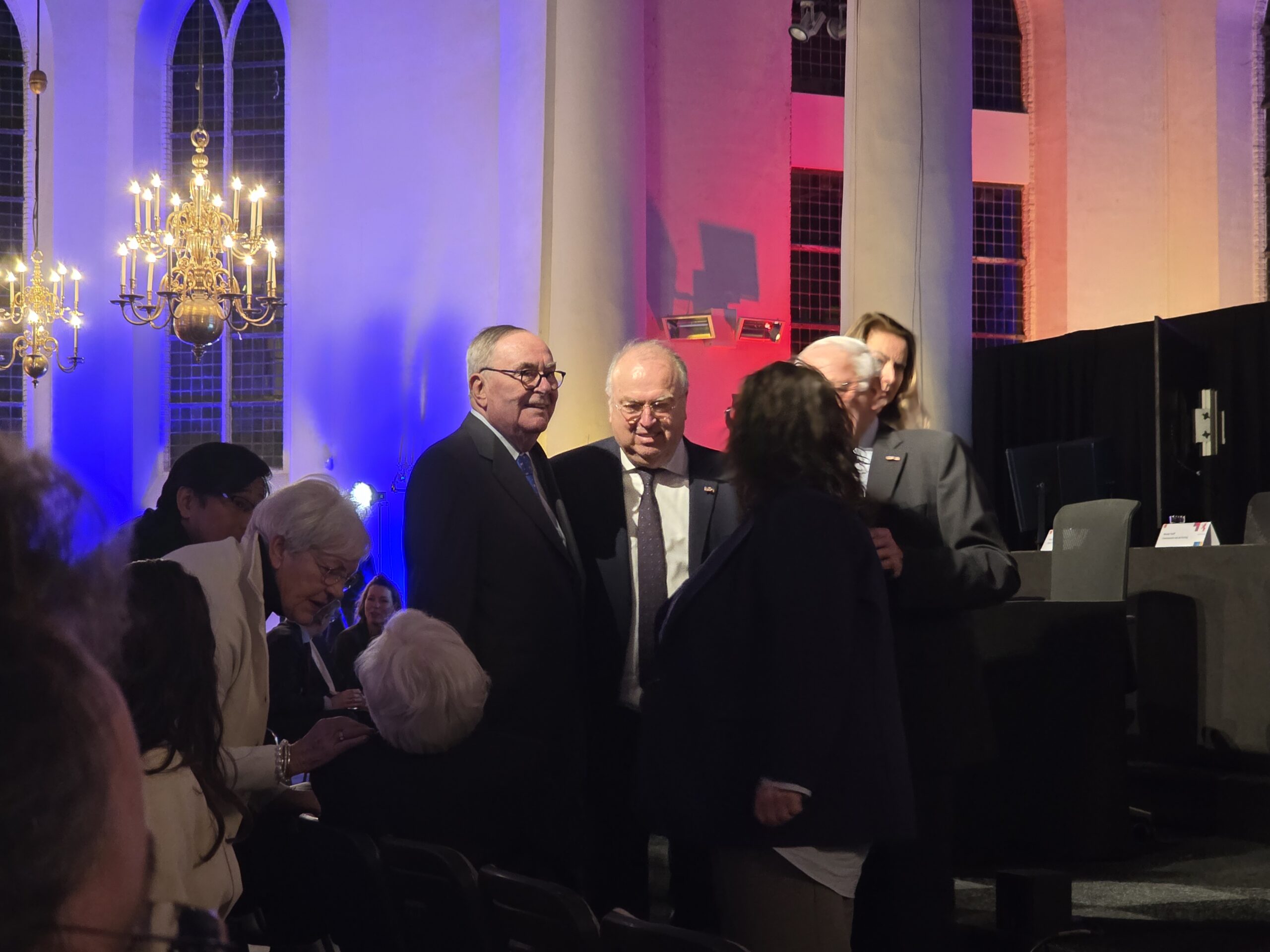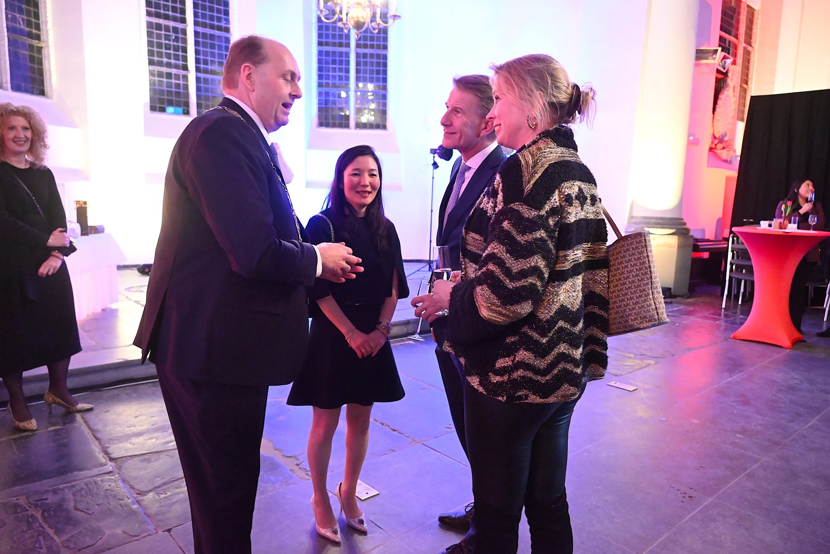 Om de bijzondere gebeurtenis bij te wonen was een hele delegatie uit Leiden afgereisd naar Vlaardingen. Daaronder en flink deel van de VVD-fractie, oud-wethouders Paul Laudy en Rogier van der Sande en ook oud-wethouder Yvonne van Delft die sinds begin deze maand directeur is van Stroomopwaarts. Dat is het reïntegratiebedrijf van onder andere Vlaardingen.