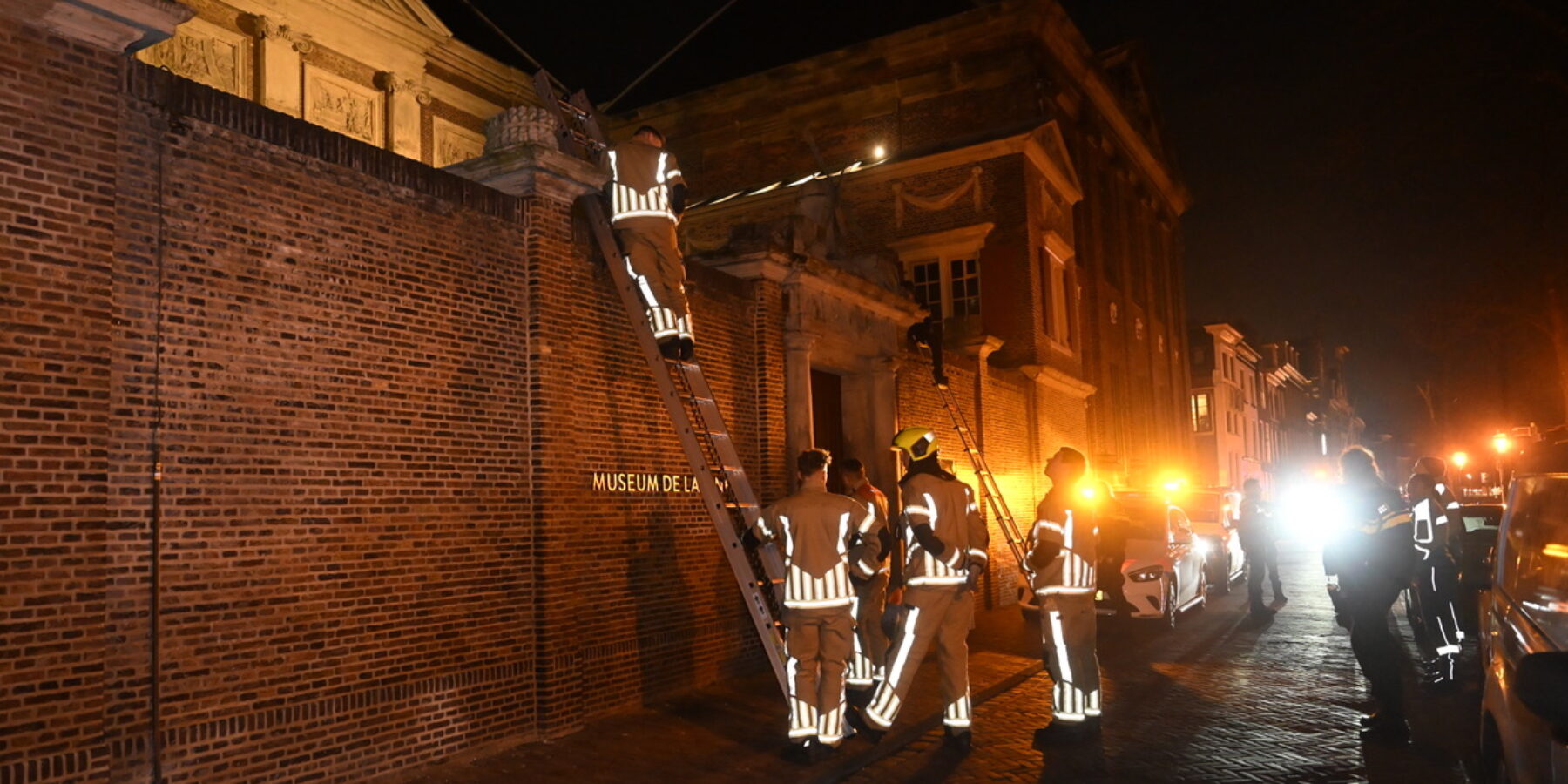 Politie en brandweer zijn direct ter plaatse gekomen. Omdat de poort naar de binnenplaats van het museum op slot zat, is de politie met een ladder over de muur geklommen.