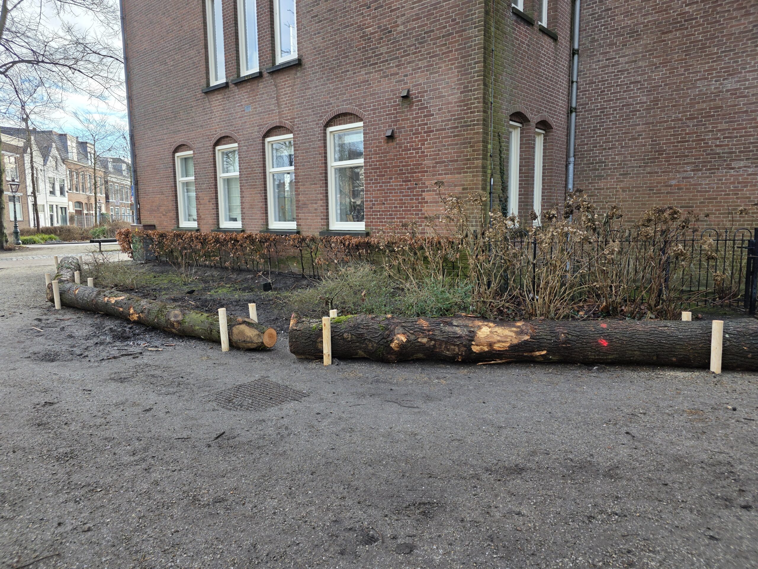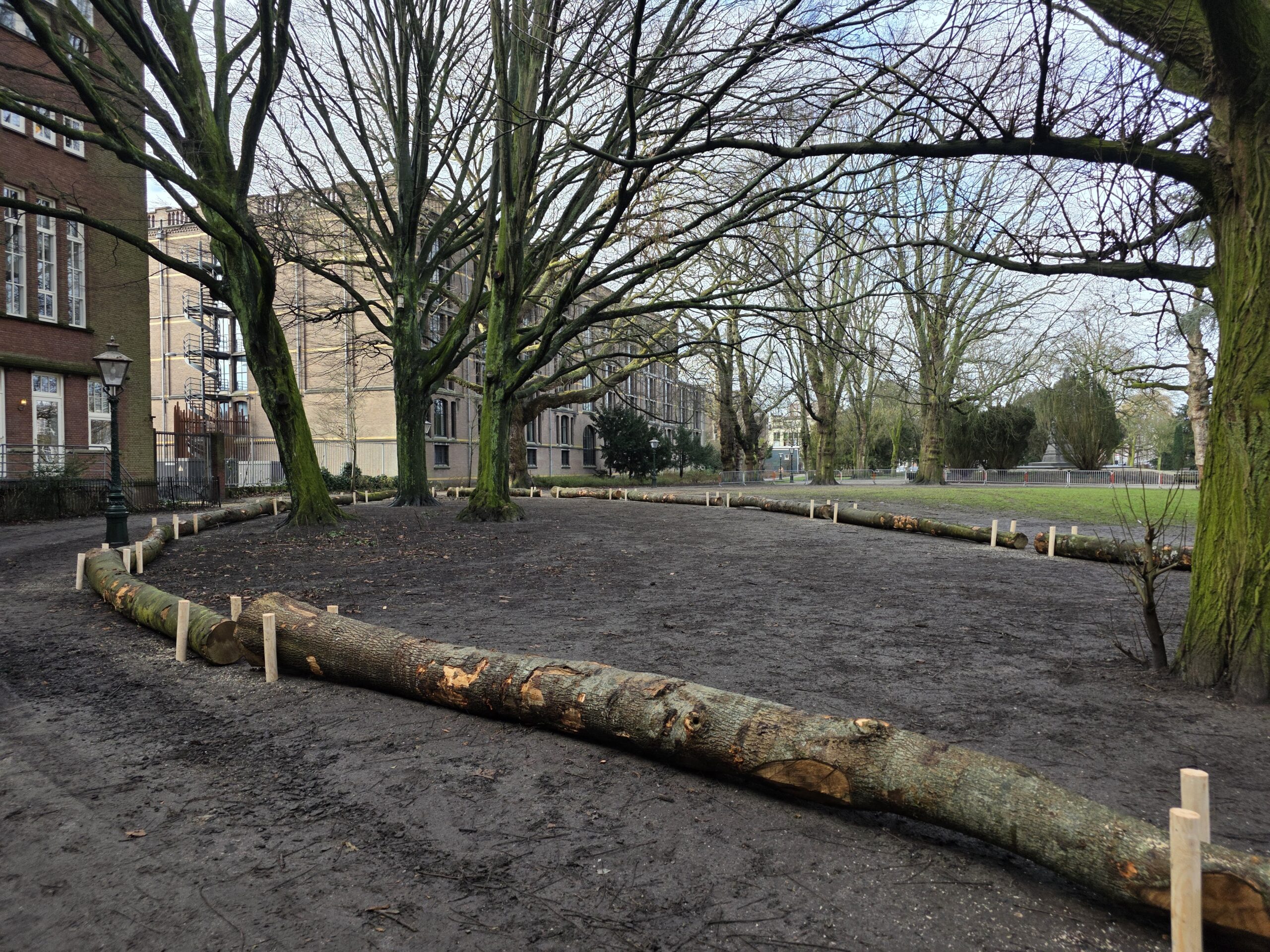 “Met de Vrienden van het Werfpark is een ronde door het park gelopen om te onderzoeken hoe het erbij ligt. Samen is gekeken wat er verbeterd kan worden”, laat een woordvoerder van de gemeente Leiden desgevraagd aan Sleutelstad weten. “Samen werd geconstateerd dat bezoekers van het park en honden door enkele plantvakken lopen. Om dat te minimaliseren worden er boomstammen omheen gelegd.”