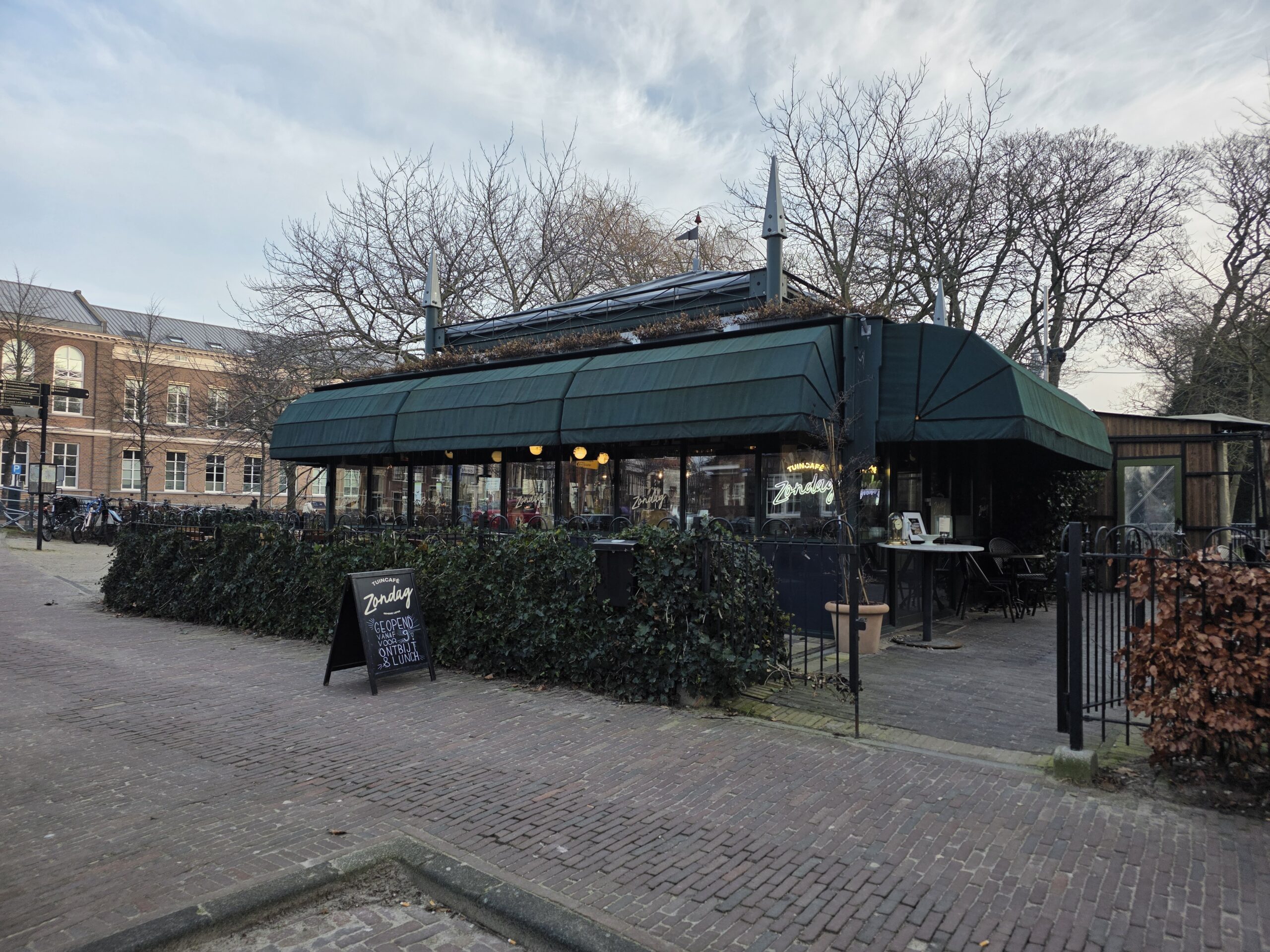 De overkapping van het terras van Tuincafé Zondag moet weg. Bob Meijer van de Brasseriegroep Leiden die eigenaar is van het paviljoen in het Van der Werfpark baalt er stevig van. “Creatief ondernemen mag niet in onze stad.”
