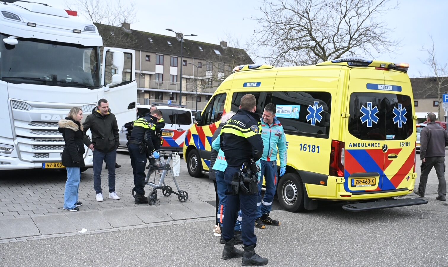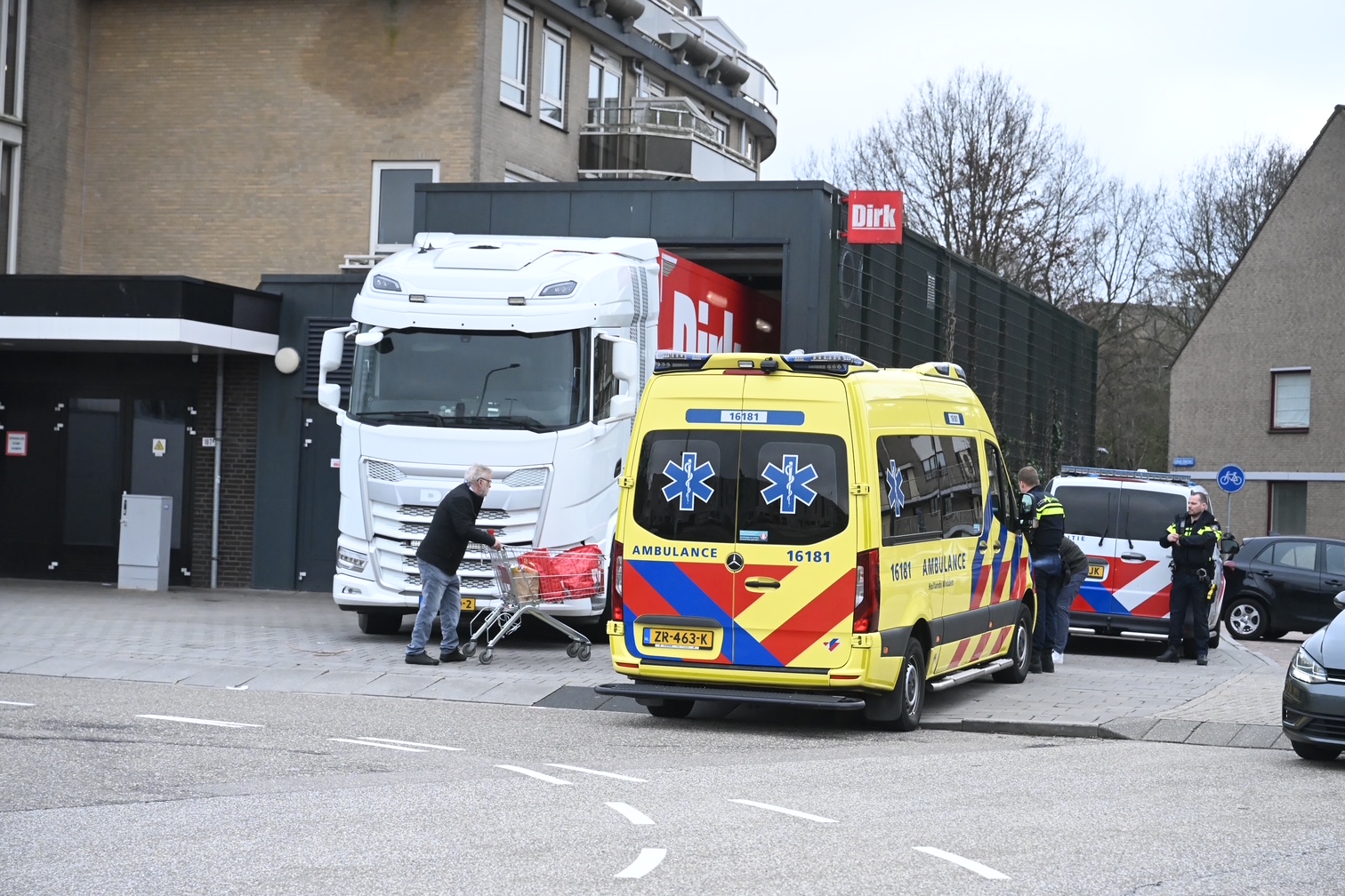 De vrachtwagen was aan het inparkeren bij de laad-en-loszone van supermarkt Dirk, Toen de bestuurder nog een stuk naar voren reed, werd de vrouw geraakt, die zich op dat moment in de dode hoek bevond.