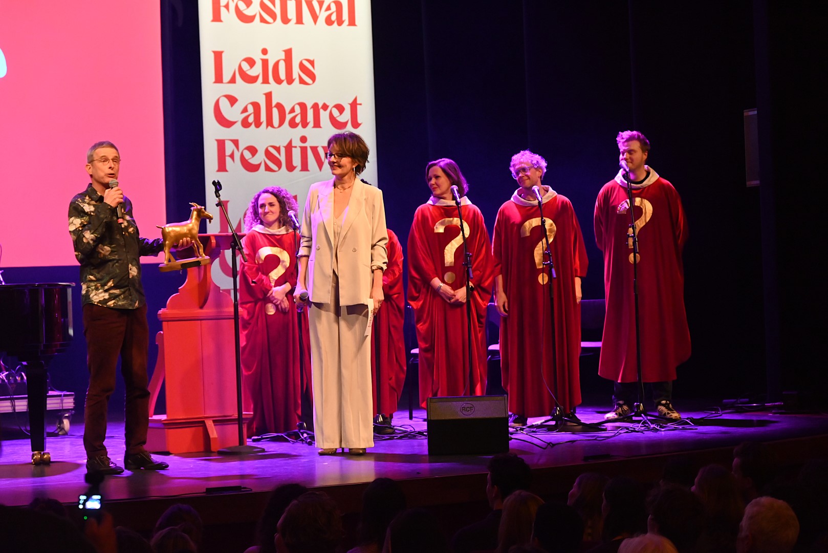 De presentatie was in handen van Sanne Wallis de Vries, die dertig jaar geleden zelf het Leids Cabaret Festival heeft gewonnen. Vóór het gastoptreden van Ode aan de Twijfelaar, kreeg zij van Lebbis (Hans Sibbel) de eerste Gouden Geit uitgereikt. Vanaf volgend jaar is de Gouden Geit de Juryprijs en wordt het Leids Cabaret Festival logo uitgebreid met een embleem van een geitje.