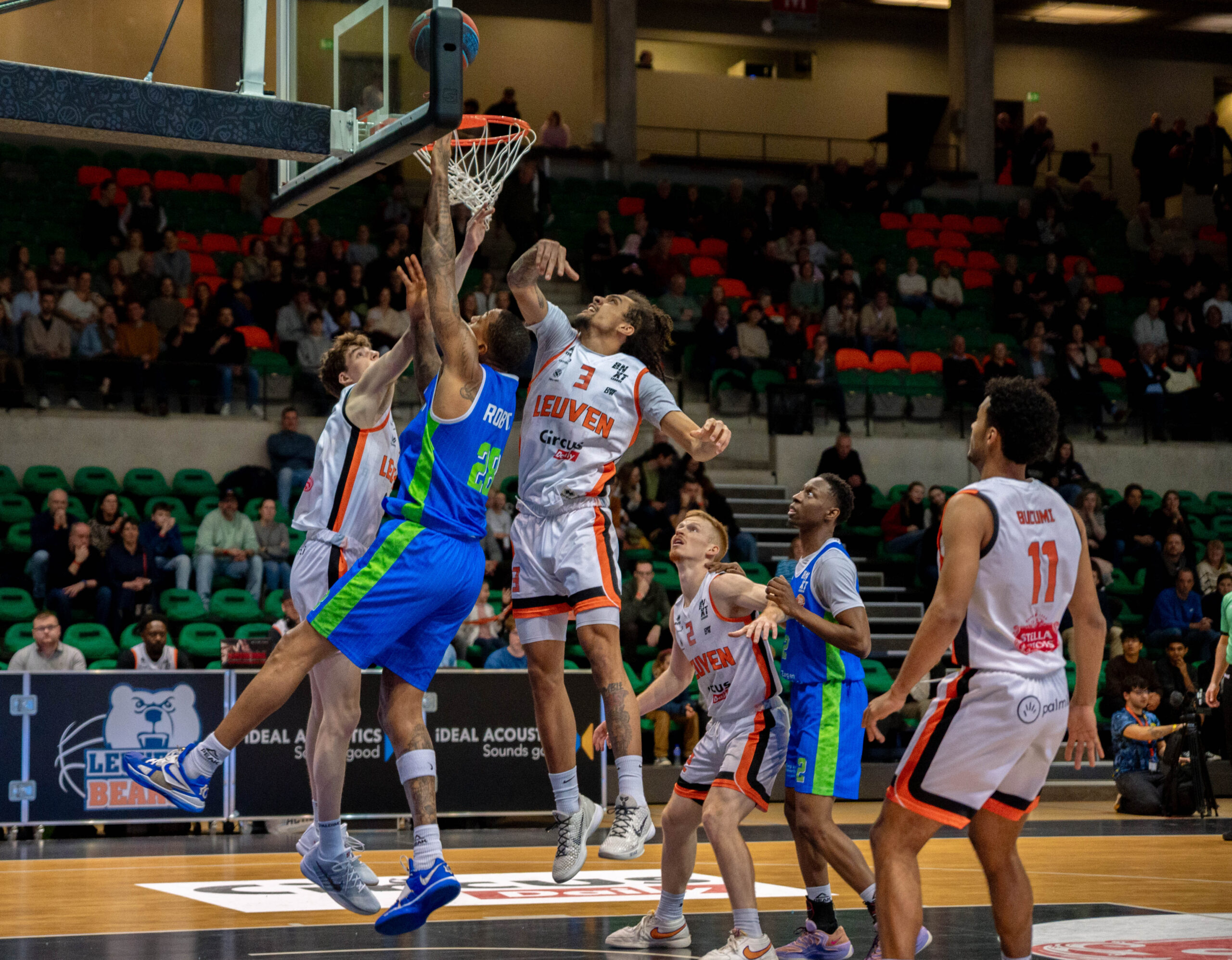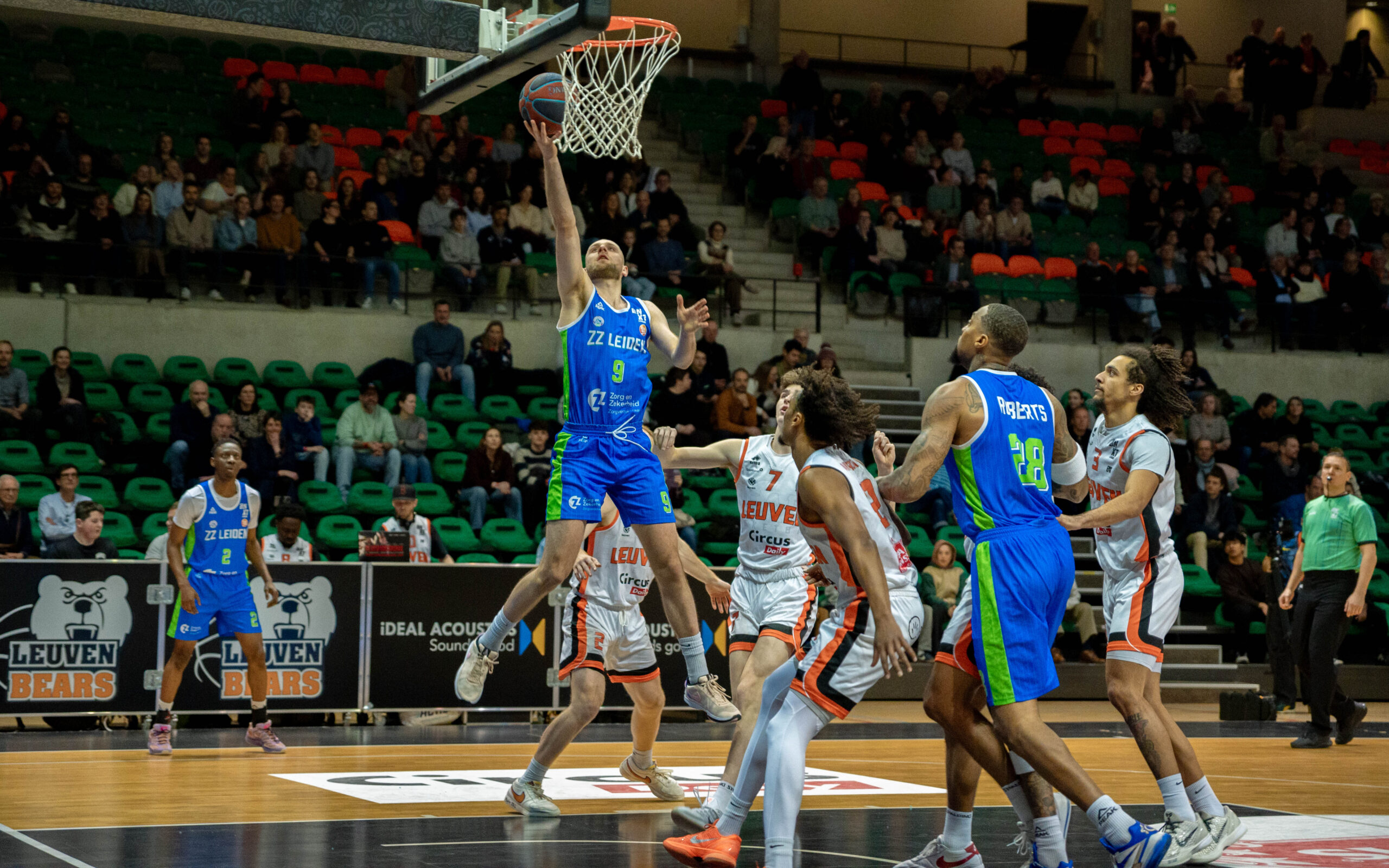 Dat zat er in Leuven echter niet in. Balverlies en zwakke schotpercentages gaven Leuven Bears alle gelegenheid om ZZ Leiden op afstand te houden. Zeker toen Roel Bucumi ook nog een serie driepunters door de ring liet glijden. Zo liep het verschil toch weer op naar 18 punten: 85-67. Jibbe Sicking, die net als Stan van den Elzen, Lucas Kruithof en Sam Huurman bij de laatste 24 is gekozen voor de Orange Lions, pakte in de slotfase nog een paar puntjes mee. Niettemin ging de winst met 90-73 naar de Belgen. ZZ Leiden moet zich snel herstellen, want komende woensdag staat er alweer een thuiswedstrijd tegen Brussels Basketball op het programma.