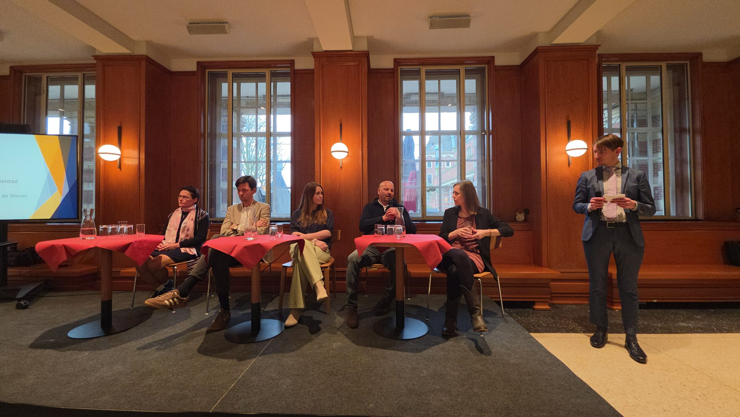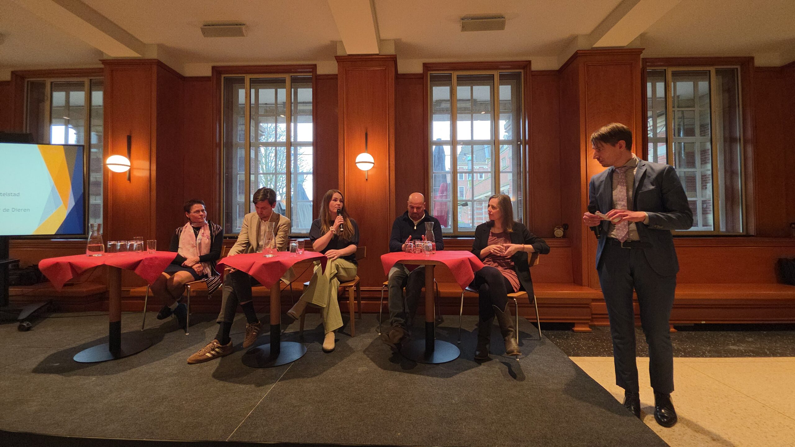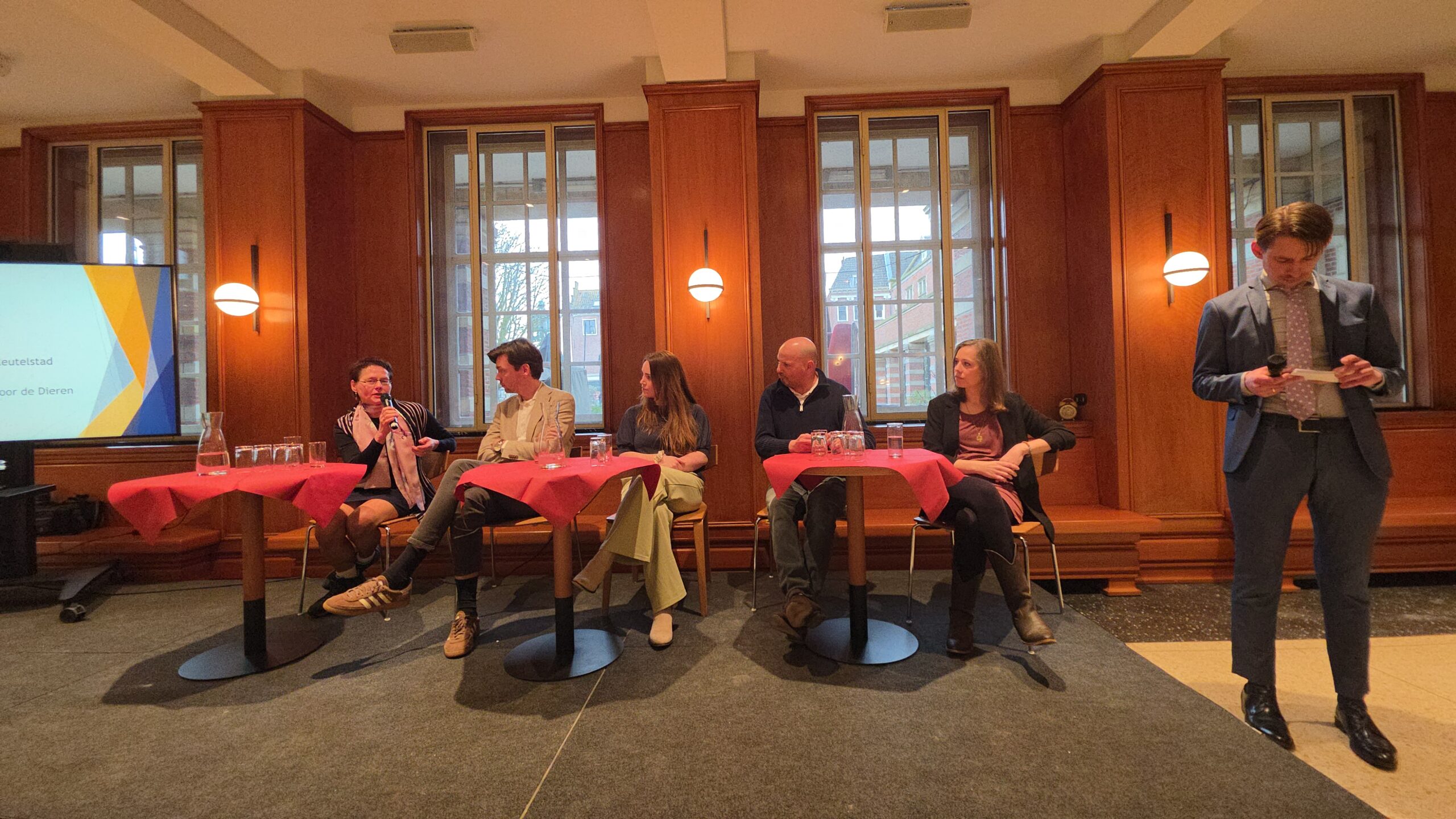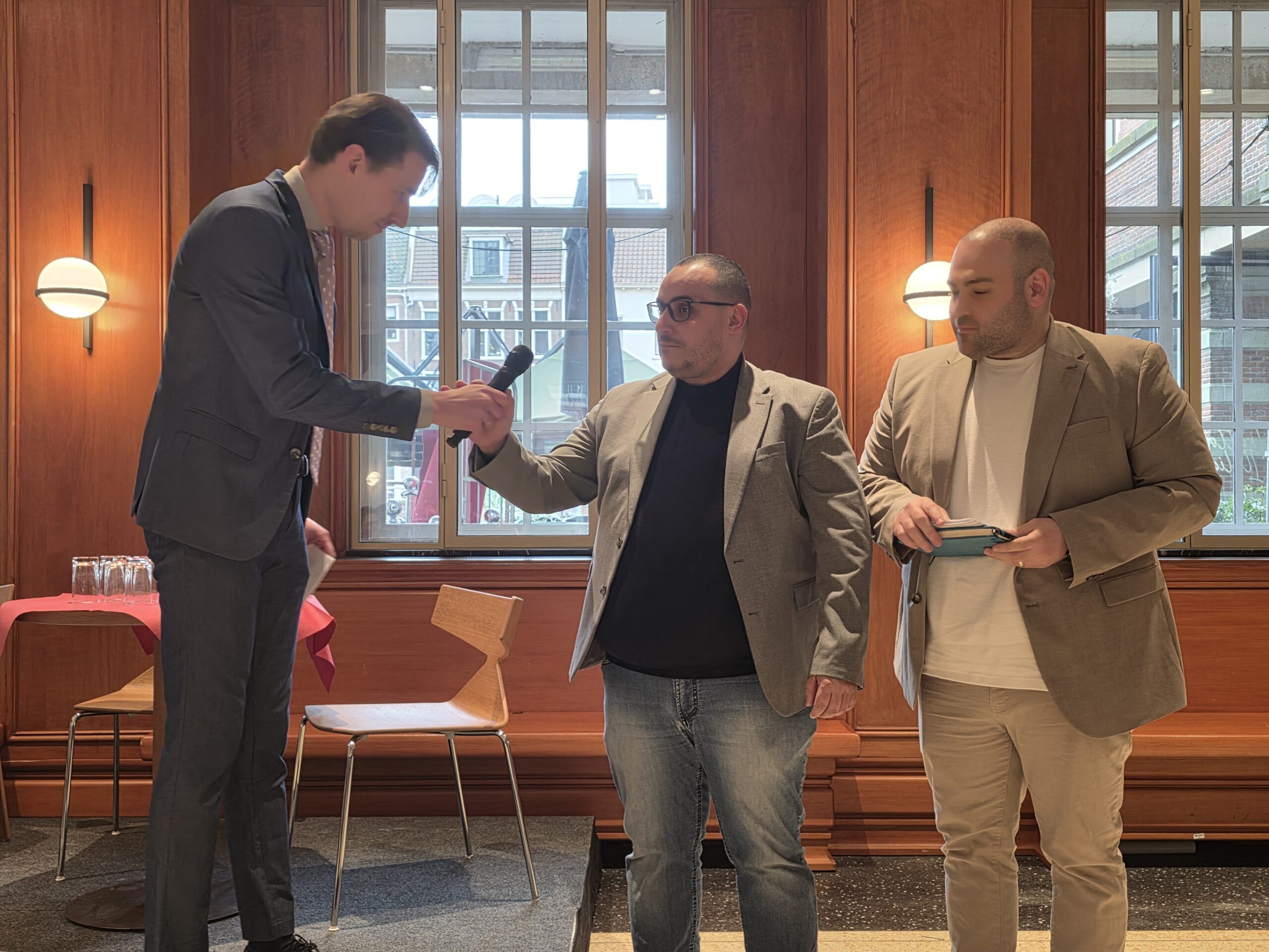 Nadat voorzitter Hassan Elwali van Islamitisch Centrum Imam Malik en voorzitter Fatih Yilmaz van de Stichting Fatih Leiden de aanwezigen welkom hadden geheten gingen de partijen onder leiding van Manders met elkaar in debat. Of eigenlijk in gesprek, want het ging er braaf aan toe. Dat kwam ook door de opzet, waarbij de partijen steeds met vijf tegelijk achter tafeltjes zaten en één microfoon deelden die werd doorgegeven. “Aan aan het einde kwam er toch wel echt een beetje vuur”, blikt mede-organisator Fatih Yilmaz na afloop tevreden terug.