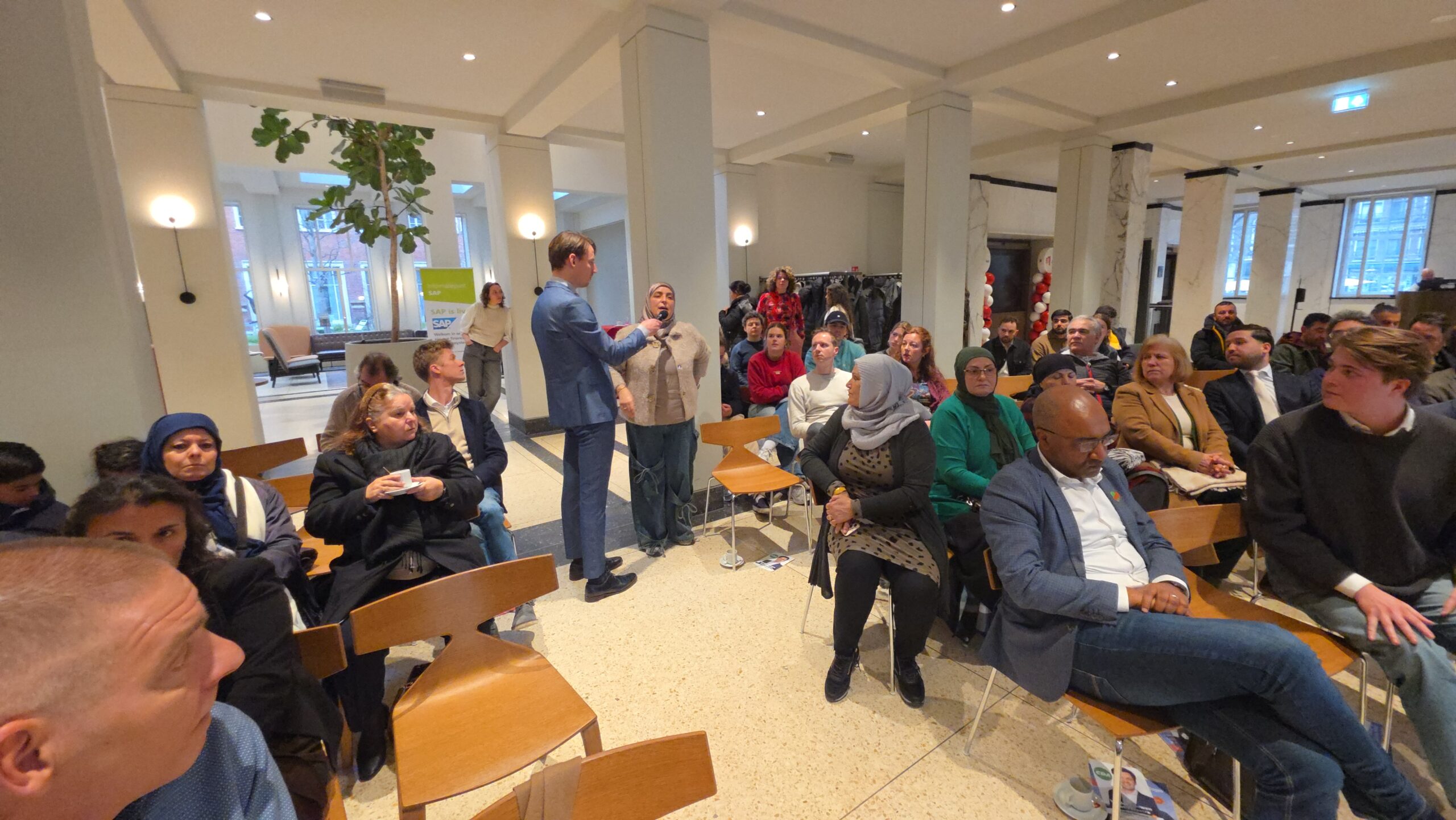 Naast stellingen die meer specifiek gingen over de migratie-achtergrond van de meeste aanwezigen, waren er ook veel onderwerpen die voor iedereen gelden. Sociale woningbouw, lokale lasten en veiligheid op straat bijvoorbeeld. Meer op de achterban van de organisatoren gericht waren stellingen over discriminatie op de Leidse woningmarkt. Dat komt nog steeds veel voor, herkent ook Julius Terpstra die aanwezig was als lijsttrekker van het CDA, maar als wethouder wonen het nodige op dat vlak is tegen gekomen. Ook kansengelijkheid is een thema dat blijvend aandacht verdient.