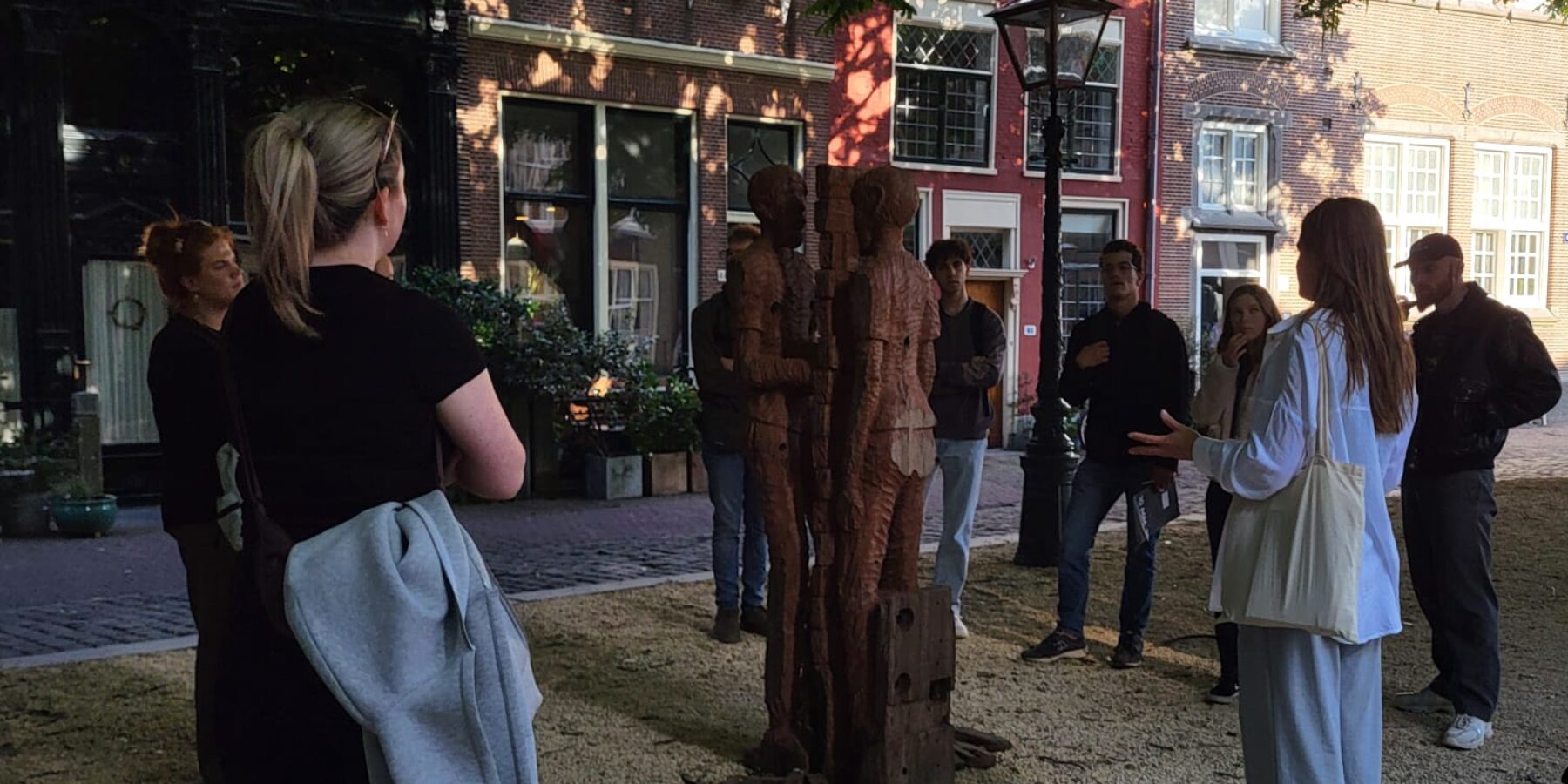 Naast de gespreksgroepen organiseert het Chaos Atelier ook workshops, vaak in samenwerking met kunstenaars en culturele initiatieven in de stad. Creatieve expressie speelt daarin een belangrijke rol. “Voor veel mensen is daar in studie of werk weinig ruimte voor, terwijl het juist heel waardevol kan zijn”, legt Van der Knaap uit. Een voorbeeld is een schrijfworkshop met dichter Charlotte de Beus, rondom Beelden in Leiden op de Hooglandse Kerkgracht. “We hebben toen stoelen geleend bij BplusC en zijn tussen de beelden gaan zitten om te gaan schrijven.”