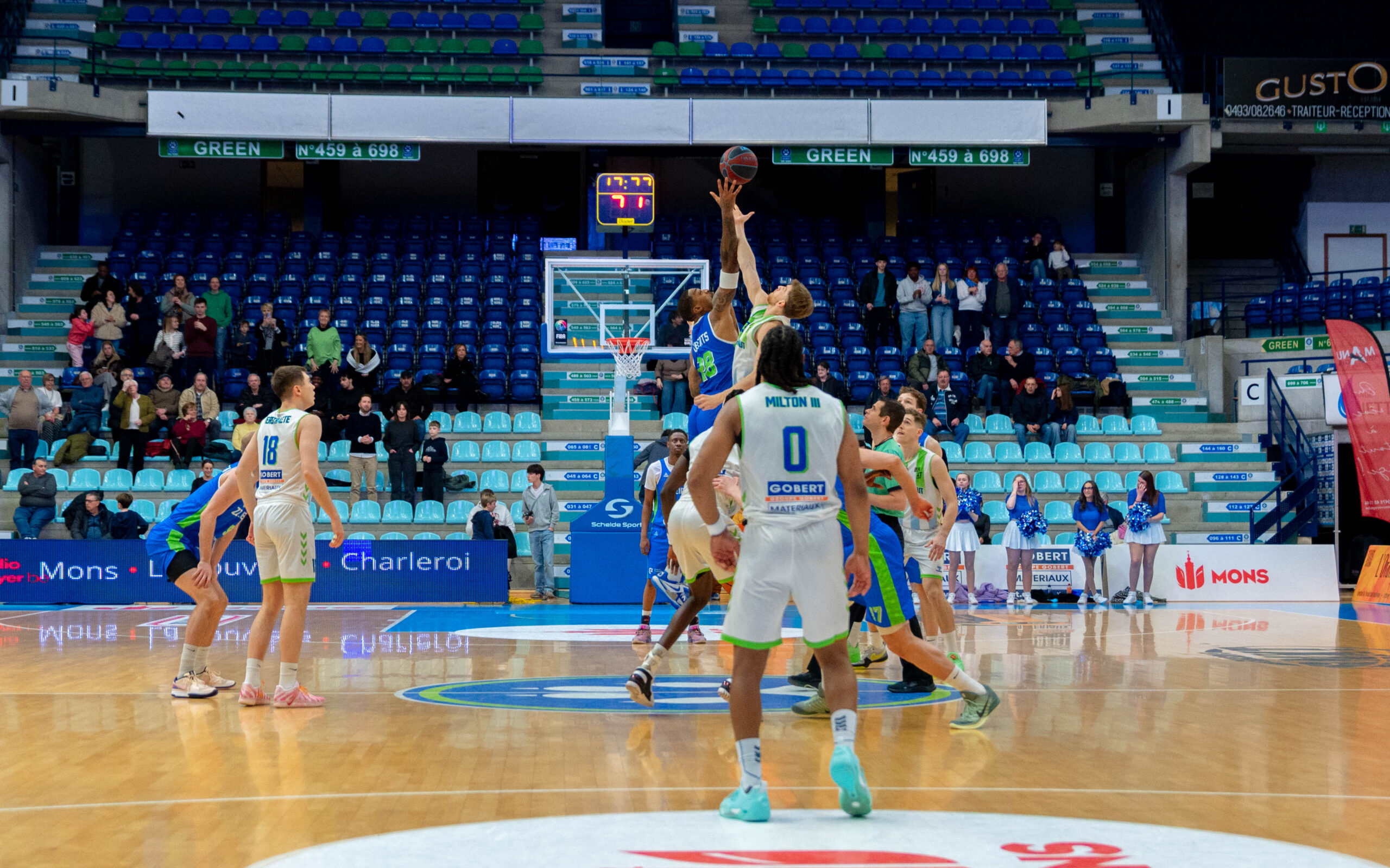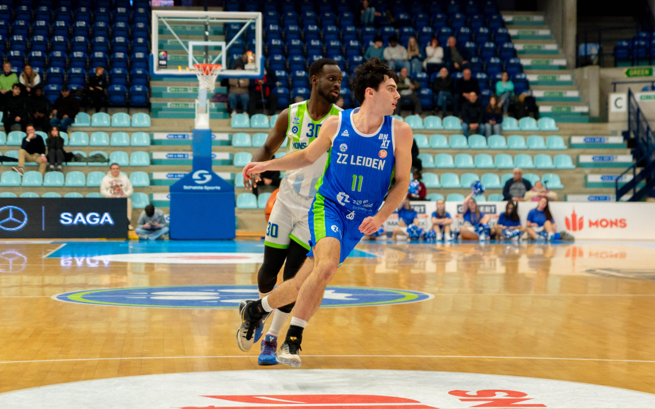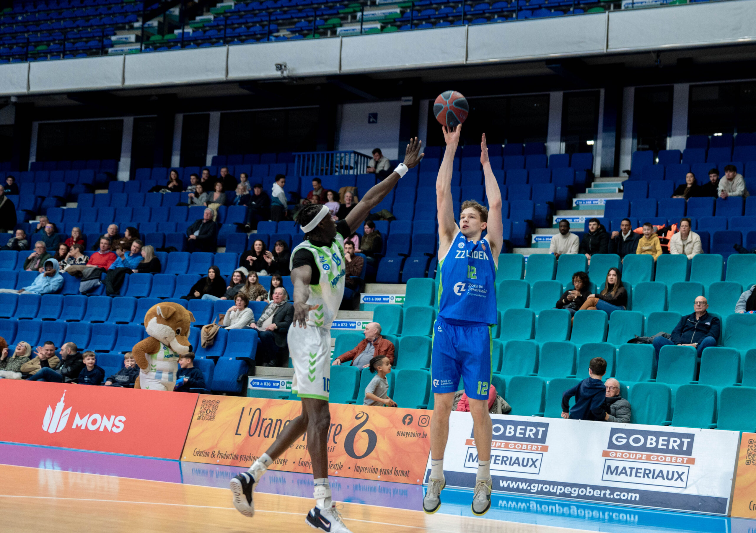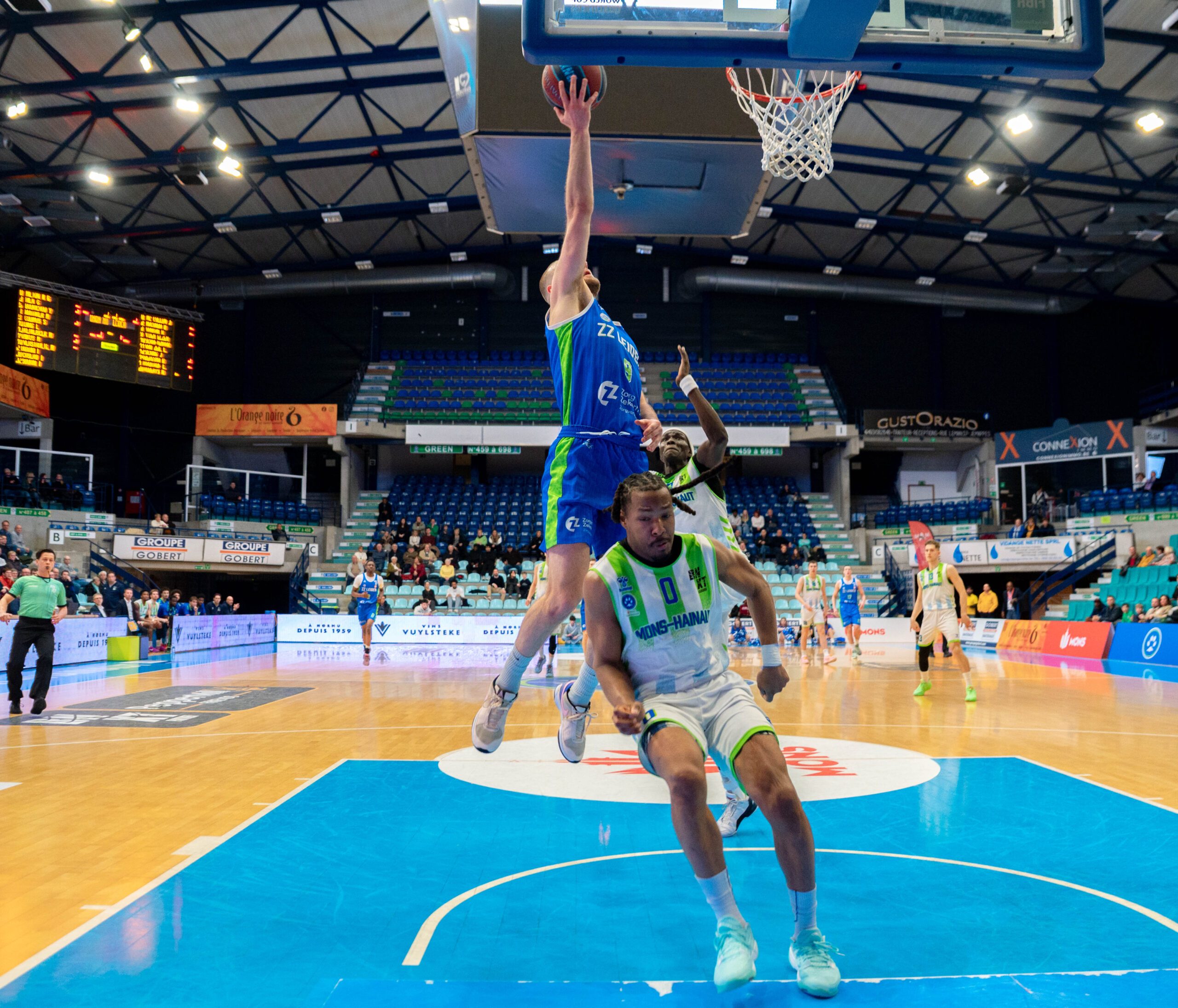 ZZ Leiden begon nog goed aan de wedstrijd. Via een dunk van Dimitri Maconda en een driepunter van Jibbe Sicking nam de Leidse ploeg binnen anderhalve minuut een 1-5 voorsprong. De Belgische laagvlieger trok zich daar niets van aan. Met name Garrett Hien ging in het eerste kwart voorop voor Union Mons-Hainaut. Vooral van afstand deed de Amerikaan goede zaken.