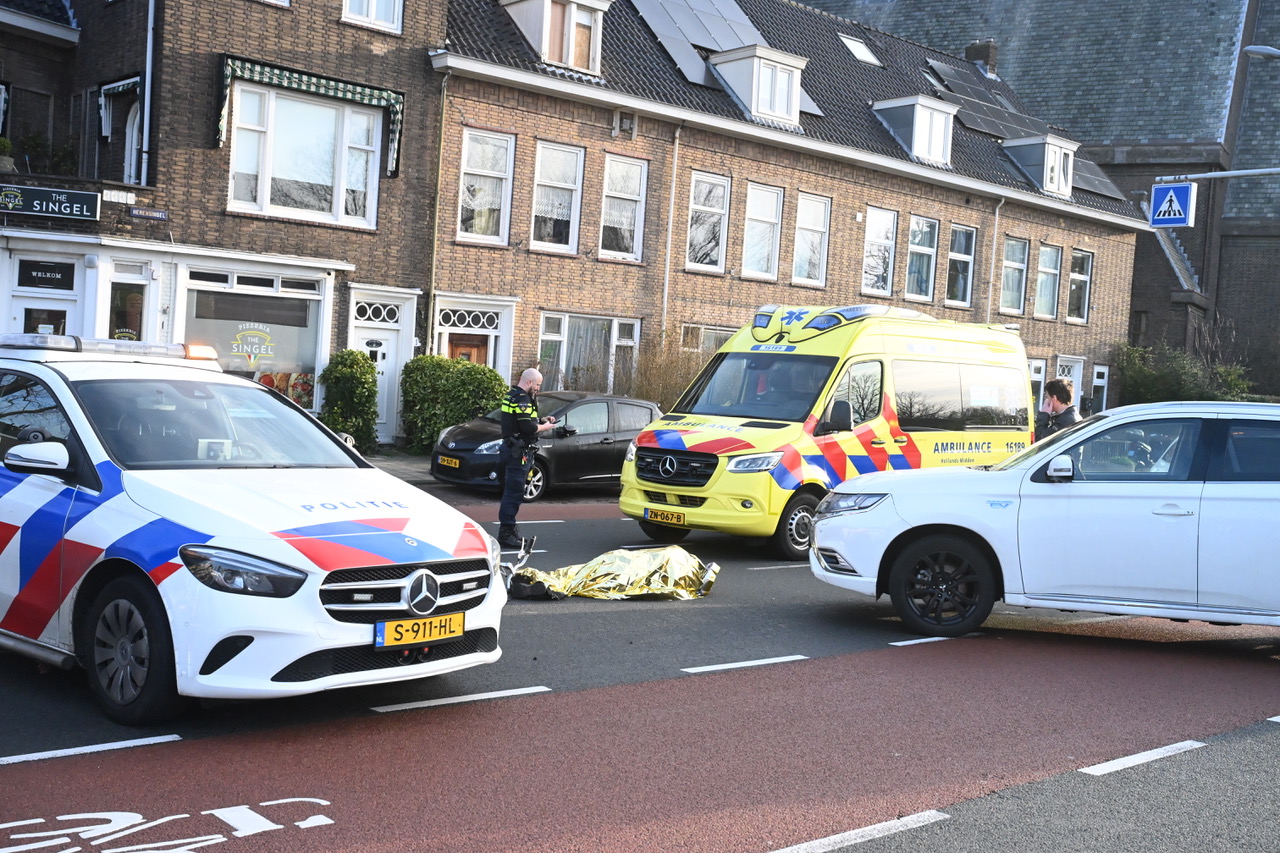 Een fietser is donderdagmorgen in botsing gekomen met een auto. Dat gebeurde op het kruispunt van de Herensingel en de Oude Herengracht in Leiden.