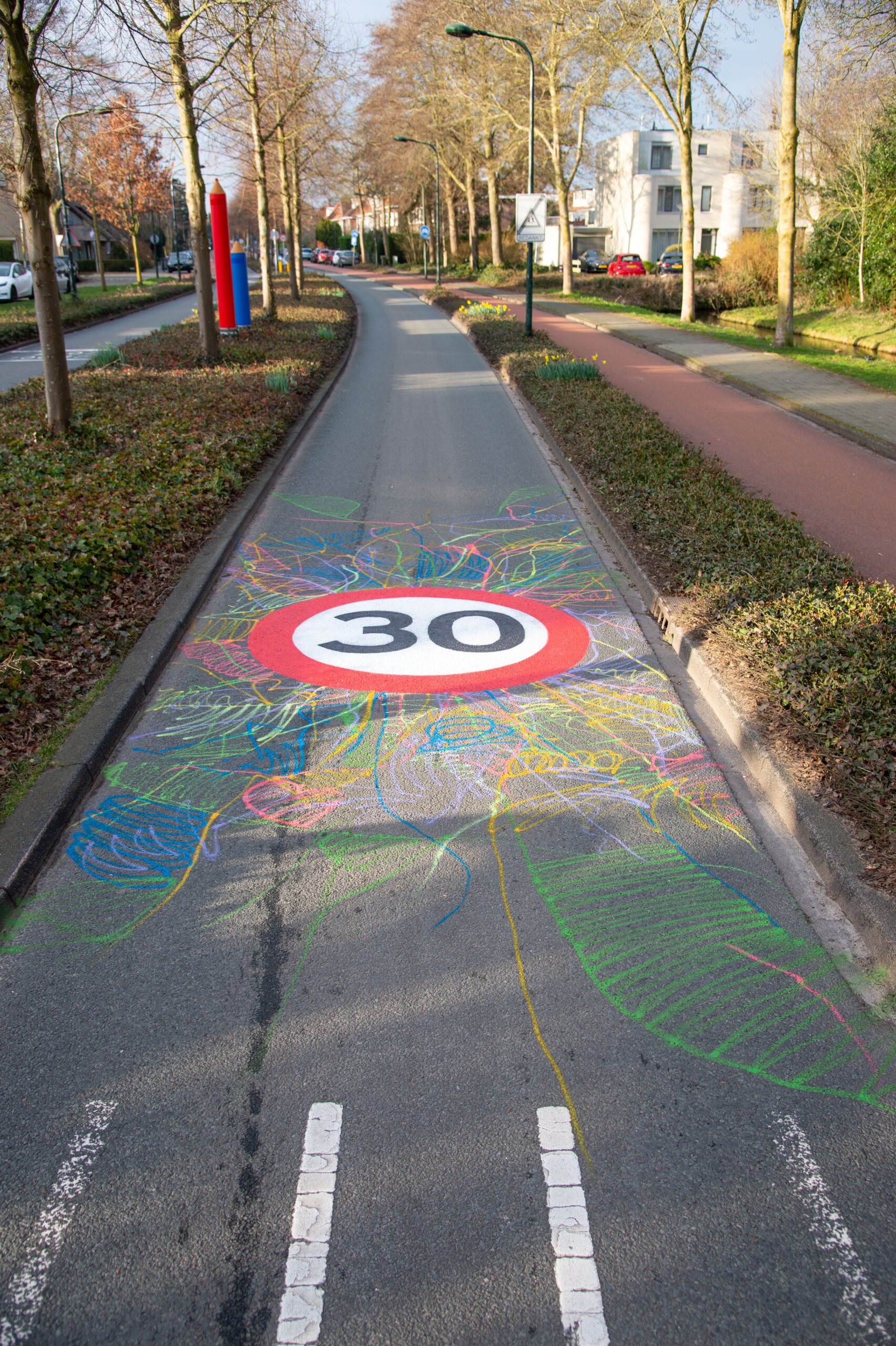 Hoewel de snelheid in bijna het hele dorp omlaag gaat, blijven vijf hoofdwegen een ontsluitende functie houden voor het doorgaande verkeer. Op deze wegen blijft de limiet vijftig kilometer per uur. Om de nieuwe snelheid onder de aandacht te brengen, start de campagne ‘Dit is ook onze straat’. Naast posters en spandoeken verschijnen er opvallende straattekeningen op het wegdek. Na de primeur op de Deijlerweg volgen volgende week de Van Zuylen van Nyeveltstraat, de Backershagenlaan en de Lange Kerkdam.