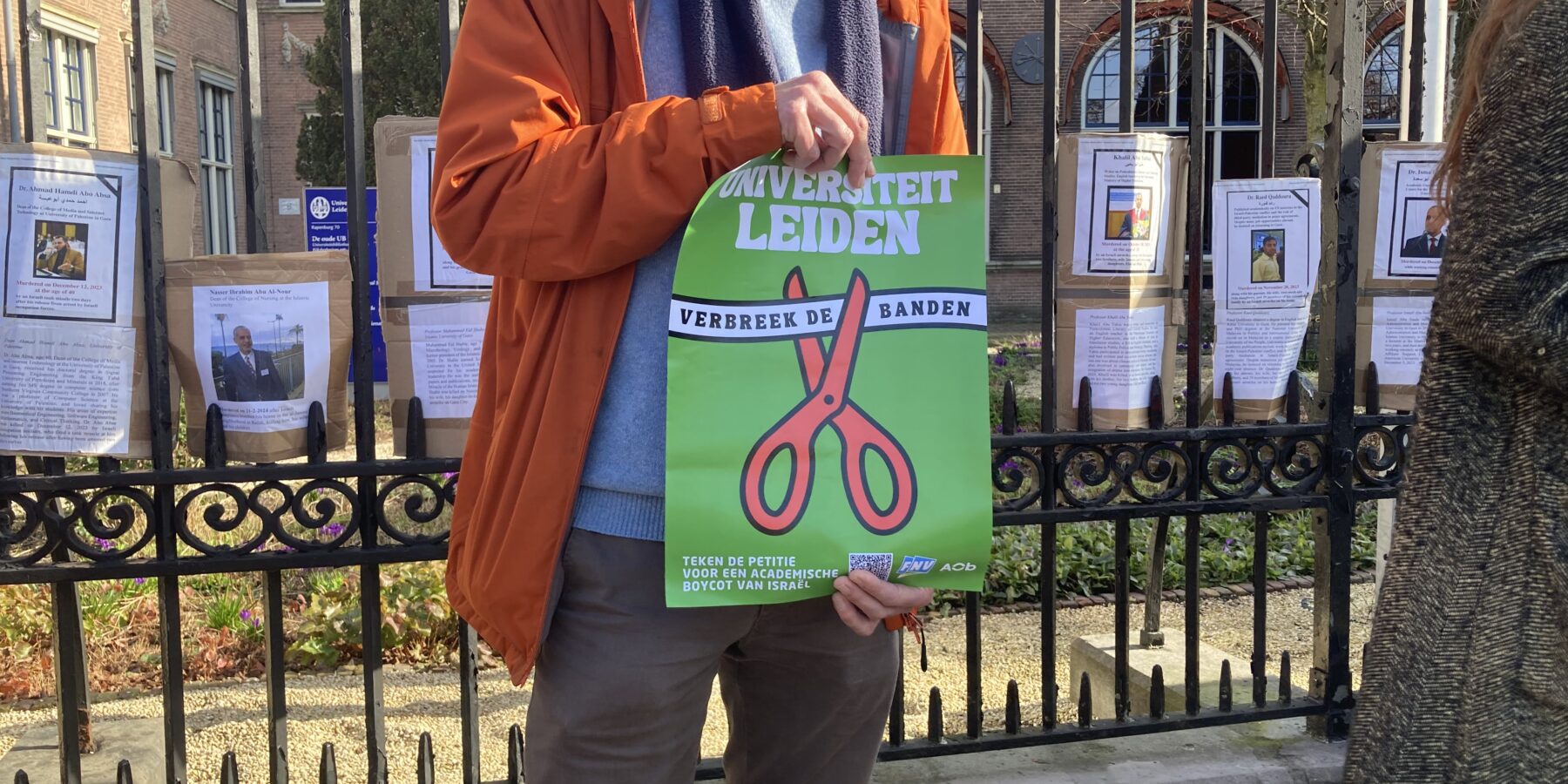 De actiegroep bestaat uit docenten en wetenschappers van de universiteit. Universitair docent Janna Houwen is een van de activisten die in gesprek ging met het CvB. “Wij zijn uitgenodigd door Luc Sels, de nieuwe bestuursvoorzitter, om te komen praten over het verbreken van de banden met Israël. Wij van Leiden Scholars for Palestine vinden dat we er erg lang op moeten wachten, het vorige bestuur heeft al twee jaar geleden belooft om een commissie hiervoor op te richten, wat vervolgens een jaar duurde. Wij wachten nu nog steeds op besluiten.”