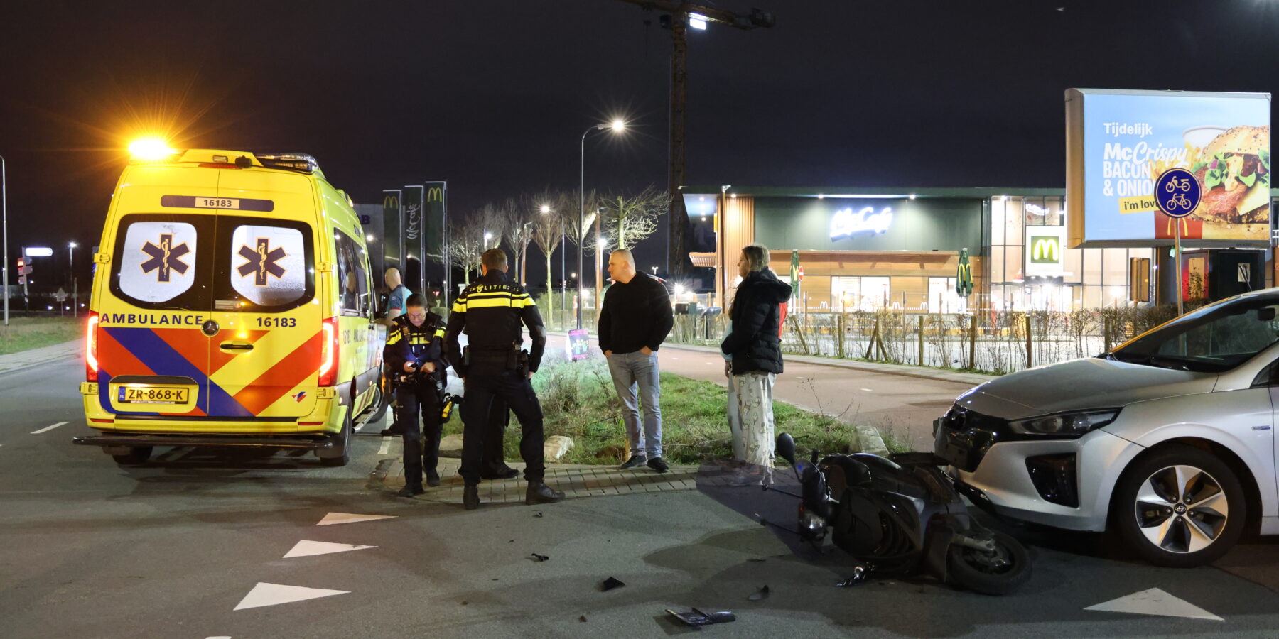 De berijder van de scooter kwam ten val en werd nagekeken in de ambulance. Het is niet bekend of het slachtoffer ook naar het ziekenhuis is overgebracht.