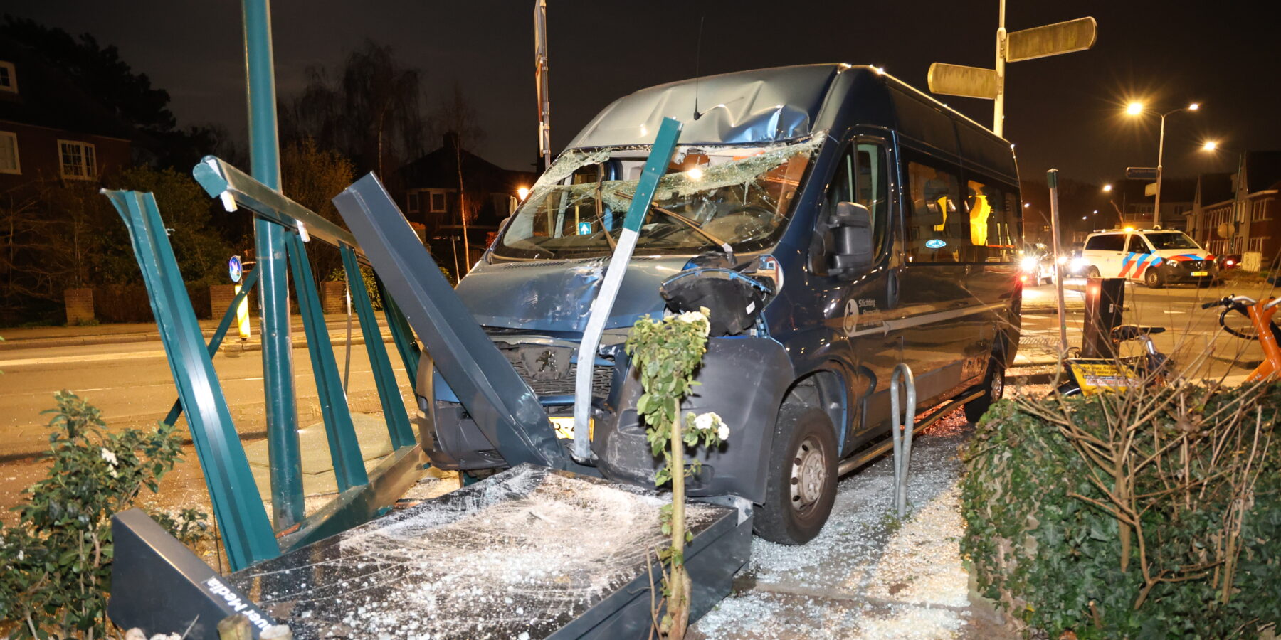 Een flink eenzijdig ongeluk op de Rhijngeesterstraatweg in Oegstgeest zorgde dinsdagavond voor een ravage. De bestuurder van een rolstoelbus verloor door onbekende oorzaak de macht over het stuur en reed daarbij tegen een bushokje aan. Het bushokje is daarbij vernield.