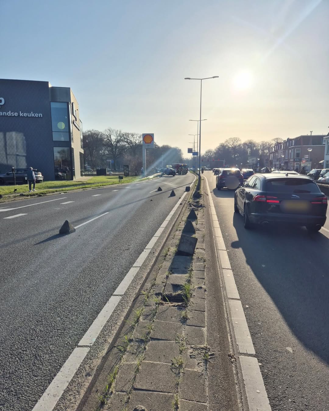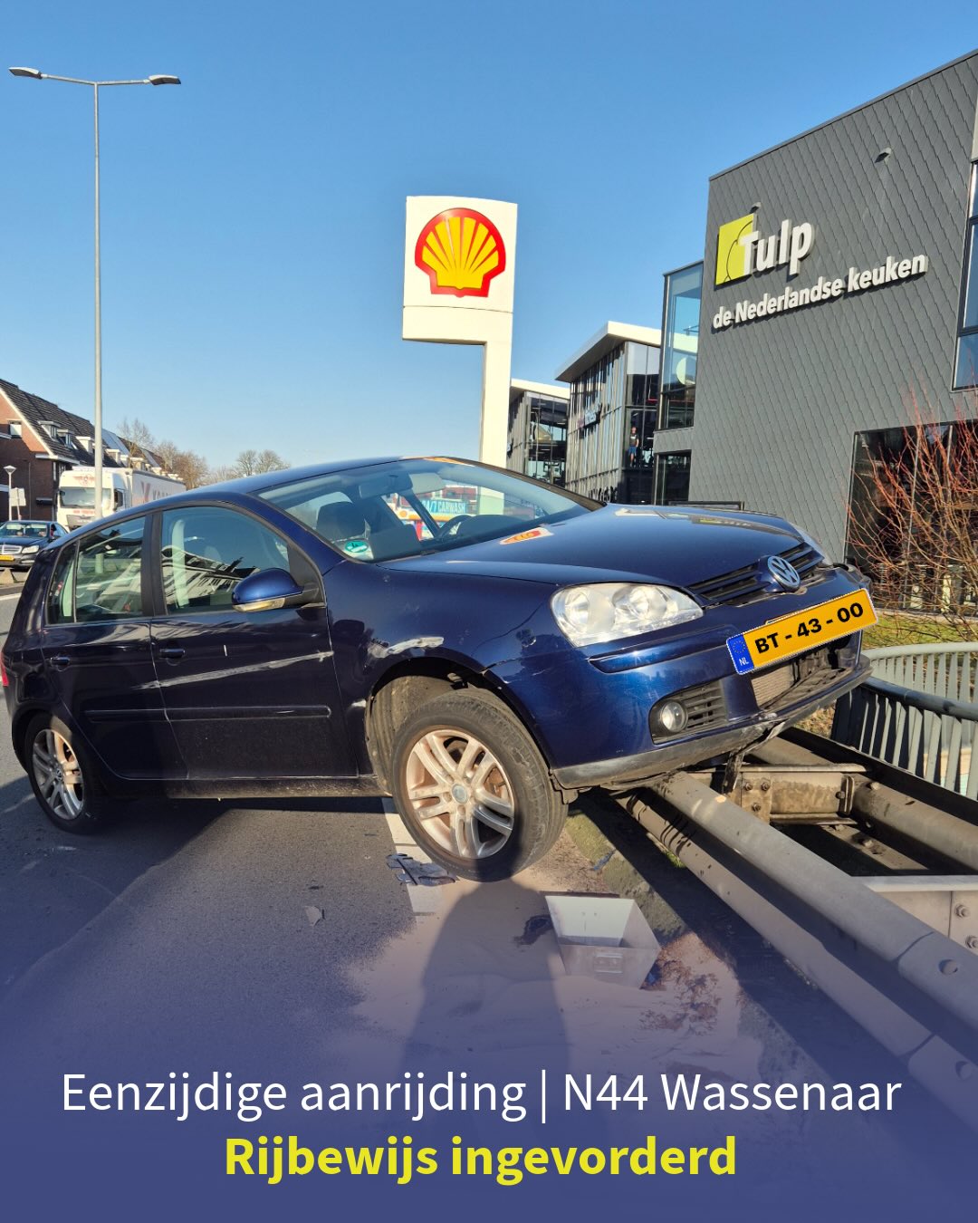 Op de N44 is donderdagmiddag een personenauto door een stuurfout door de middenberm gereden en in tegengestelde richting op de vangrail terecht gekomen. Precies boven de daar gelegen fietstunnel.