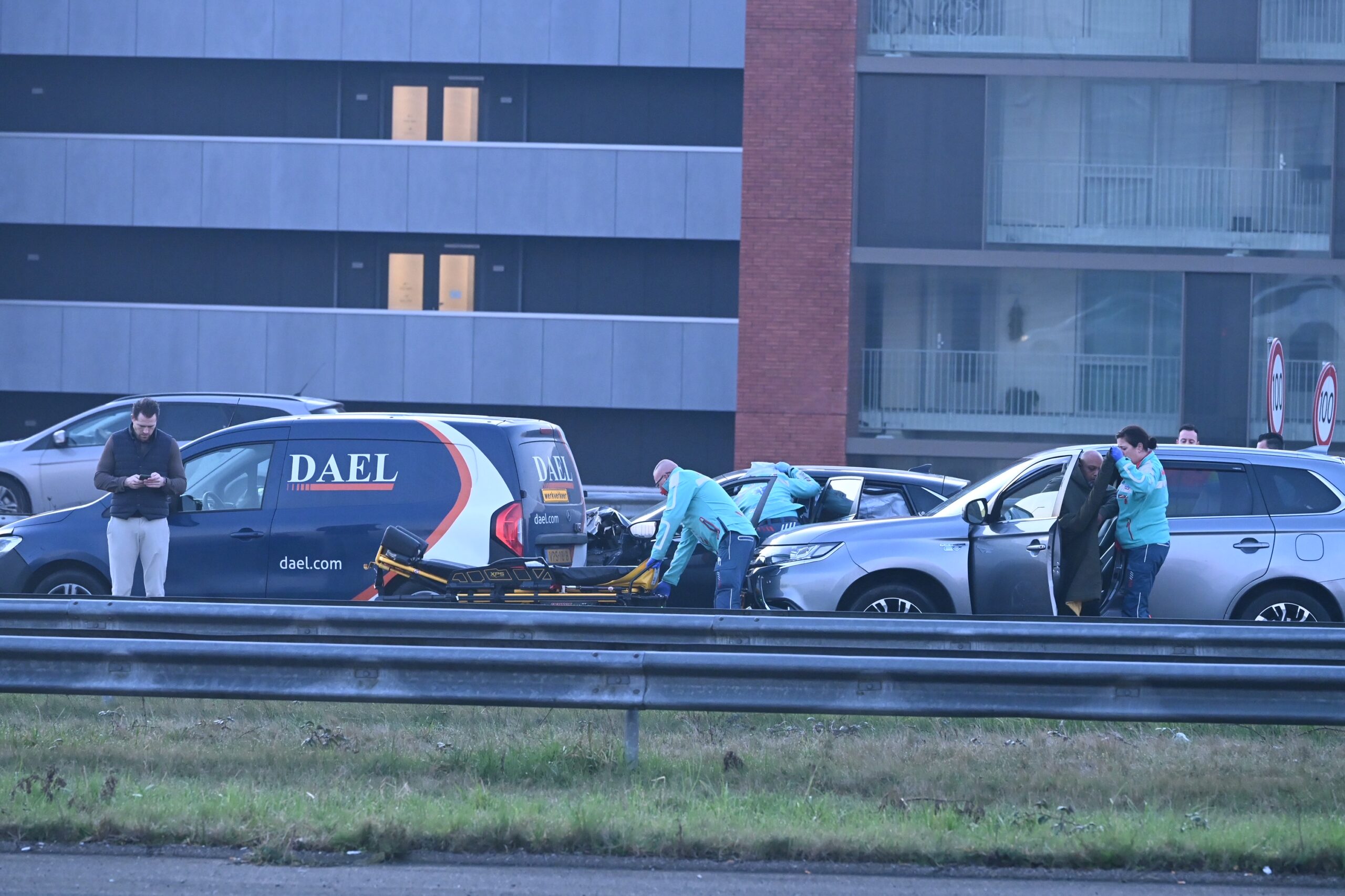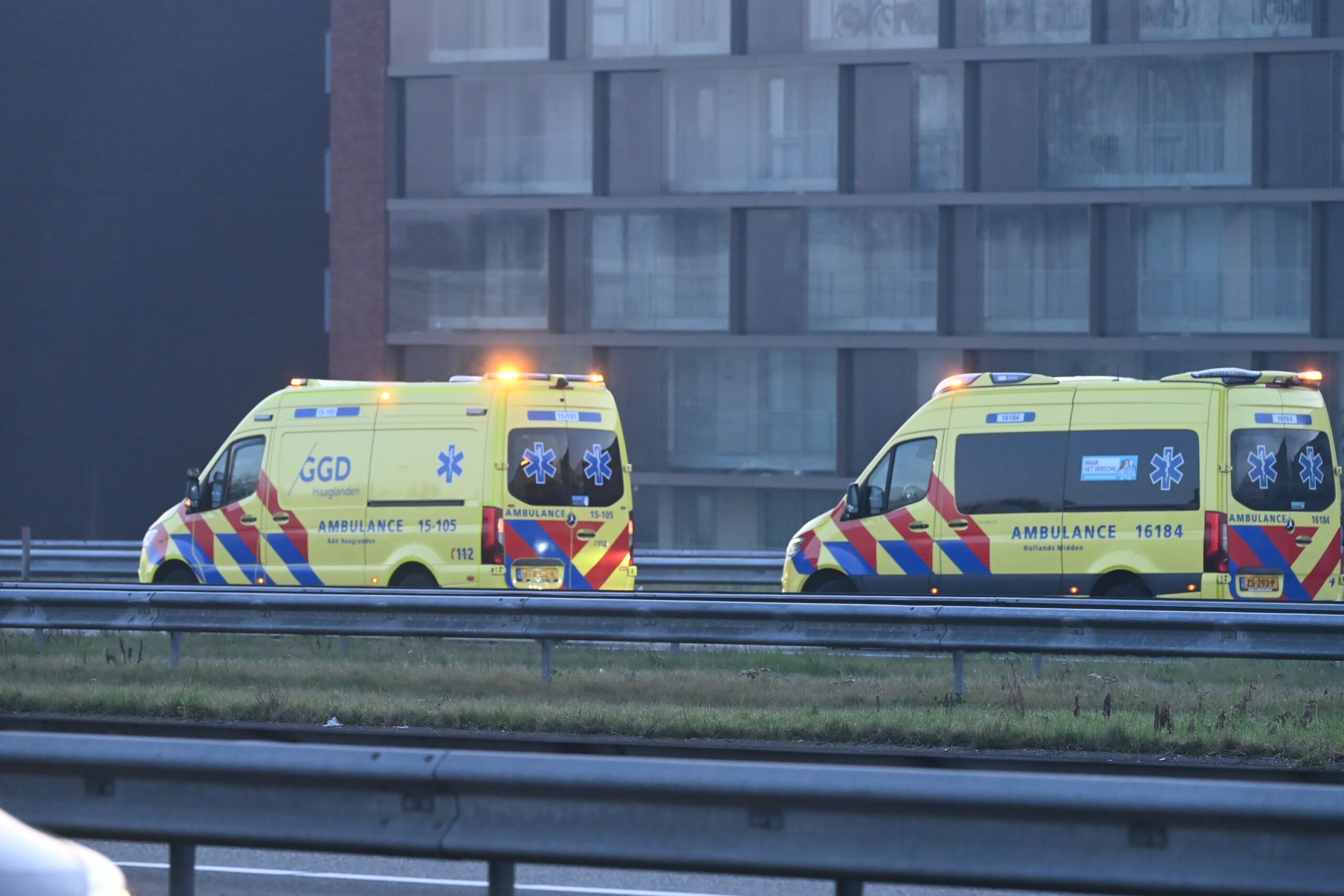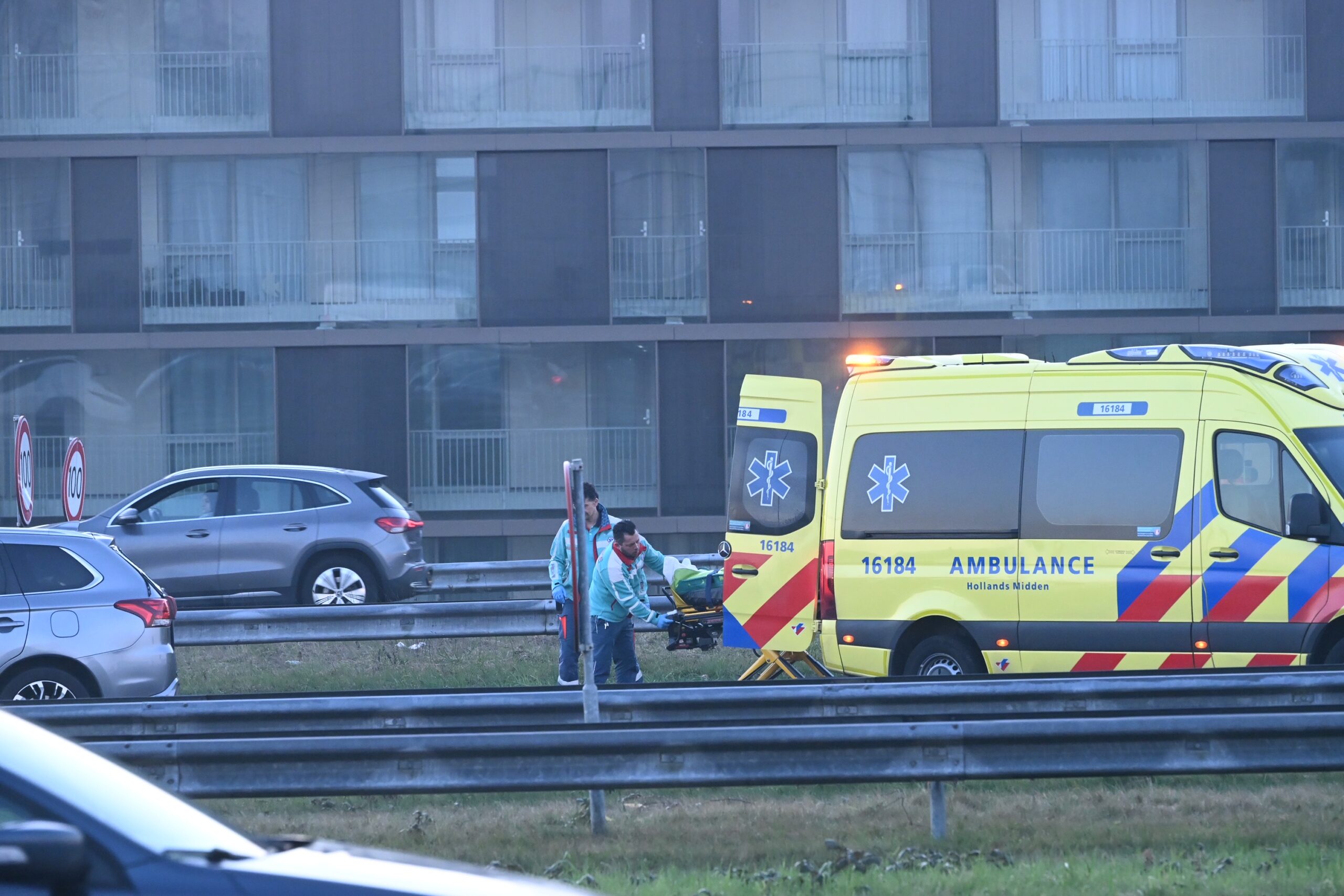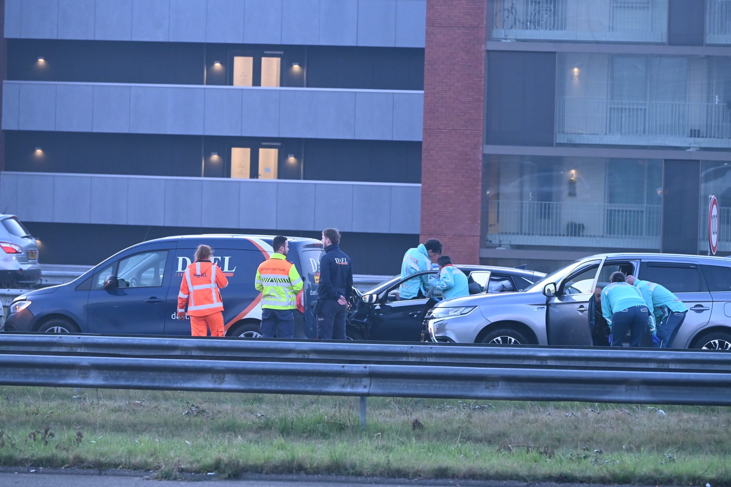 Bij een kop-staartbotsing op de A4 bij Leiden tussen vier auto’s zijn donderdagmorgen rond 7.00 uur twee personen gewond geraakt en met de ambulance naar het ziekenhuis vervoerd. Doordat de hoofdrijbaan werd afgesloten, ontstond er een lange file.