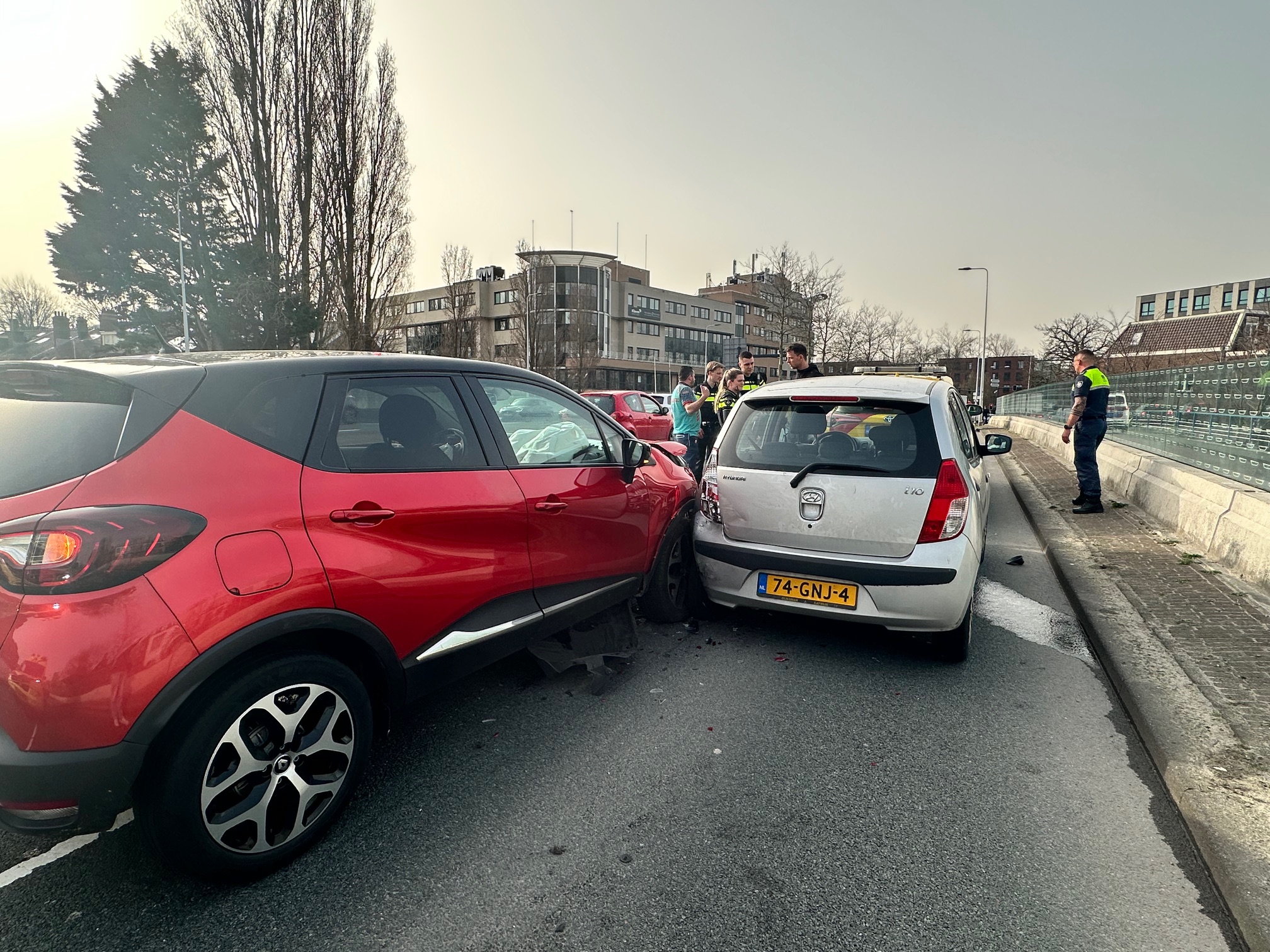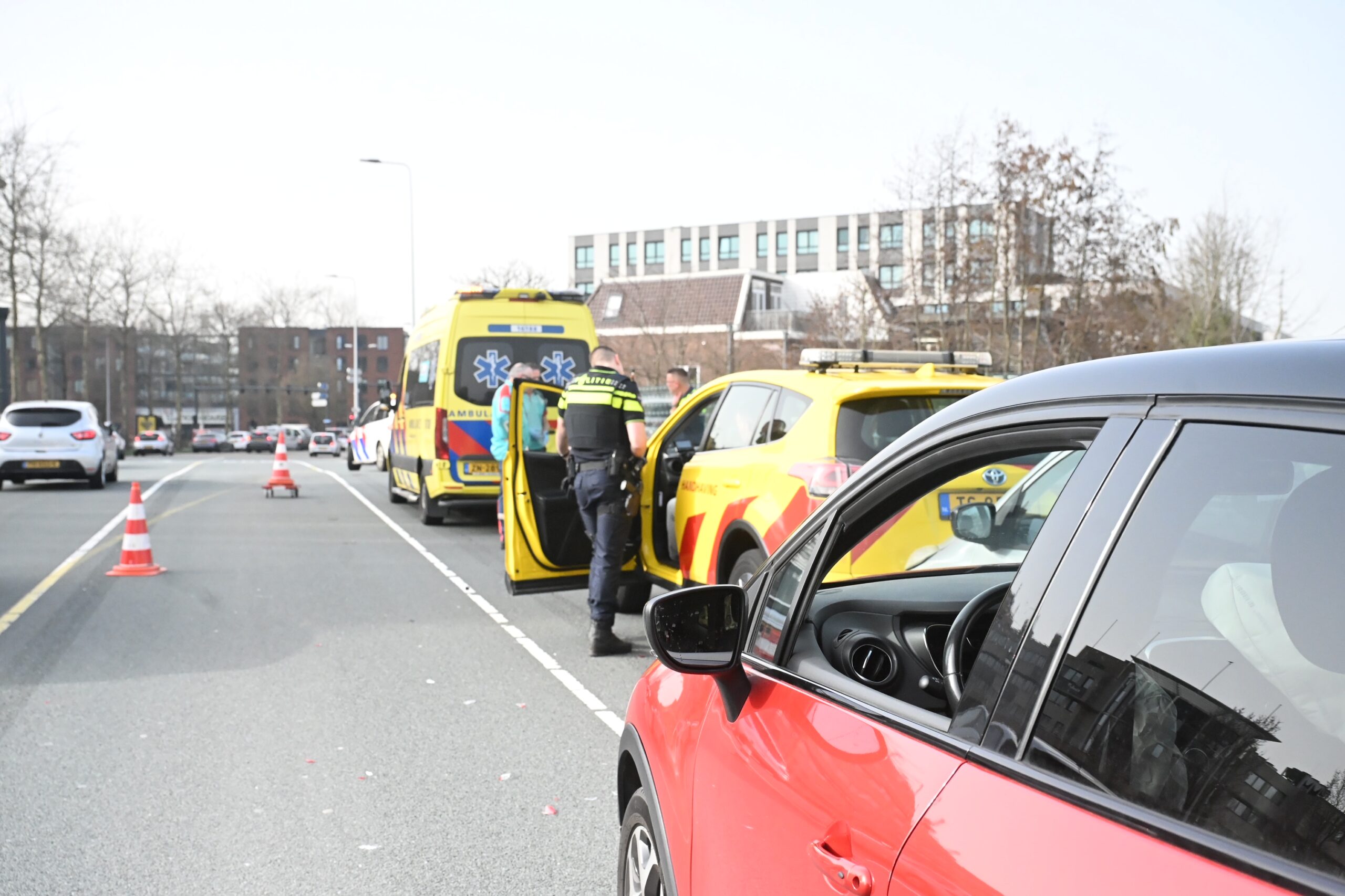 Op de Willem de Zwijgerlaan zijn vrijdagmiddag drie auto betrokken geraakt bij een kop-staartbotsing. Een persoon is door ambulancepersoneel nakeken en uiteindelijk naar het ziekenhuis vervoerd.