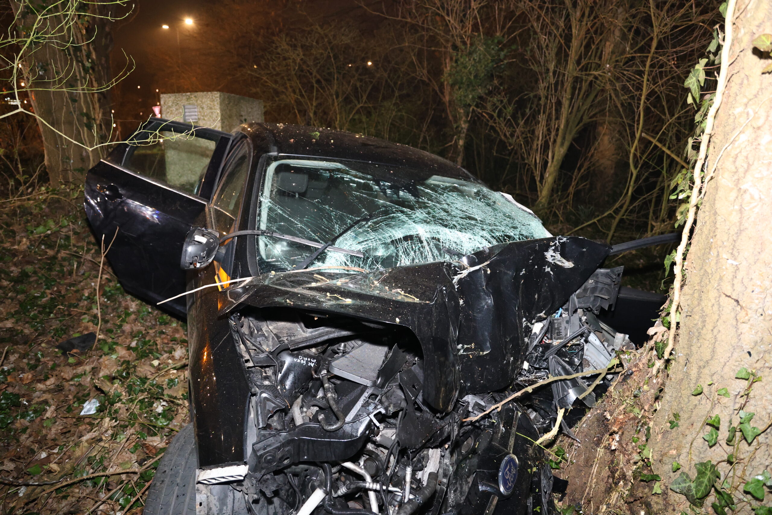 Rond 3.00 uur reed de auto aan het einde van de IJsselmeerlaan rechtdoor over de rotonde en kwam in de struiken langs de flat aan het Stadzicht tegen een boom tot stilstand.
