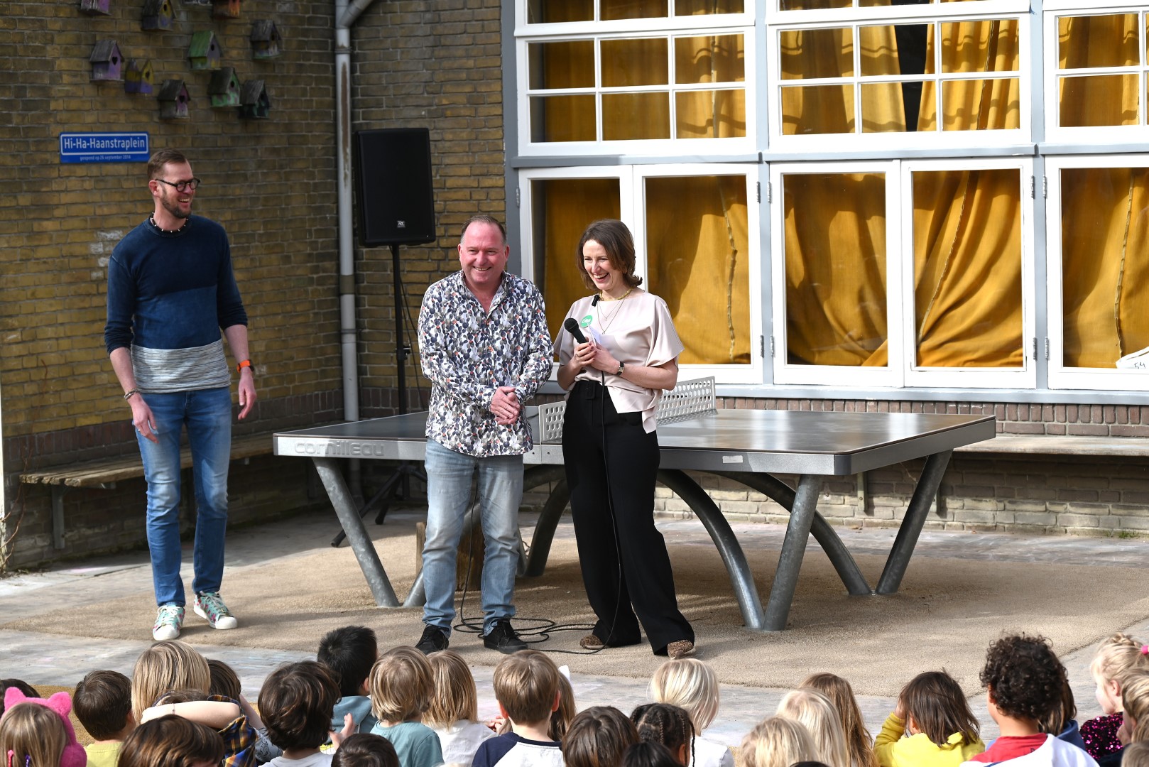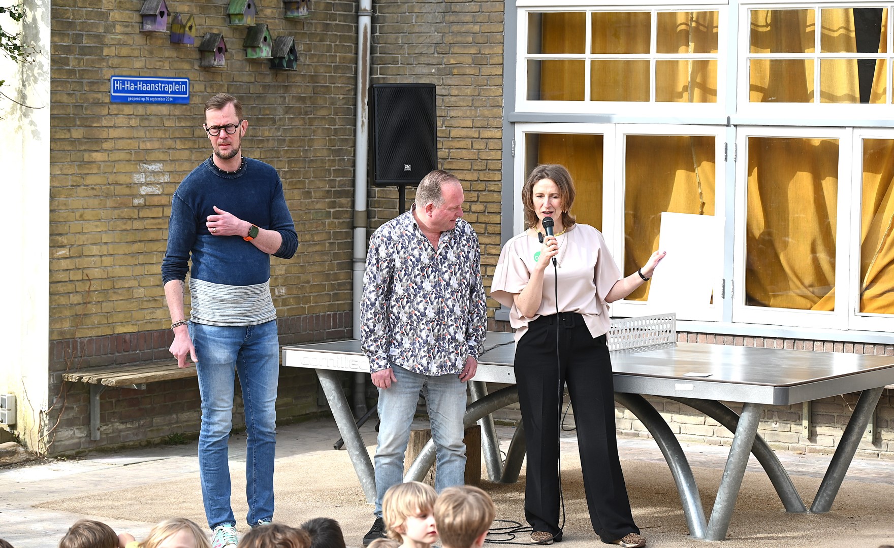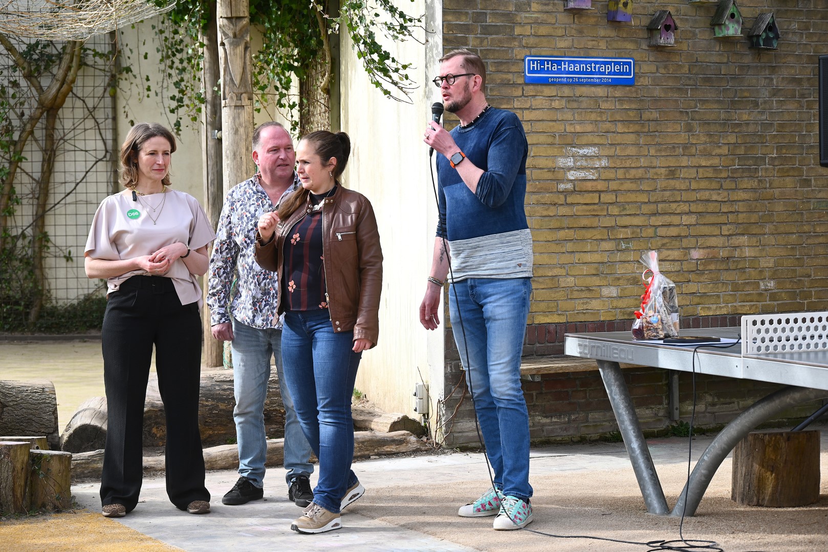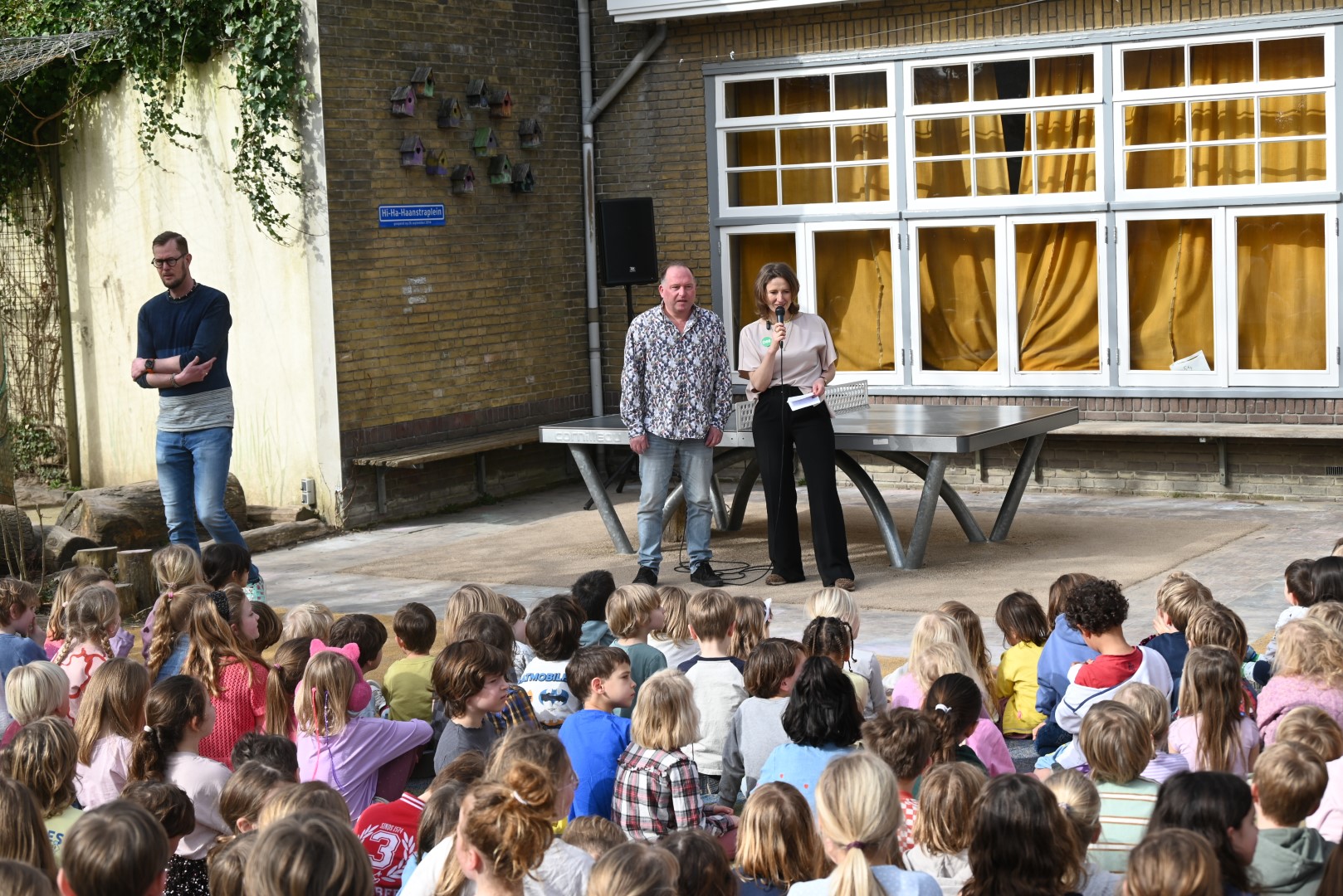 Dat er iets stond te gebeuren wist Moerkens ook wel. Maar hem was verteld dat de school een prijs kreeg voor het groenste schoolplein. Maar niets bleek minder waar, toen hij naar voren geroepen werd om een microfoon te repareren. Met die microfoon bleek niets mis, toen D66-lijsttrekker Wietske Veltman zich tot Moerkens richtte.